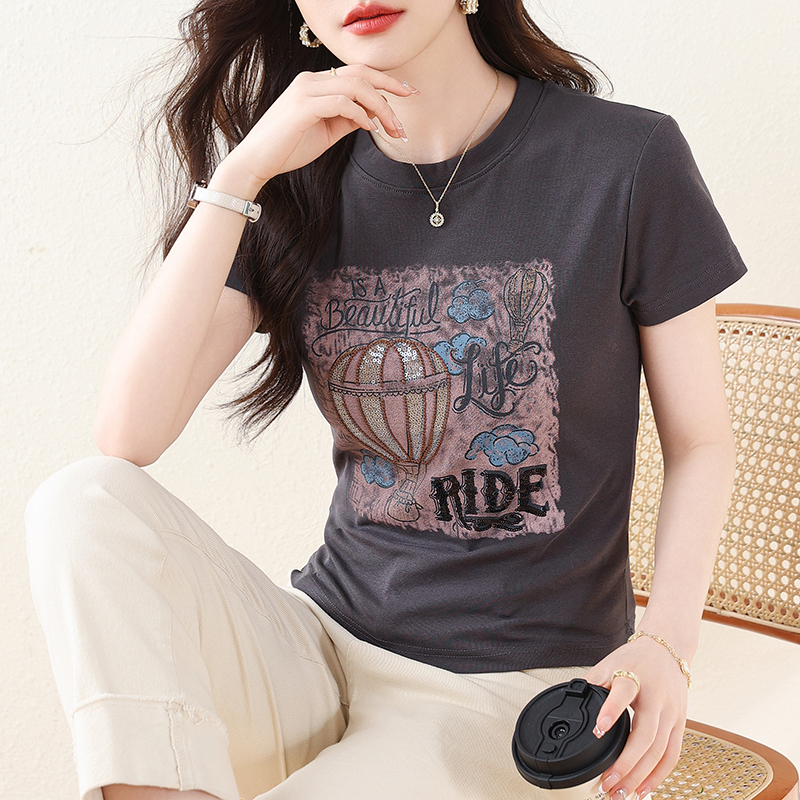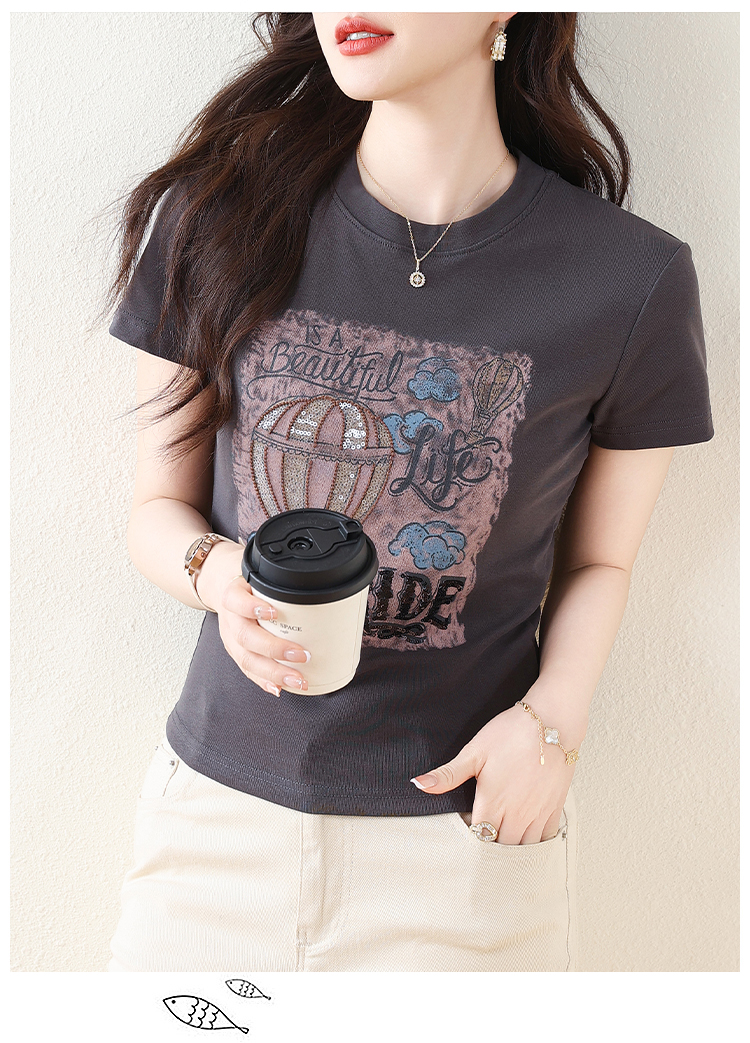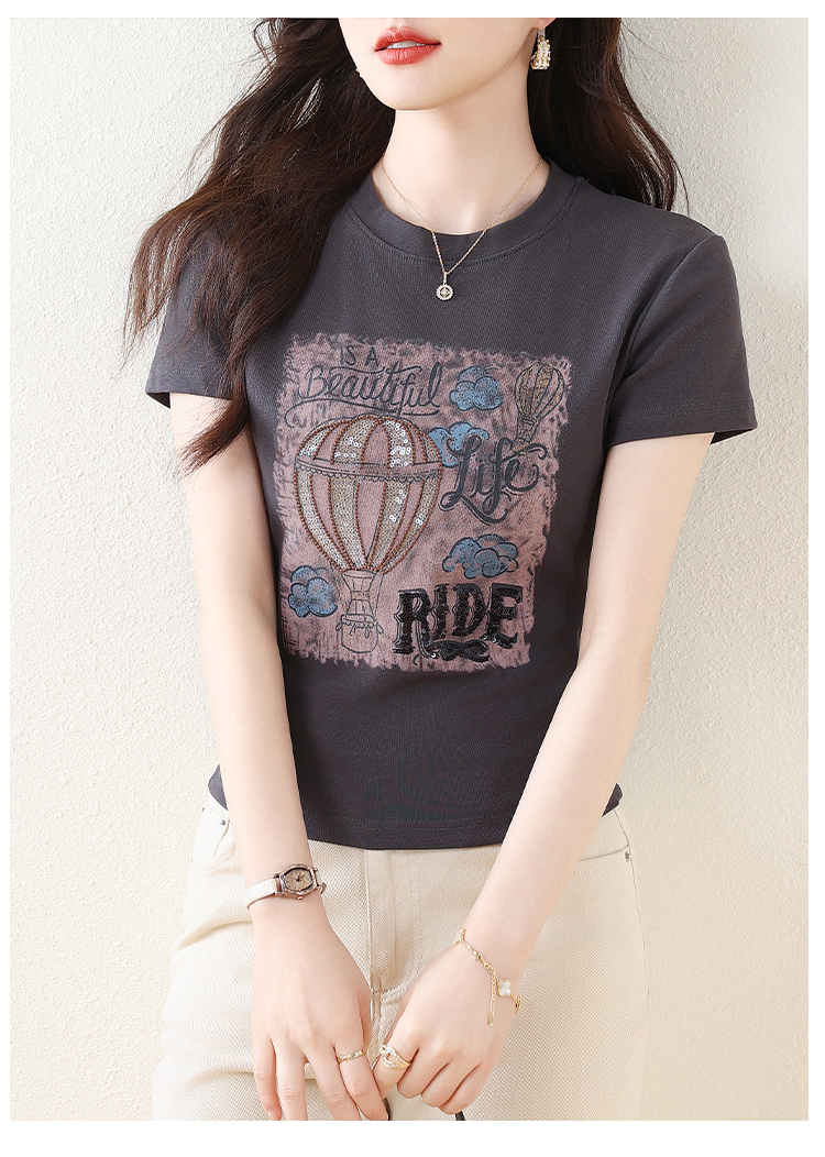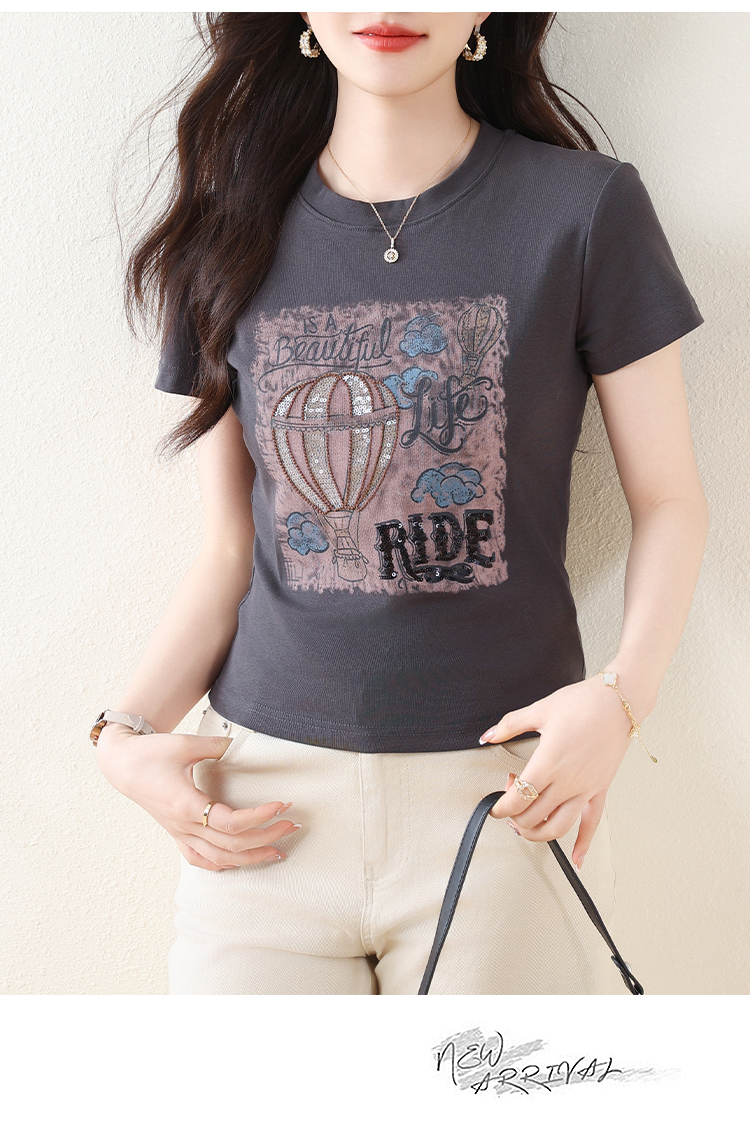 PF3192#欧洲站重工字母印花短款百搭休闲设计感小众