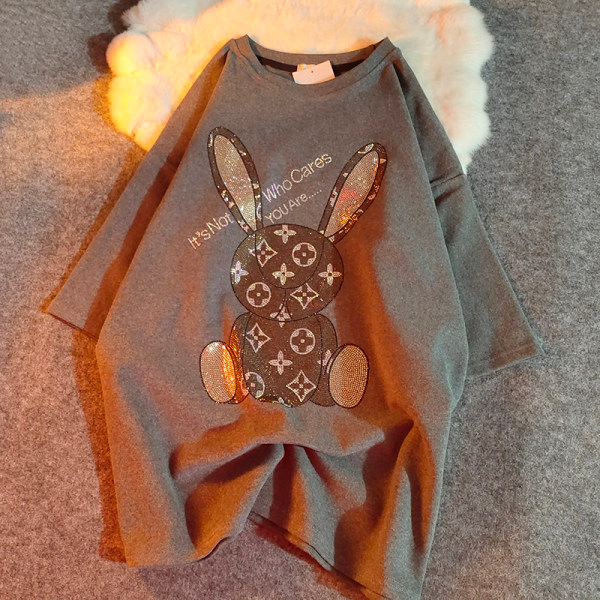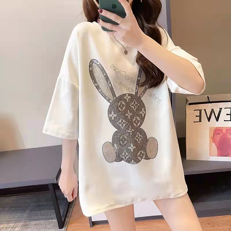 PF3308#烫钻短袖纯棉 简约休闲宽松型T恤夏季