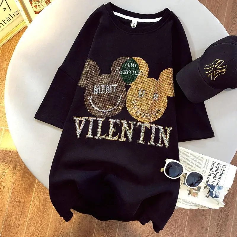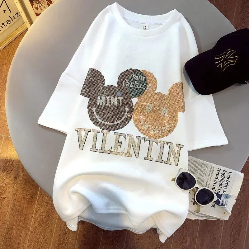 PF3309#烫钻短袖牛奶丝 百搭简约休闲夏季