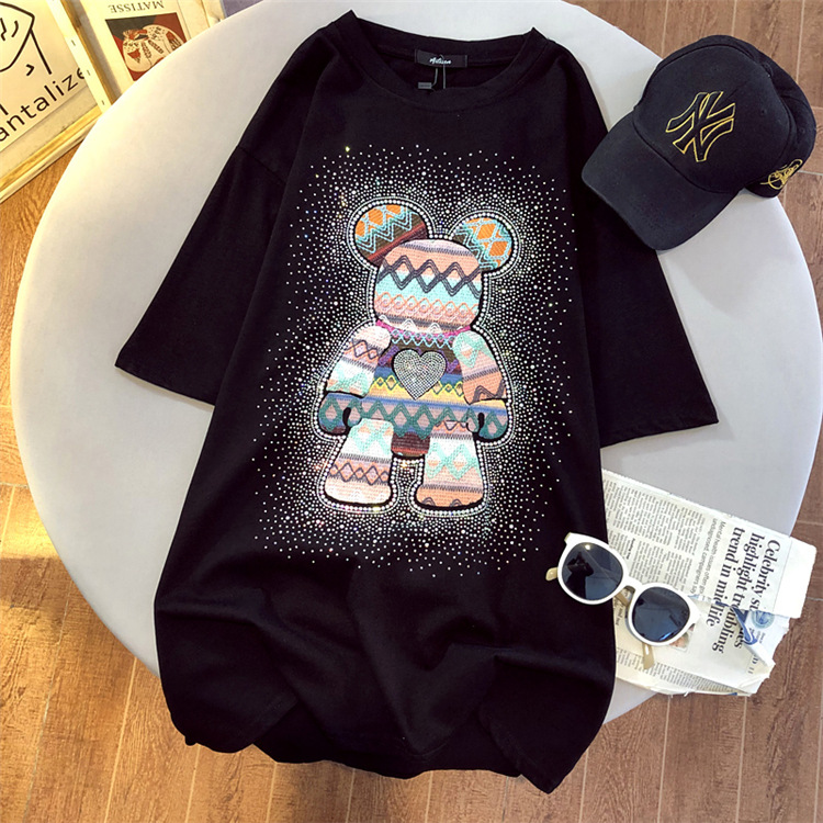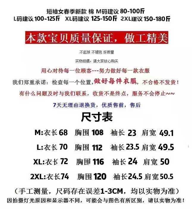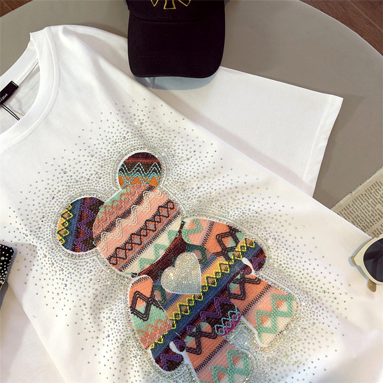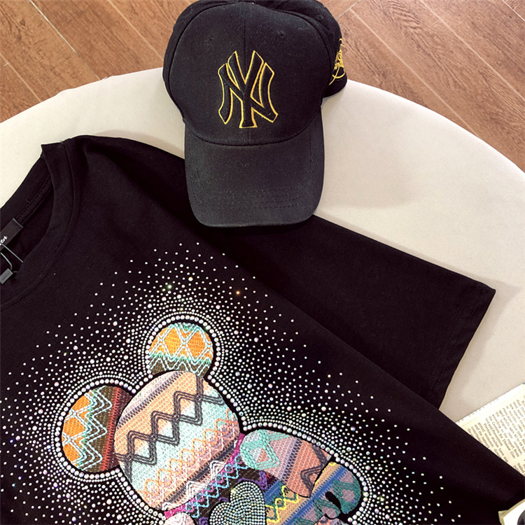 PF3311#烫钻短袖牛奶丝 纯纯棉宽松型