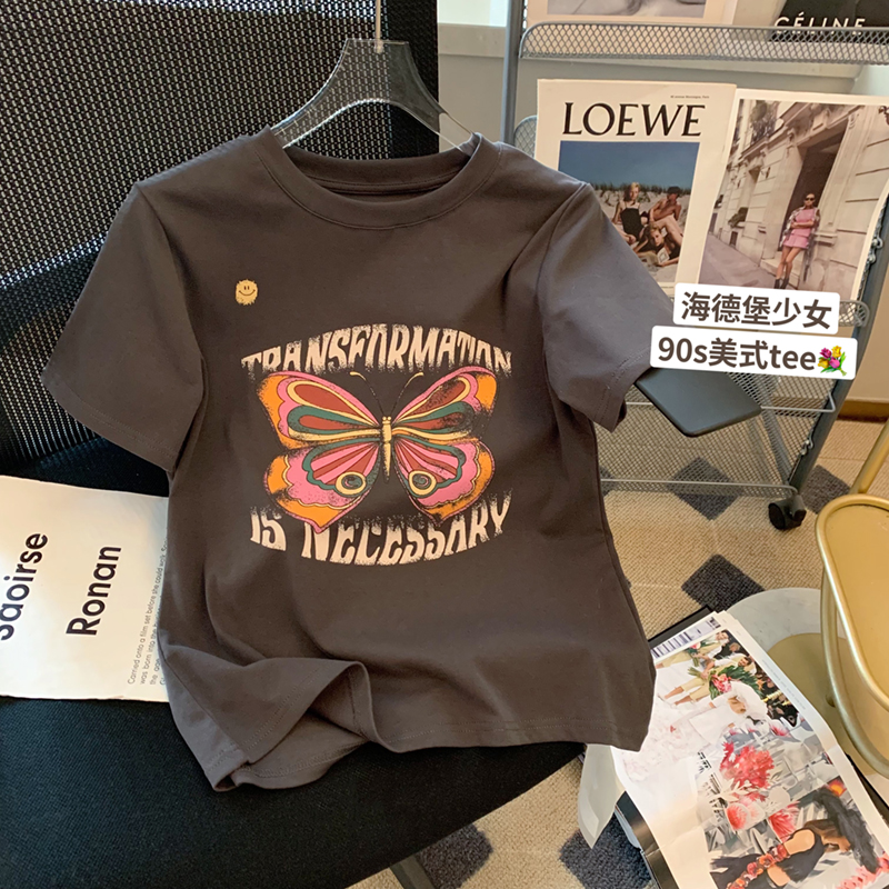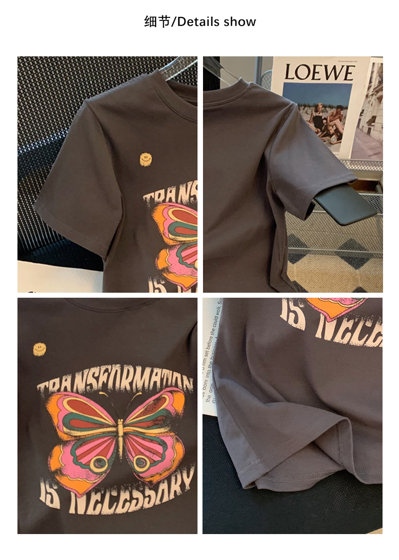 PF3318#精梳紧密100%棉直播同品前印花宽松短袖t恤女