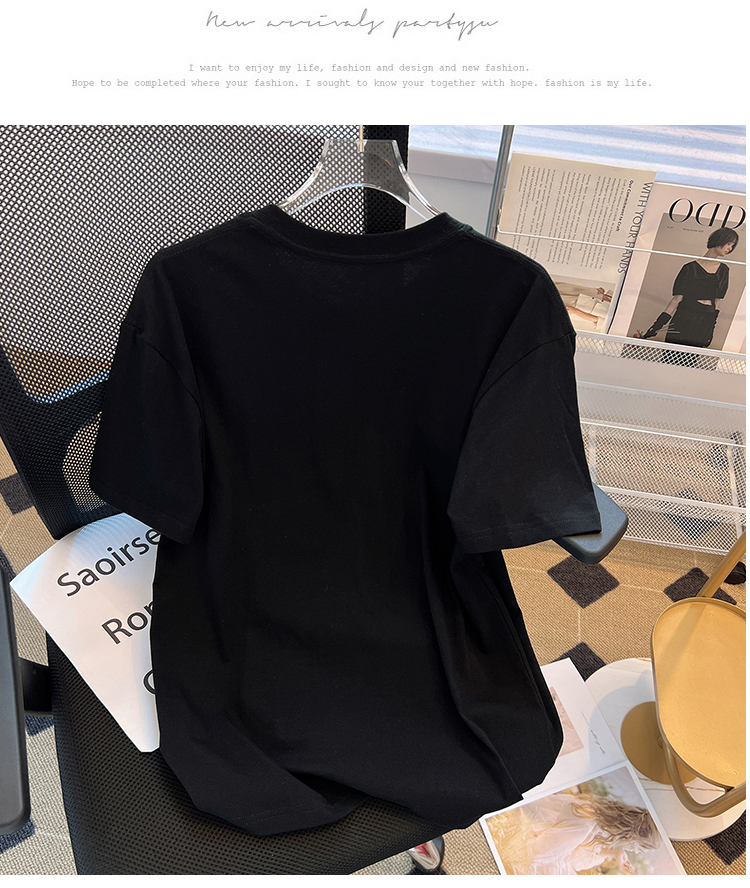 PF3320#精梳紧密100%棉直播同品前印花宽松短袖t恤女