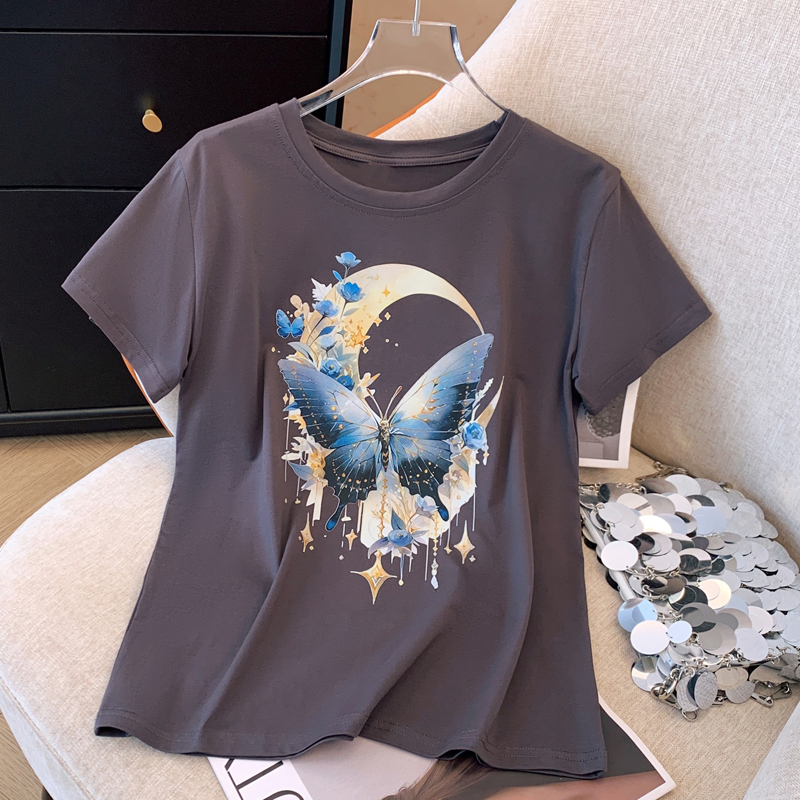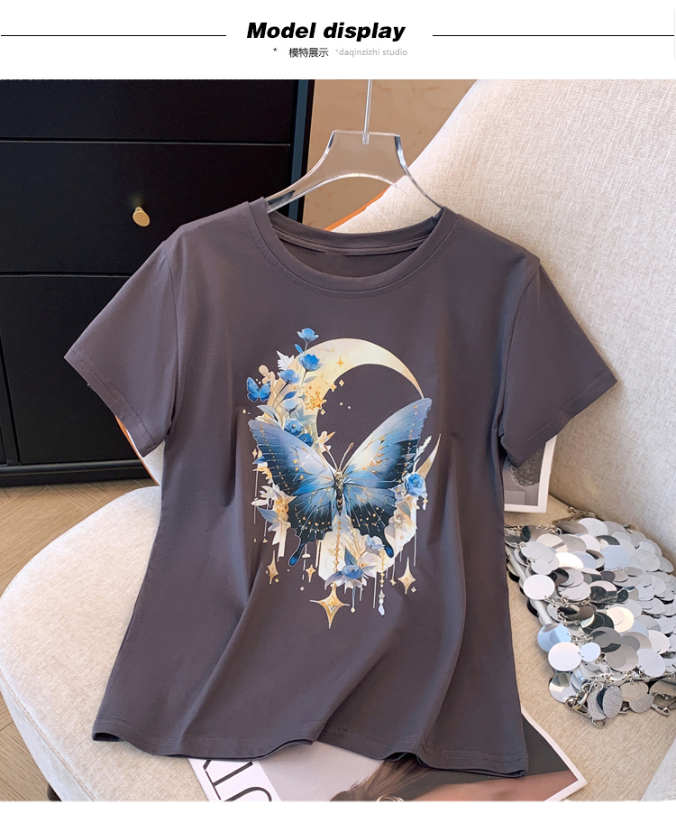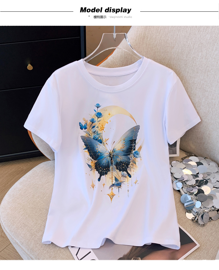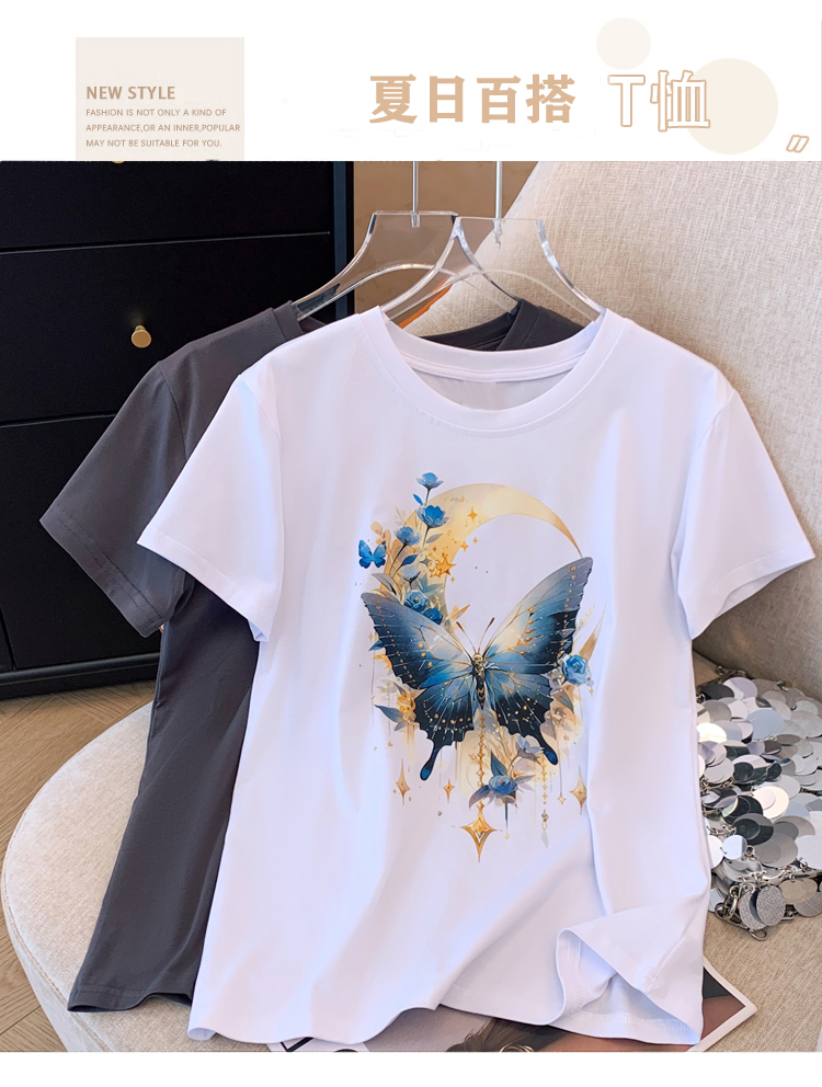 PF3346#夏季新款纯棉上衣白色短袖T恤女装圆领休闲半袖内搭宽松韩版体恤