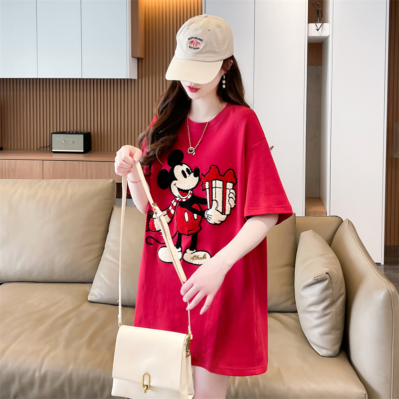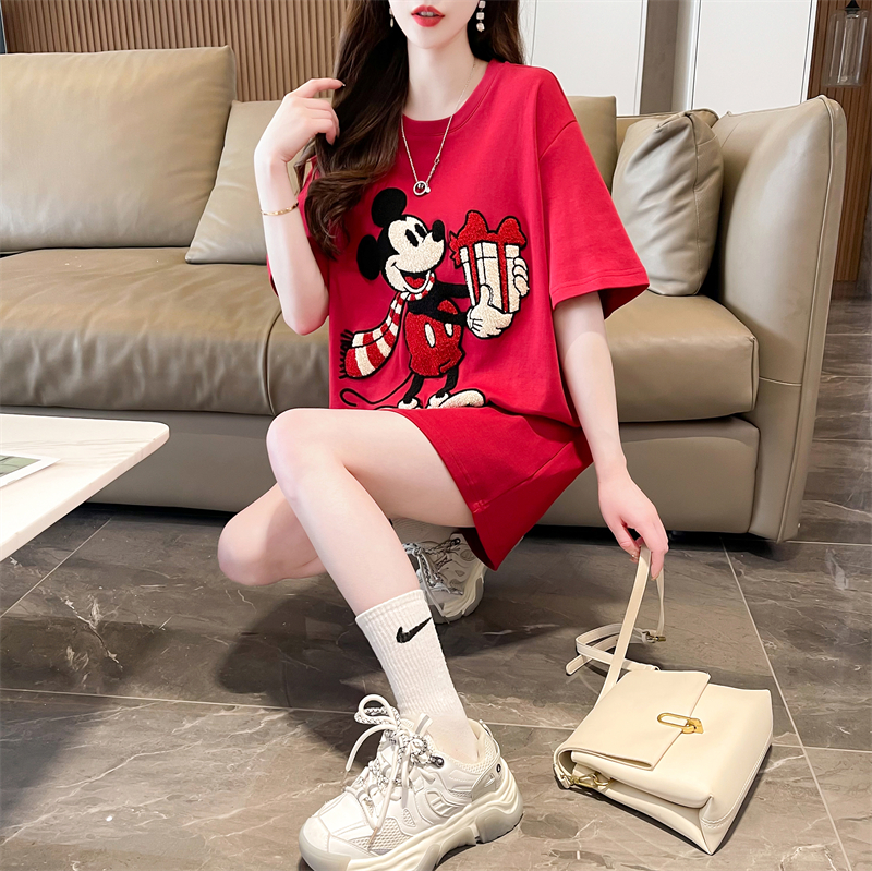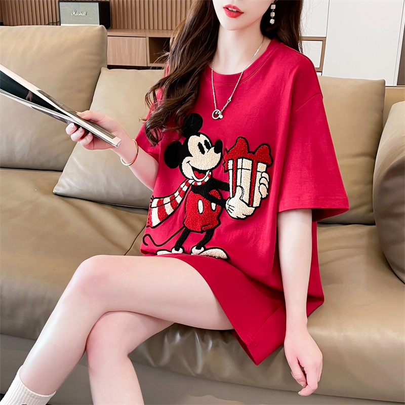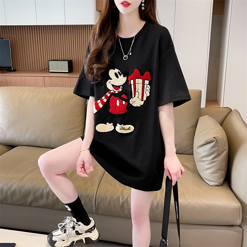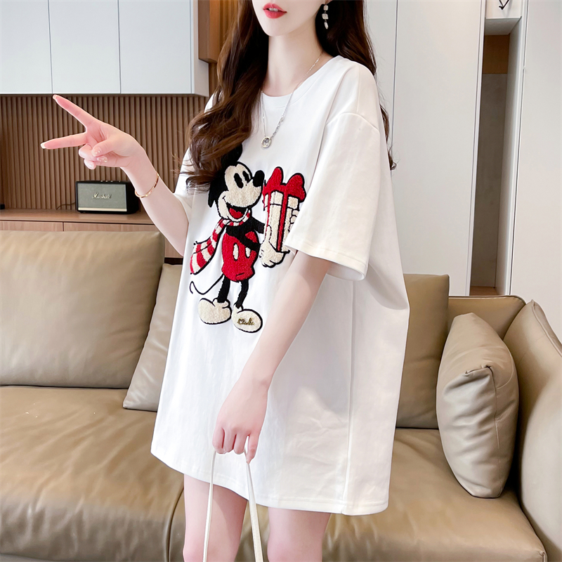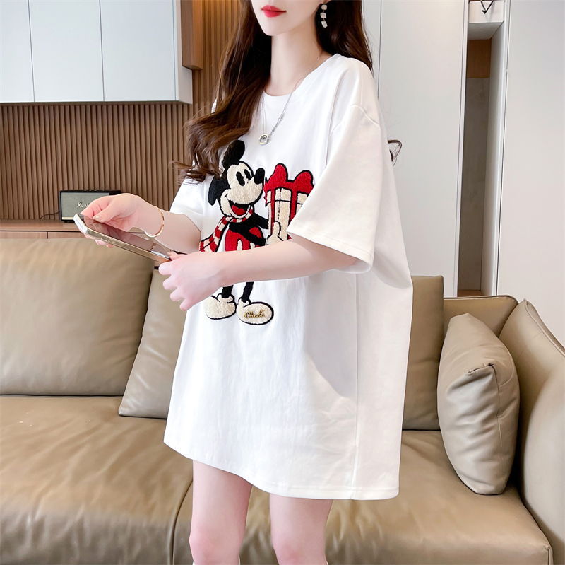 PF3405#新款韩版宽松圆领米奇毛巾绣大码短袖T恤女