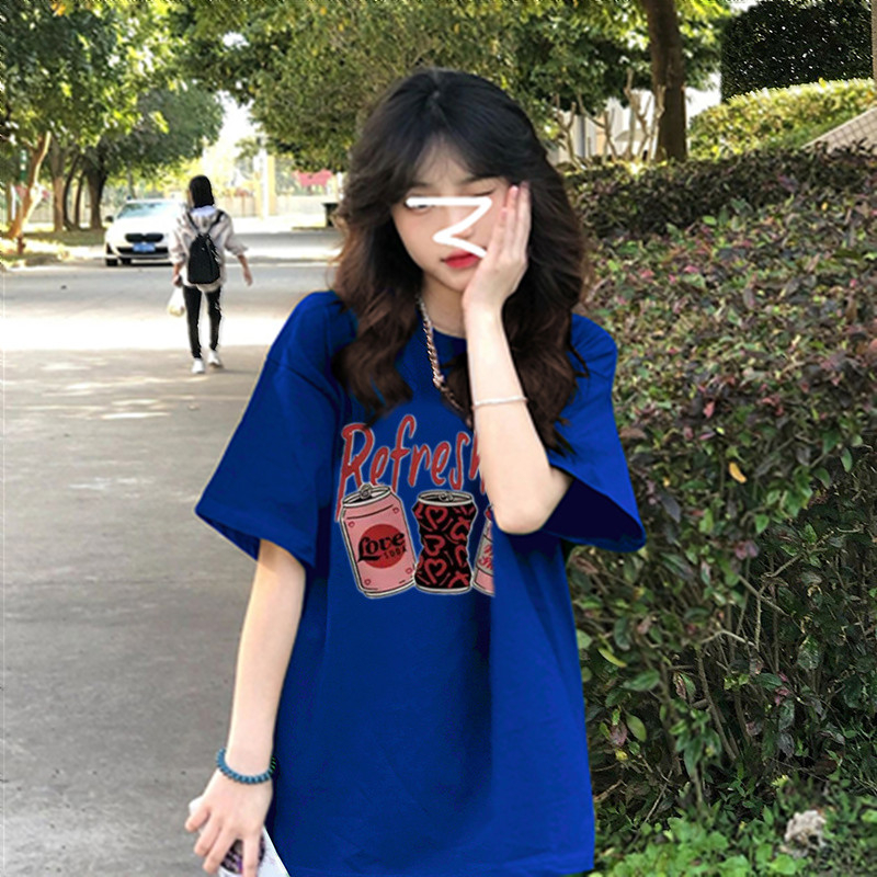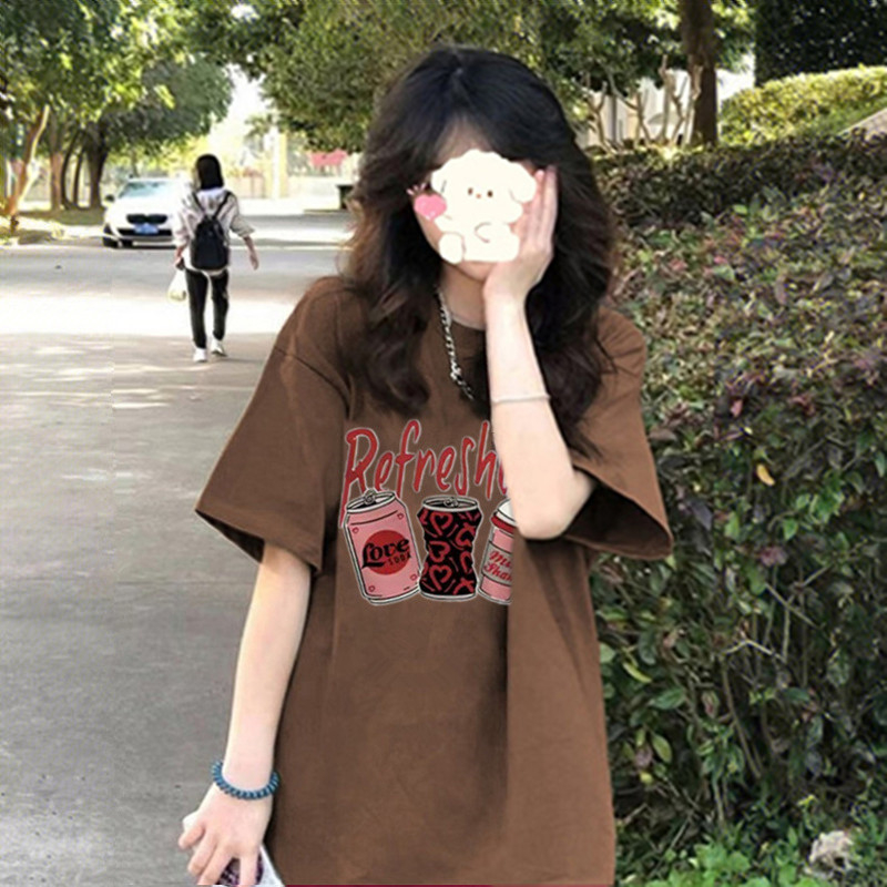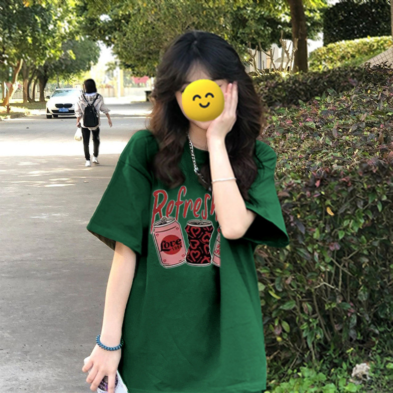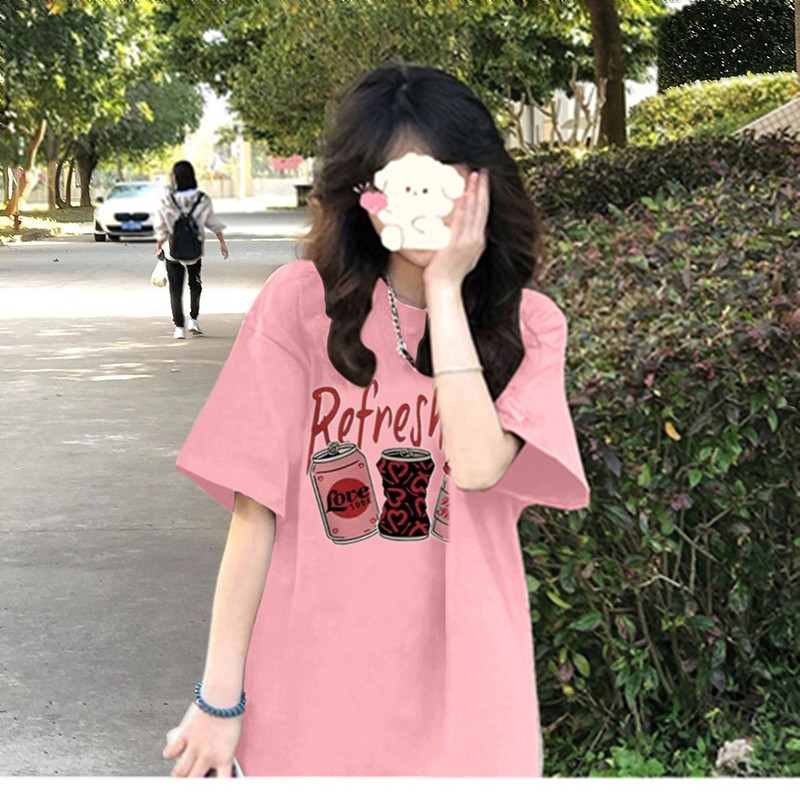 PF3430#落肩宽松版型200克精梳纯棉后包边短袖T恤女夏季印花款
