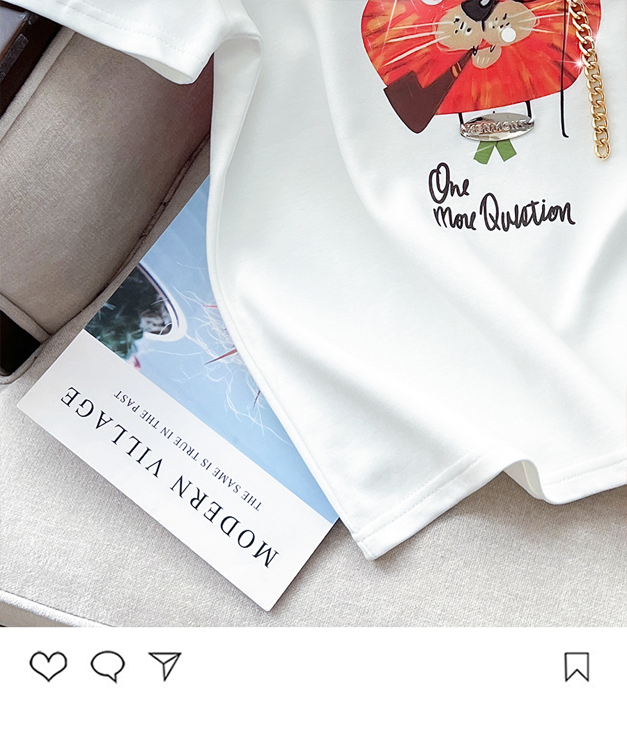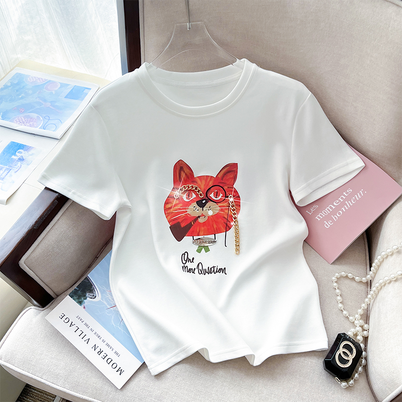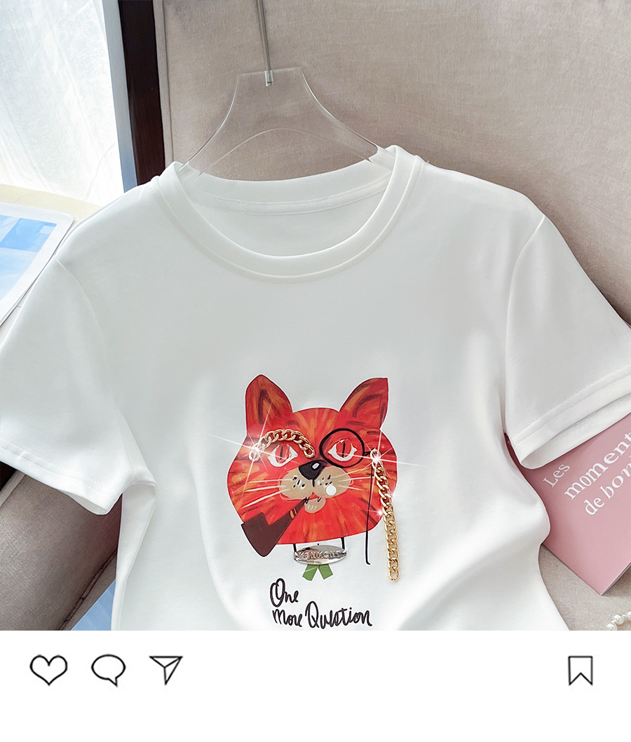 PF3521#质量超好新款重工钉珠链条纯棉短袖T恤休闲百搭