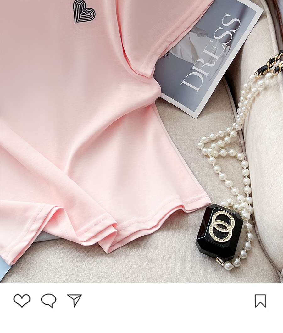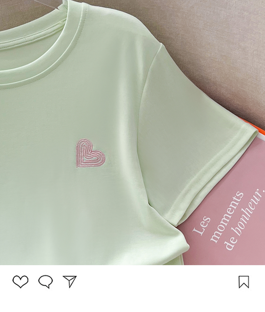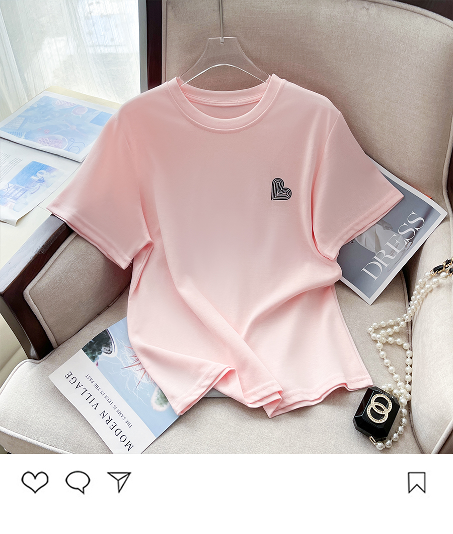 PF3524#夏新款超好看冰淇淋色刺绣爱心短袖T恤简约百搭
