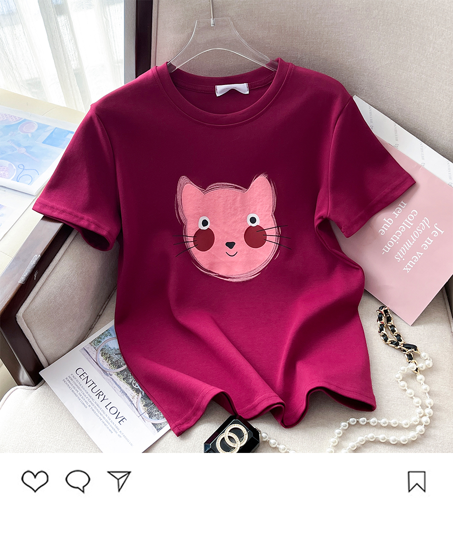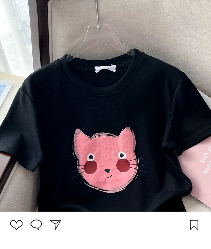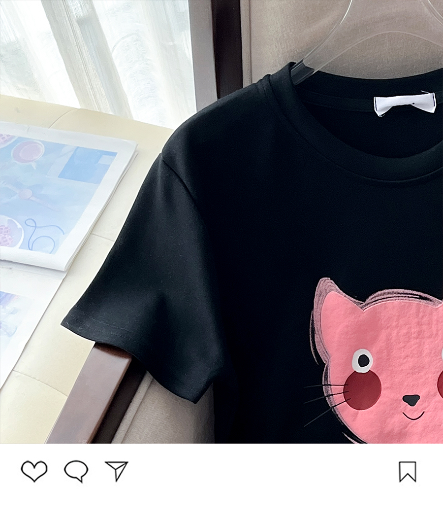 PF3525#新款设计感植绒印花纯棉短袖T恤女休闲