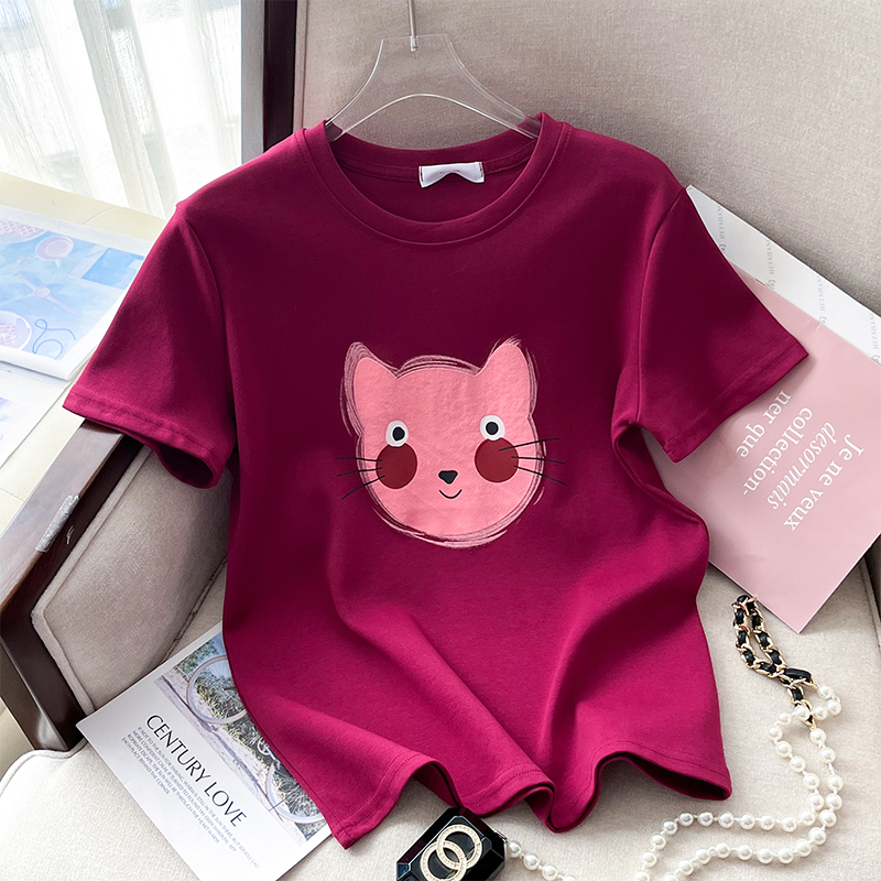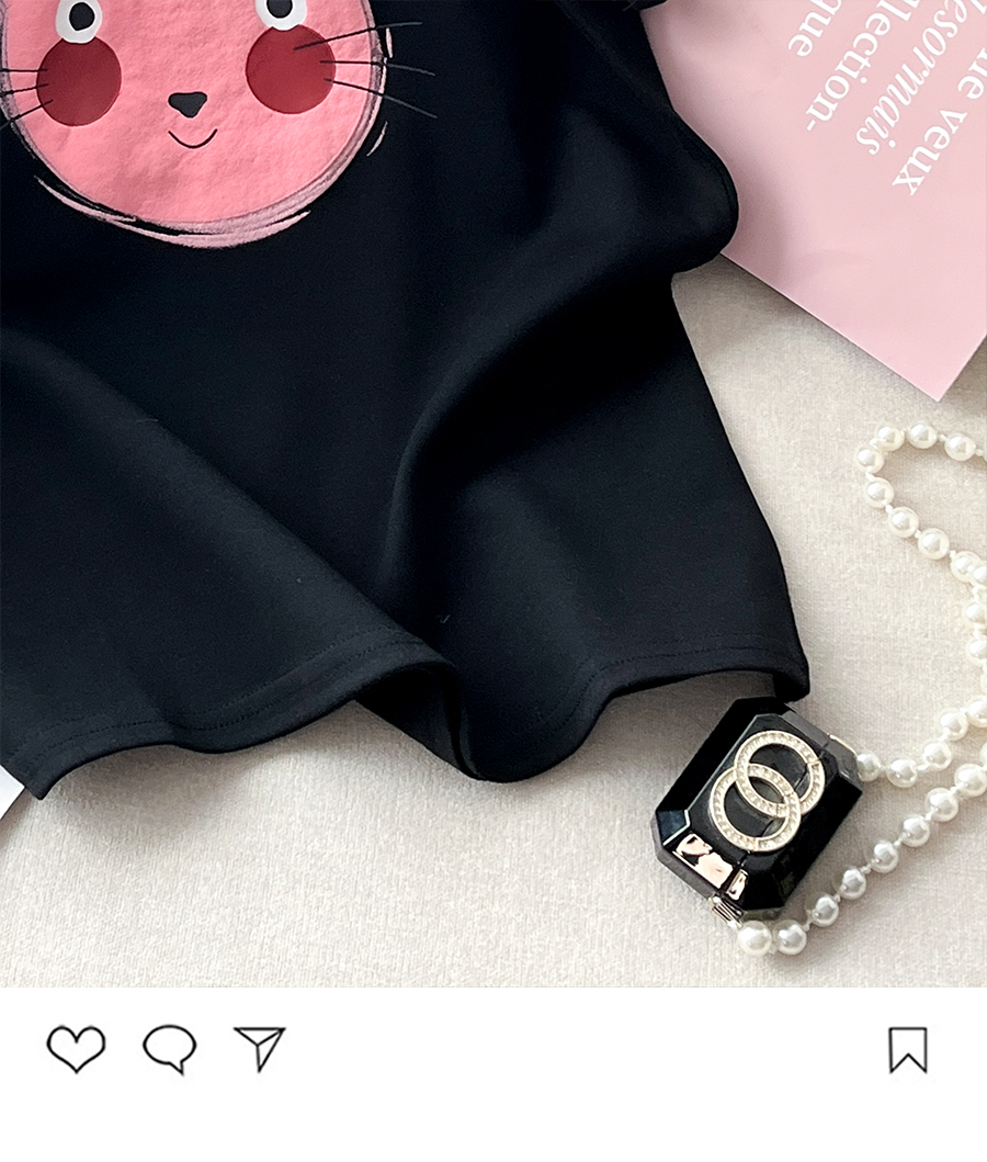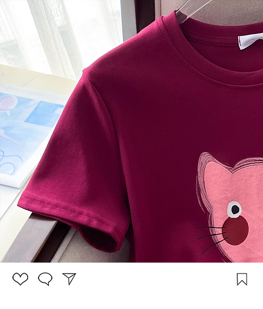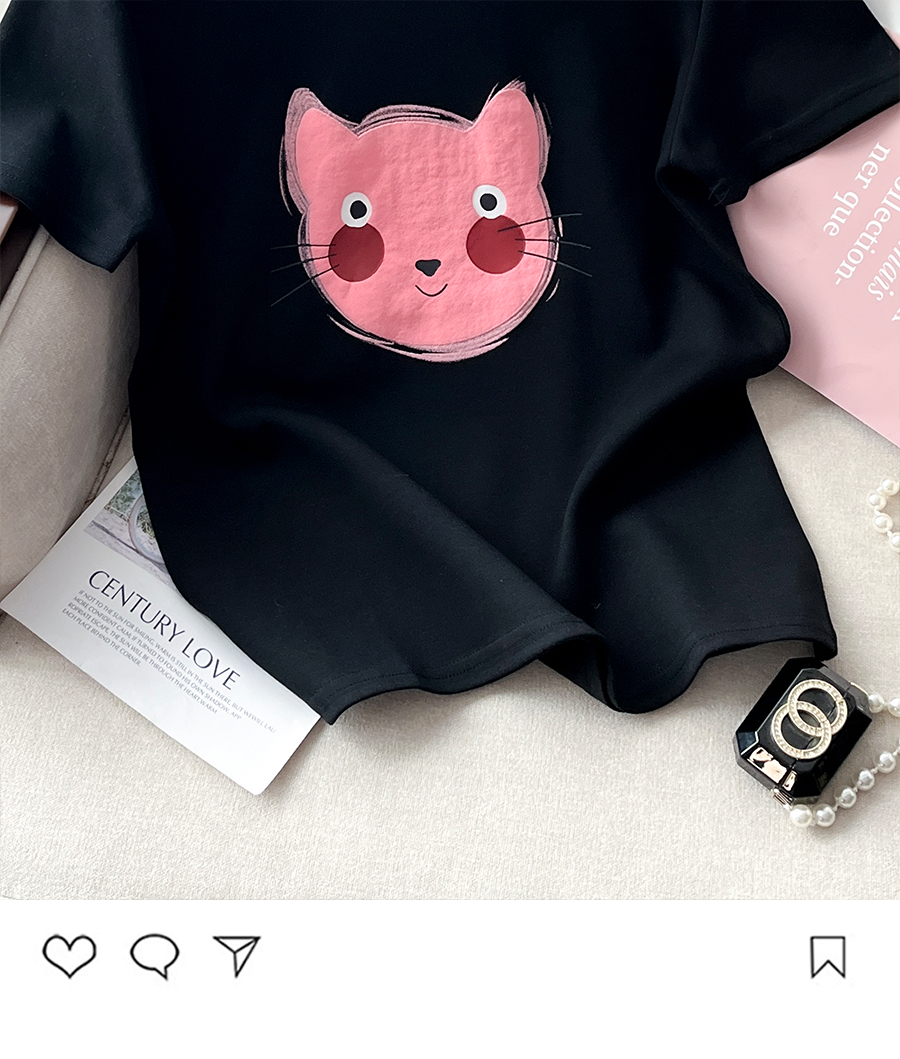 PF3525#新款设计感植绒印花纯棉短袖T恤女休闲