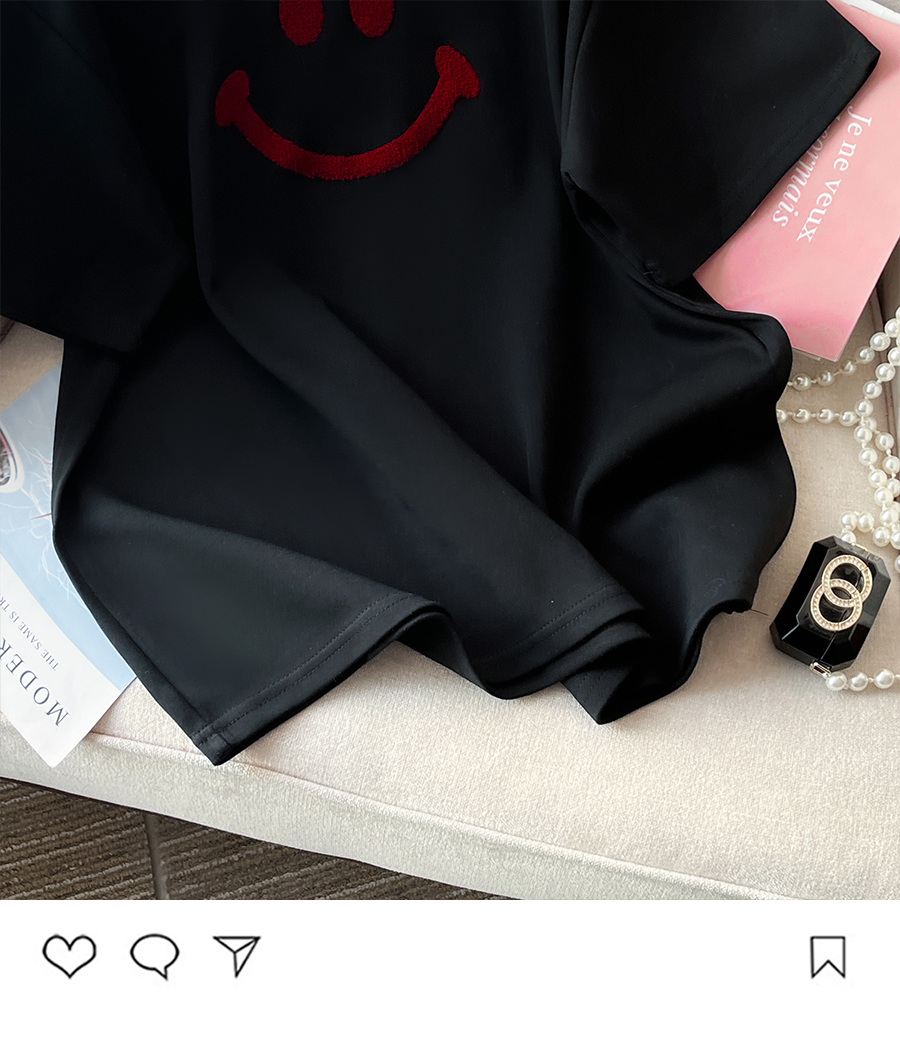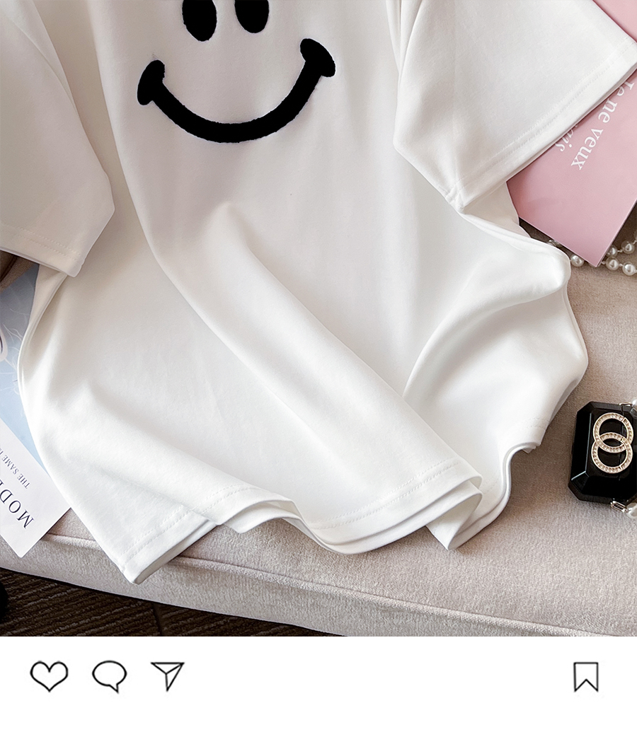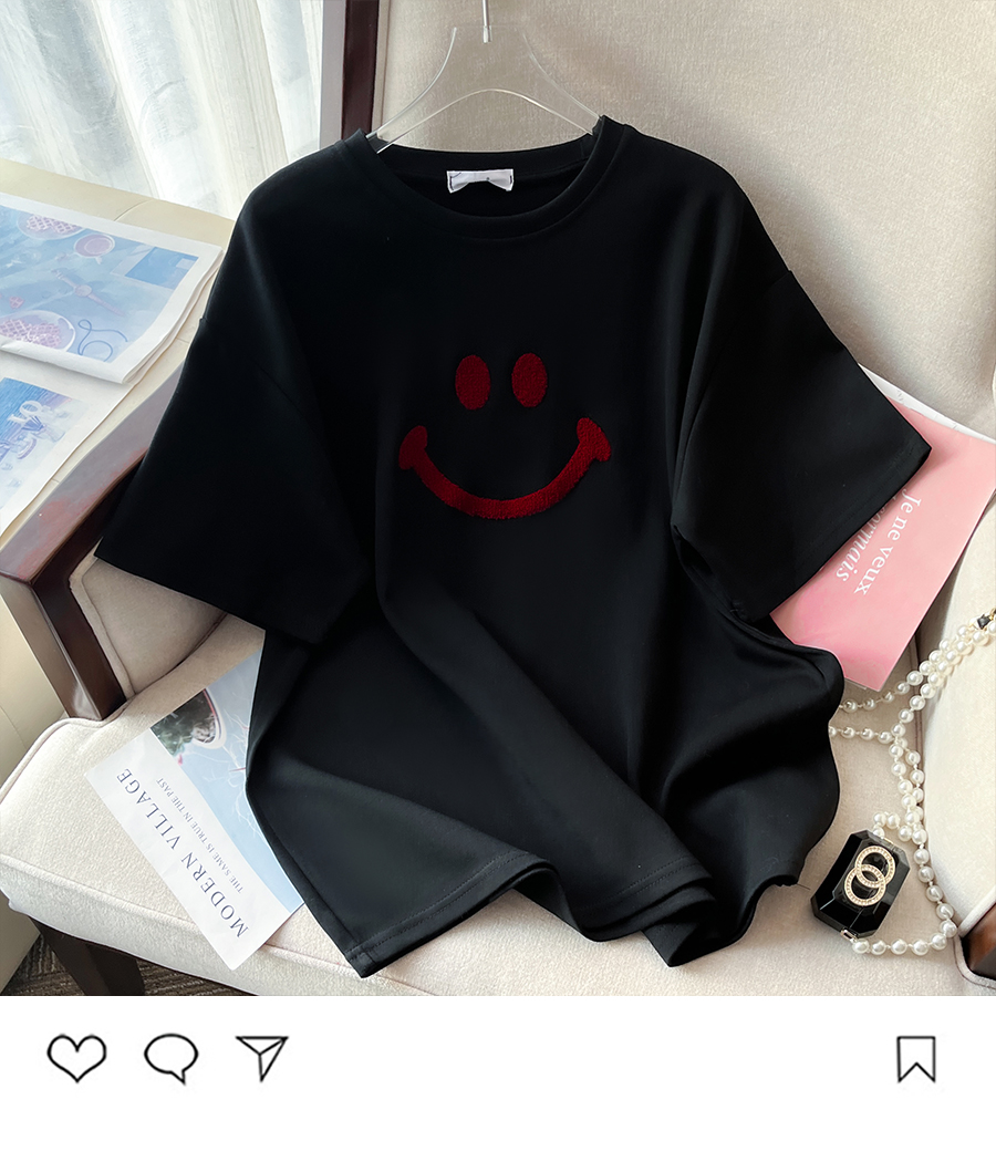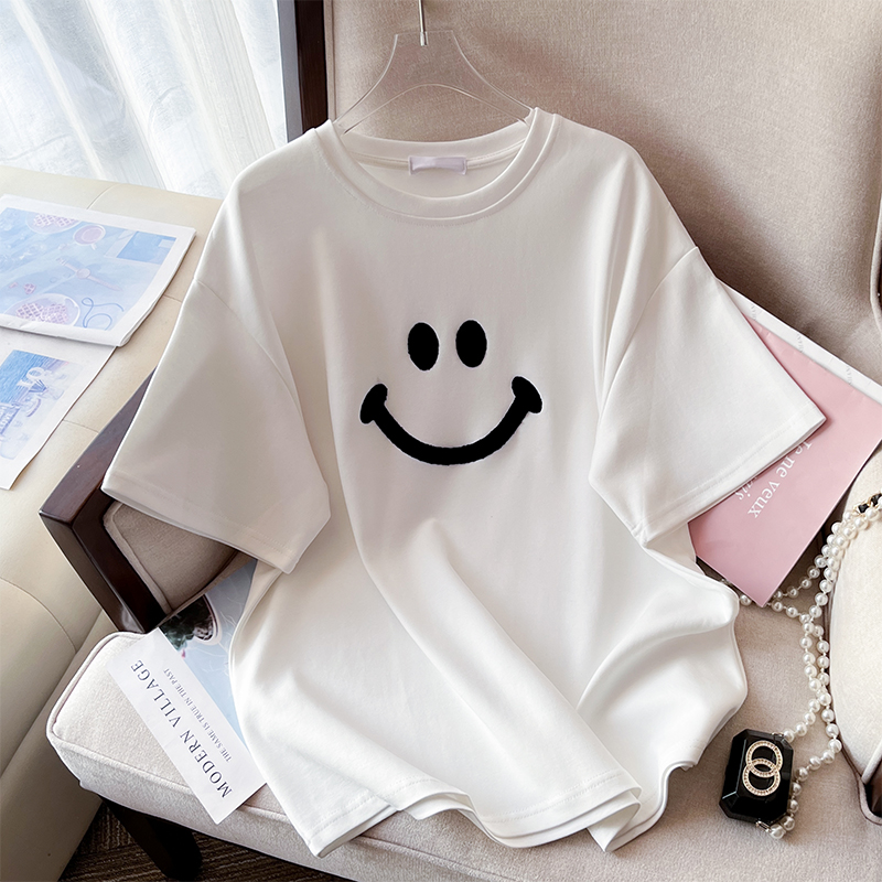 PF3527#新款可爱笑脸毛巾绣纯棉短袖T恤女宽松