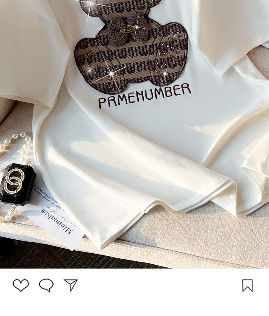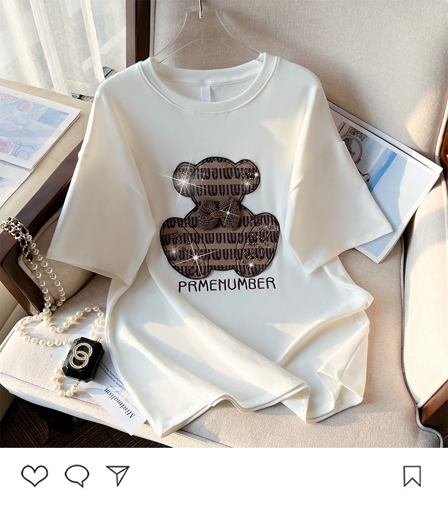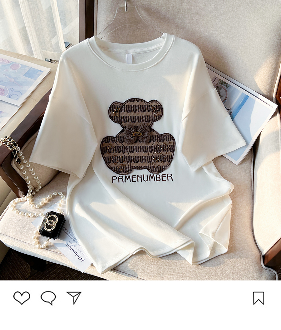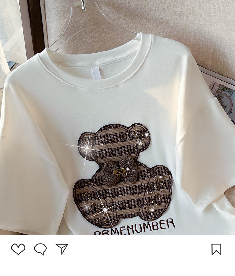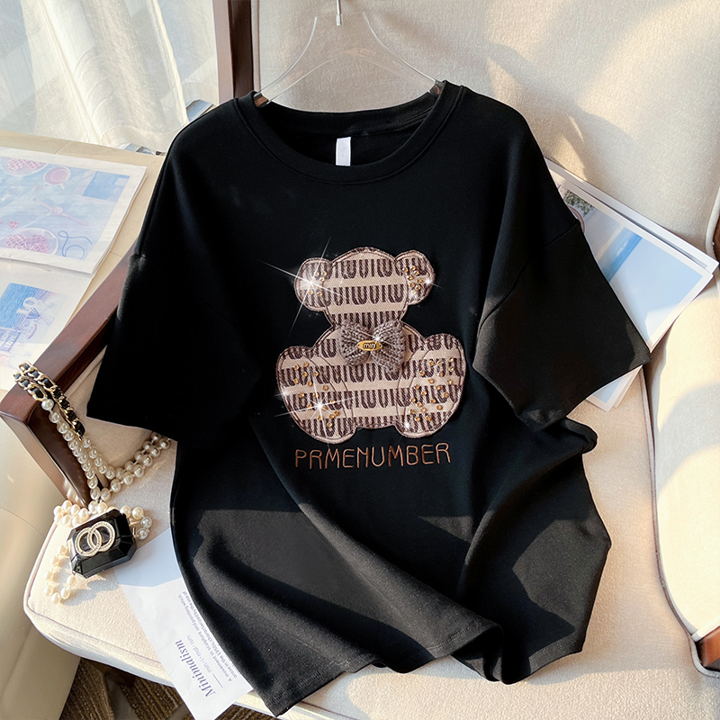 PF3529#新款重工钉珠蝴蝶结小熊纯棉短袖休闲T恤女