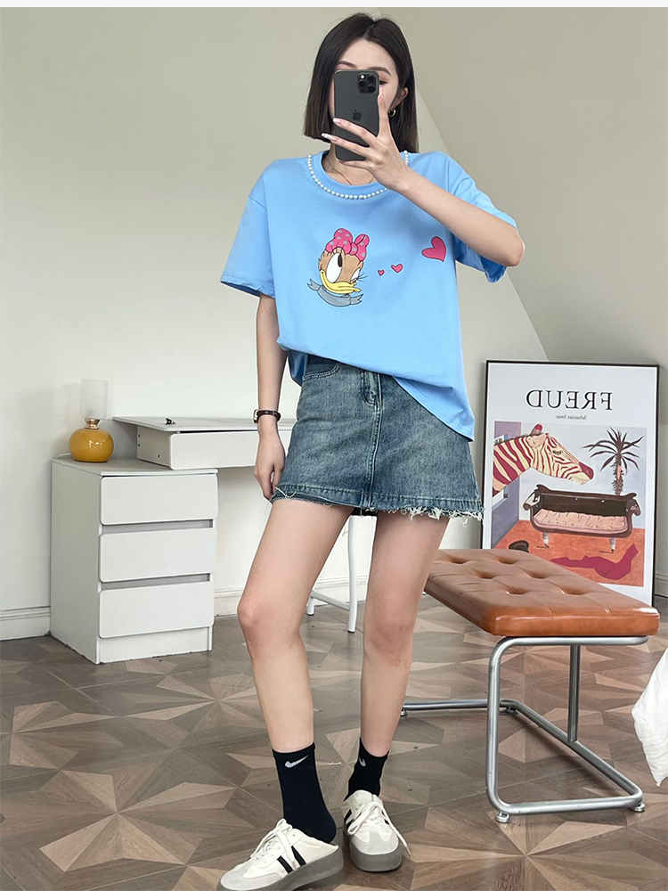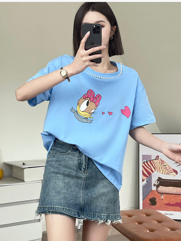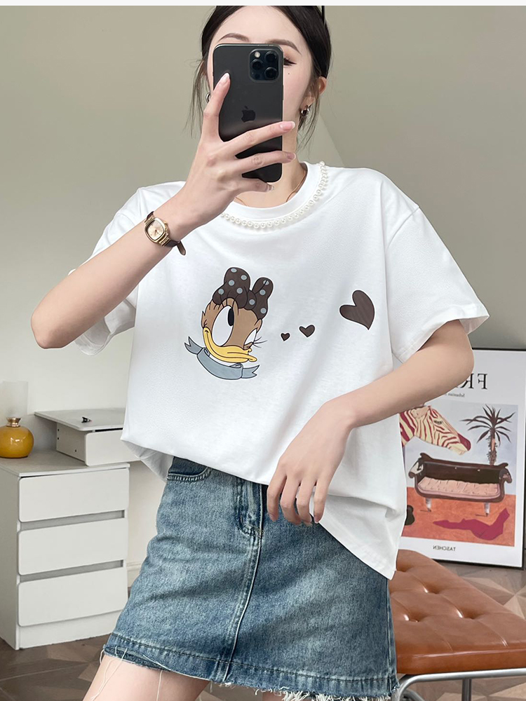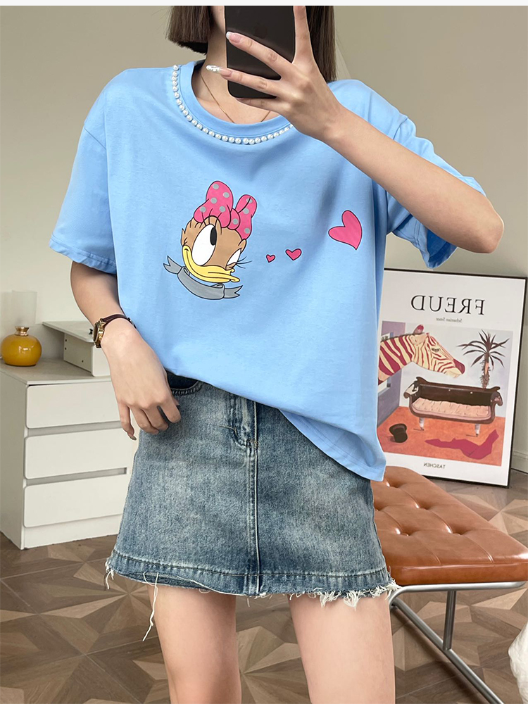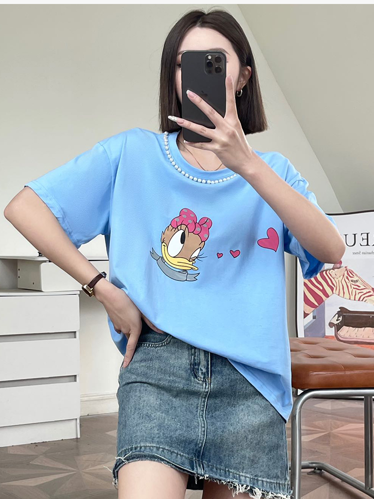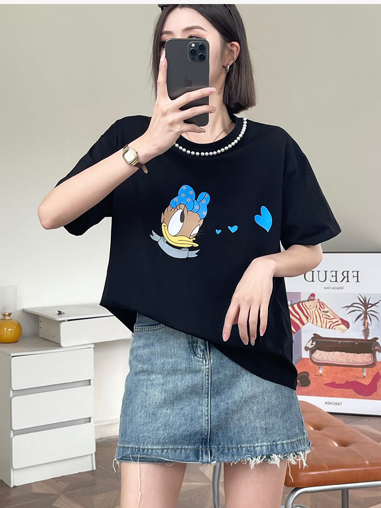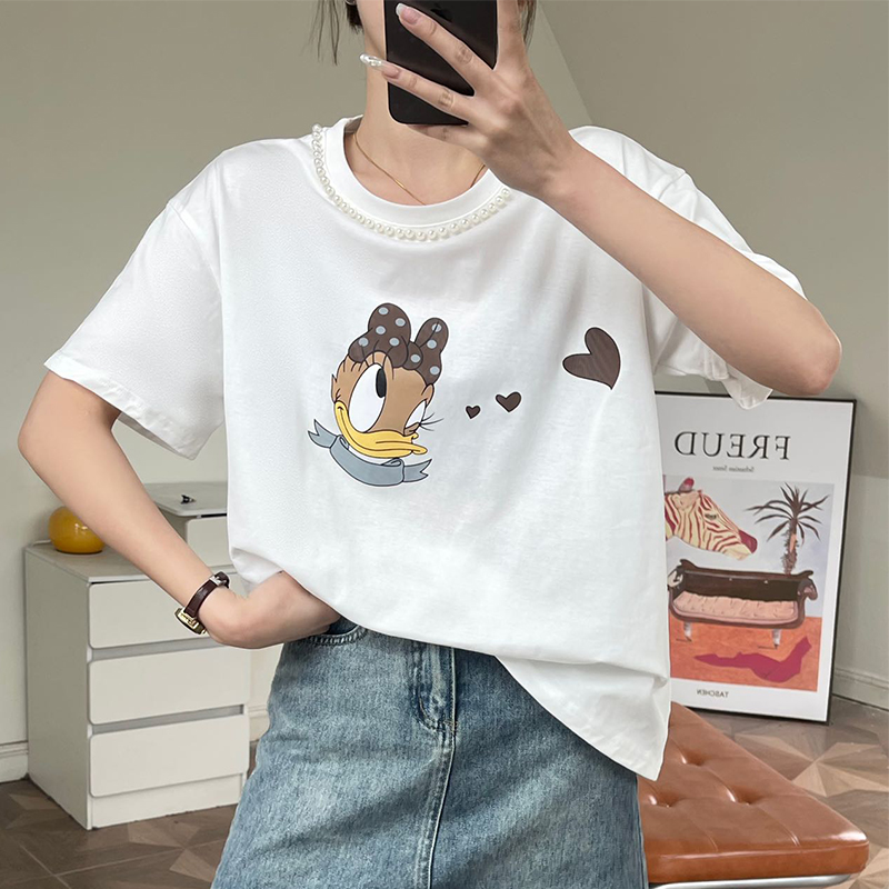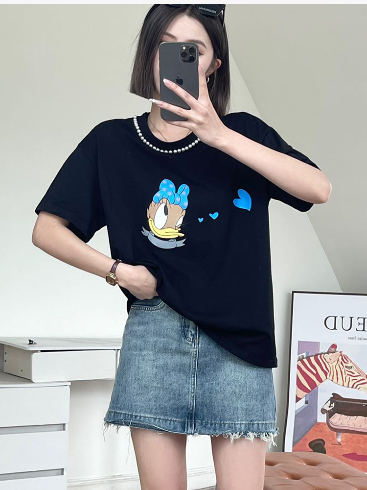 PF3566#唐老鸭刺绣t恤女2024年韩版短袖小众设计感宽松短袖上衣