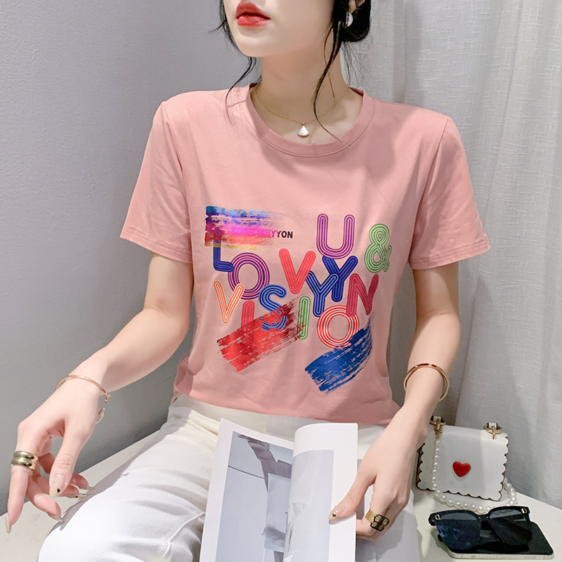 PF3577#欧洲站女装2024年新款t恤女夏修身夏季短袖时尚半袖上衣