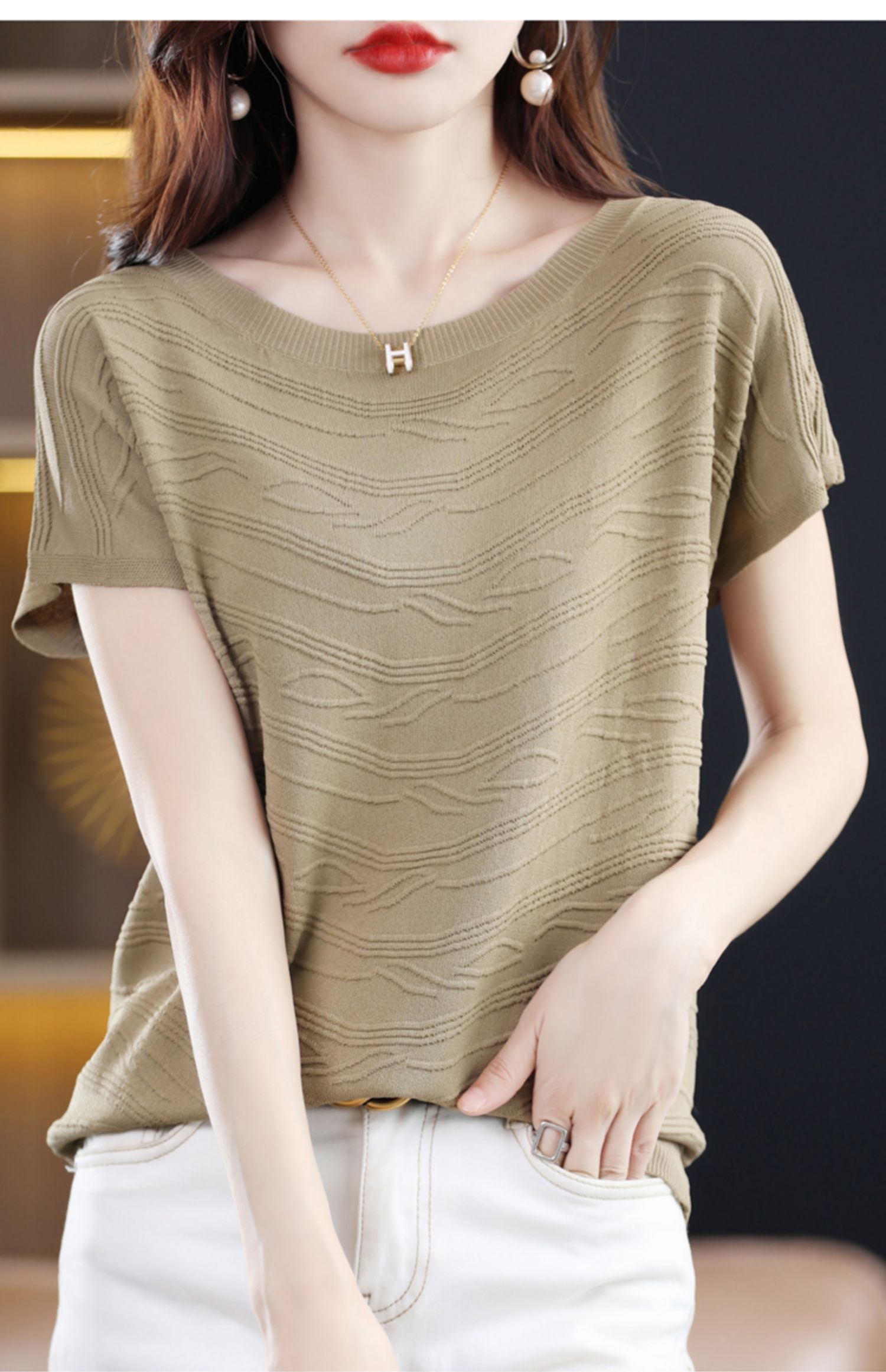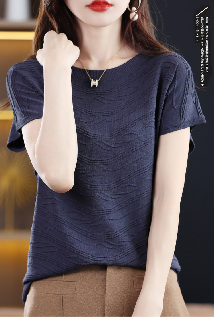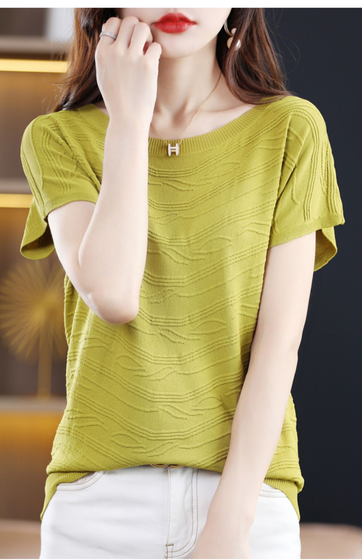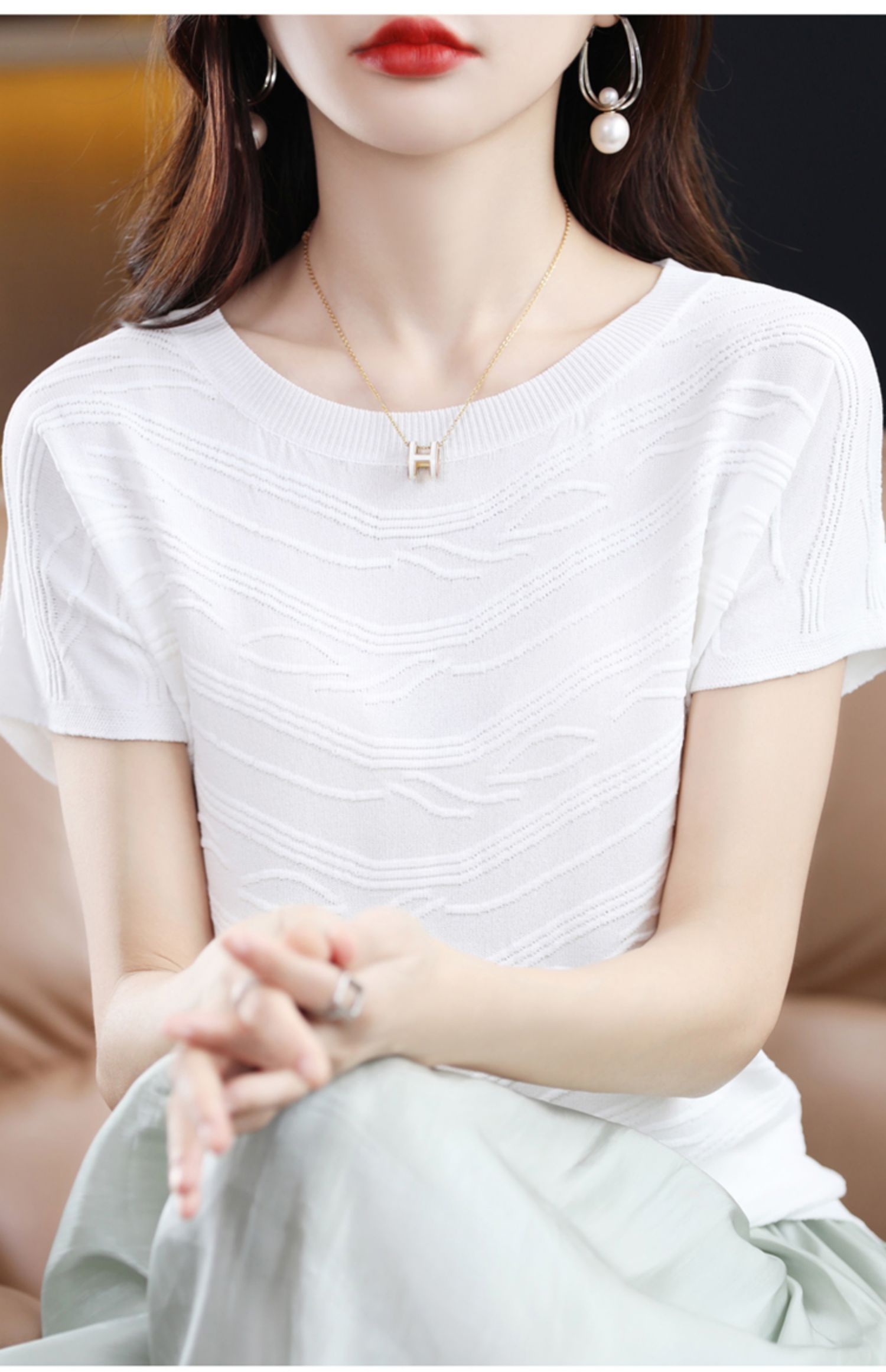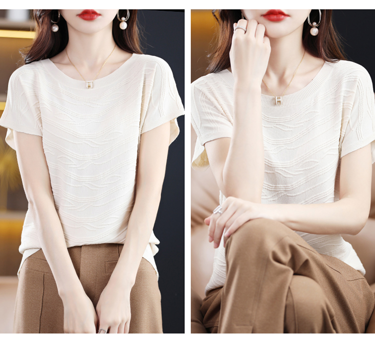 PF3607#冰丝短袖t恤女夏季 新款女装纹理针织体恤上衣高端薄款打底衫