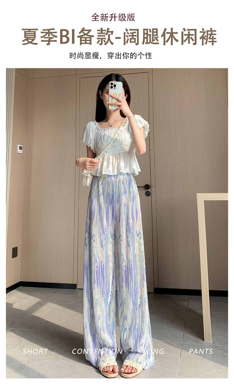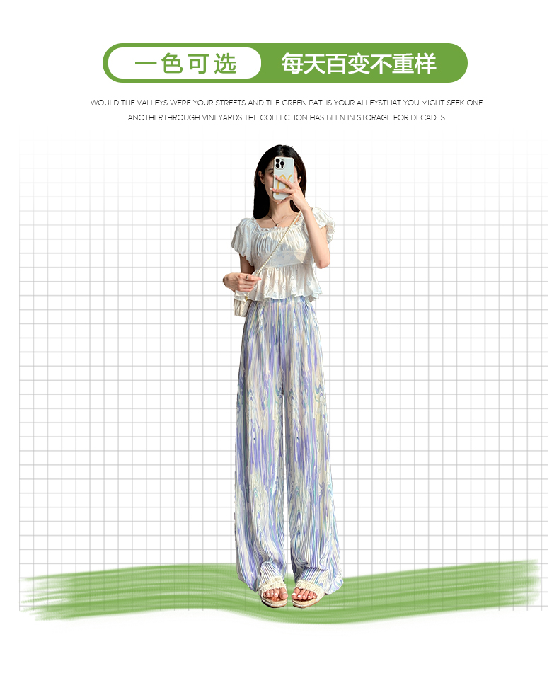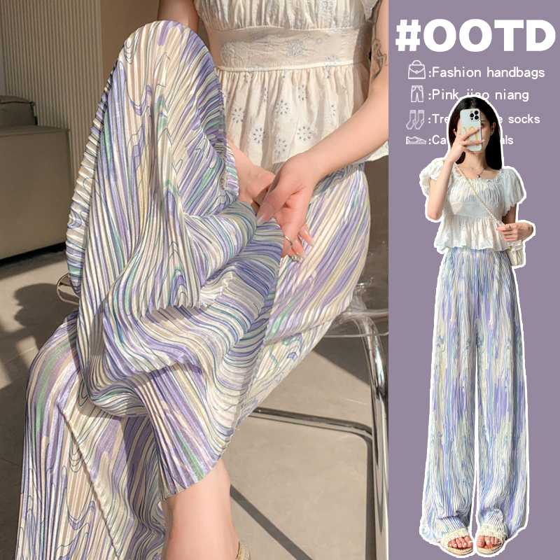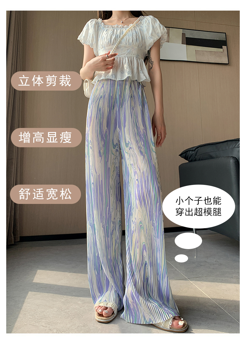 PF3675#百褶裤 压褶冰丝阔腿裤女2024夏秋季松紧腰垂感防蚊凉凉裤小个子