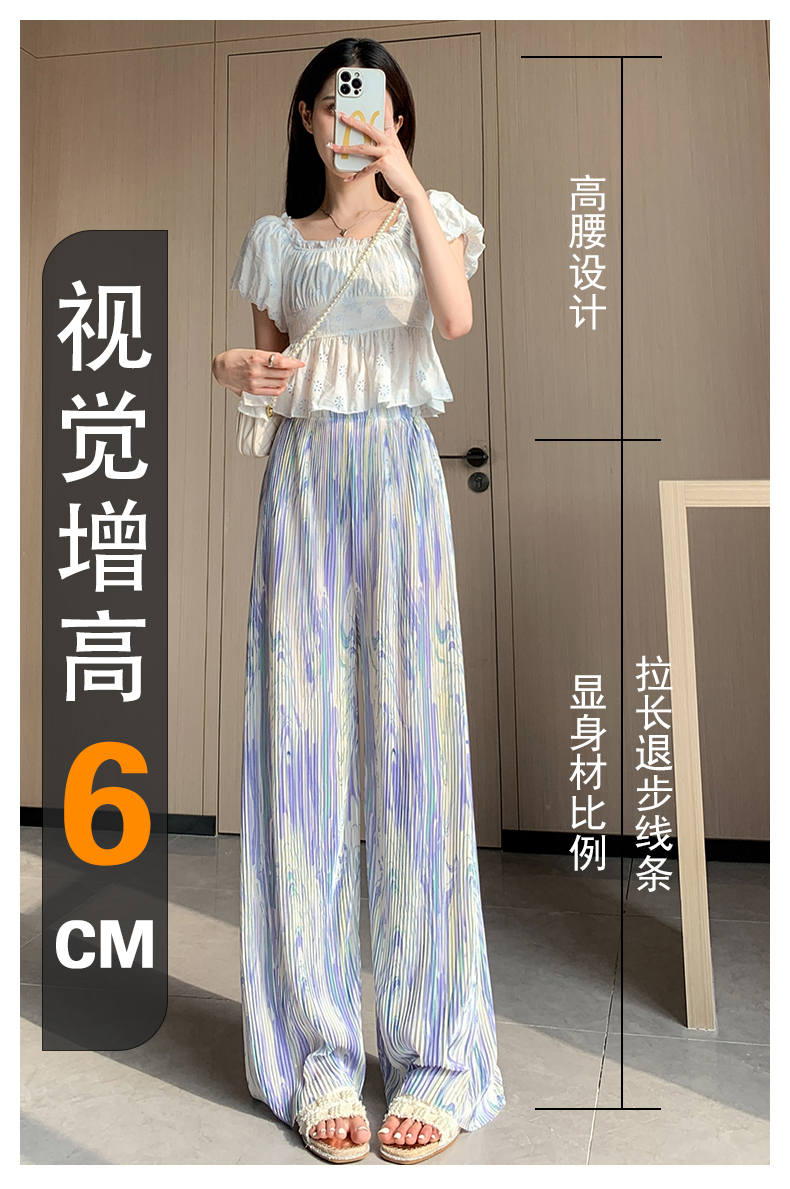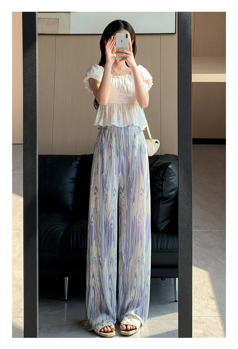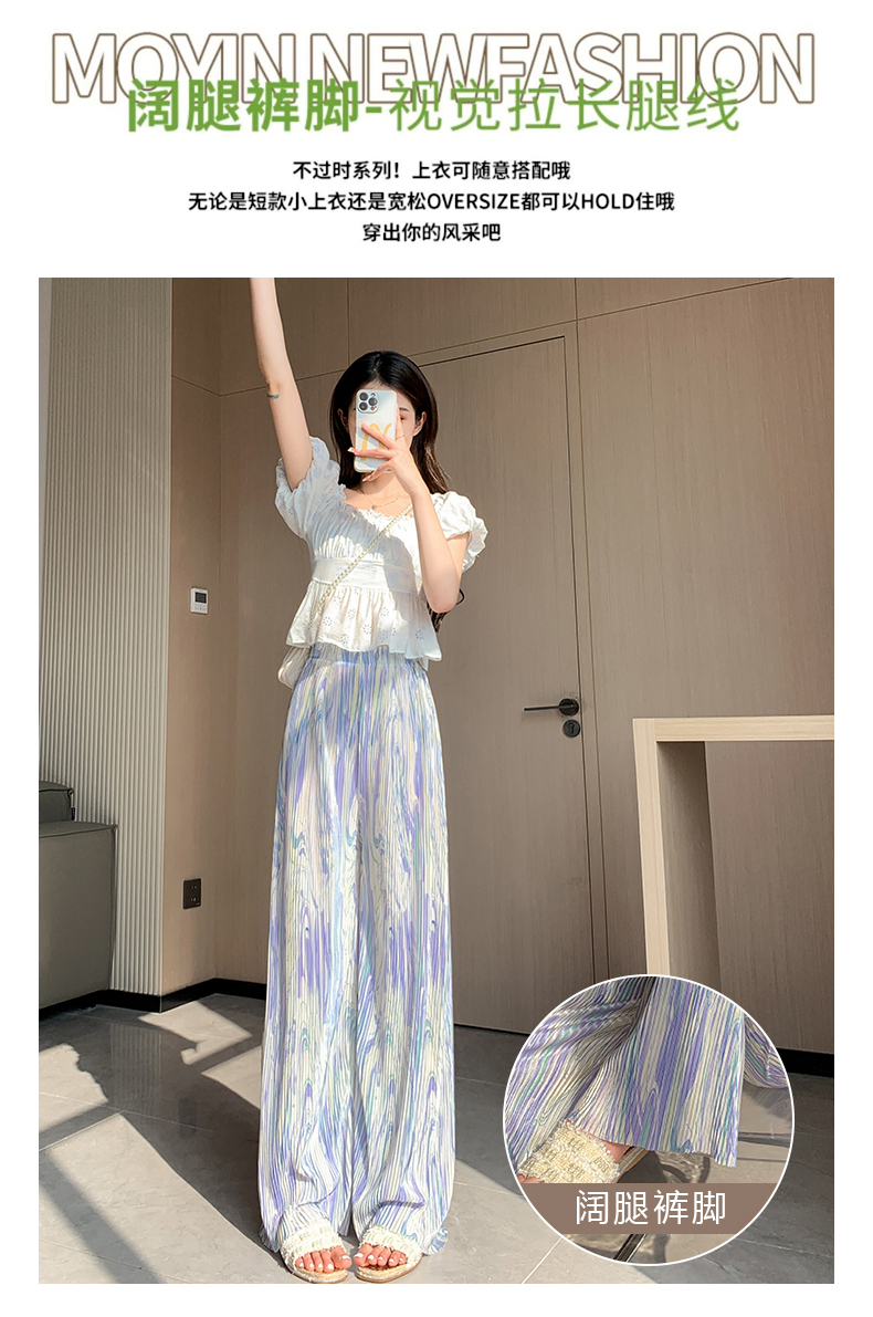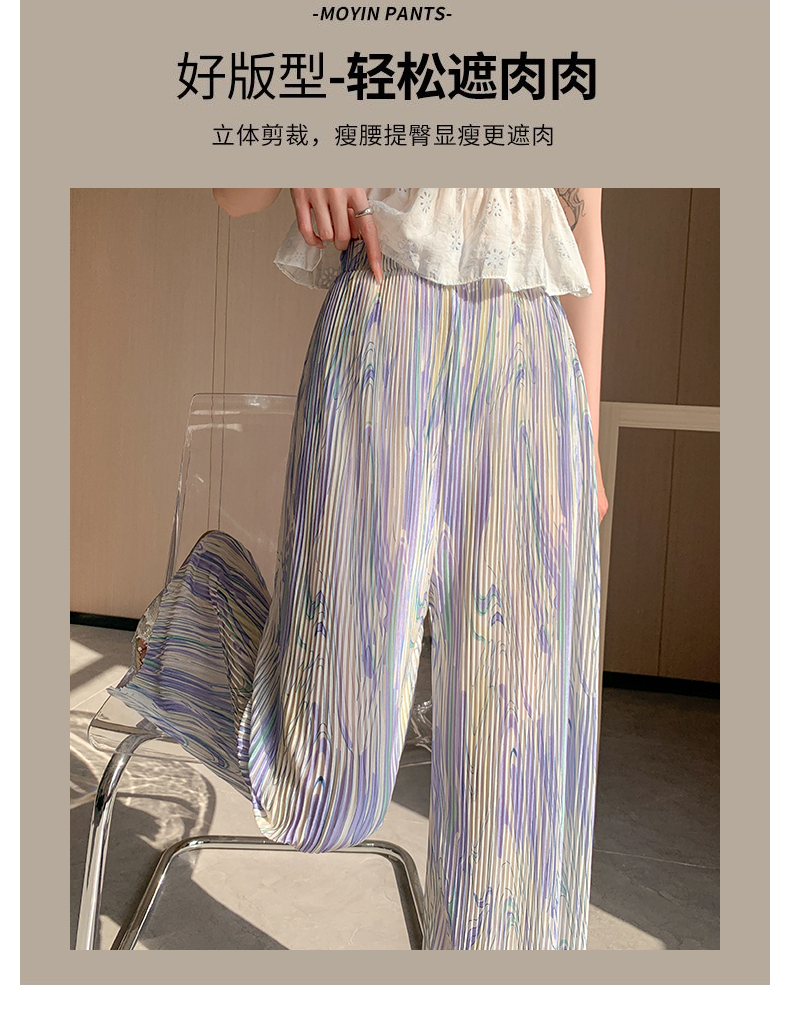 PF3675#百褶裤 压褶冰丝阔腿裤女2024夏秋季松紧腰垂感防蚊凉凉裤小个子