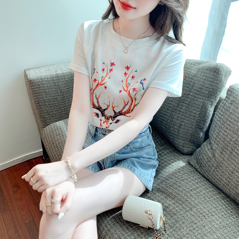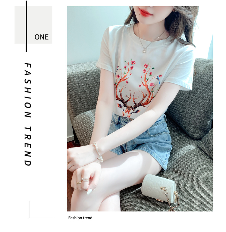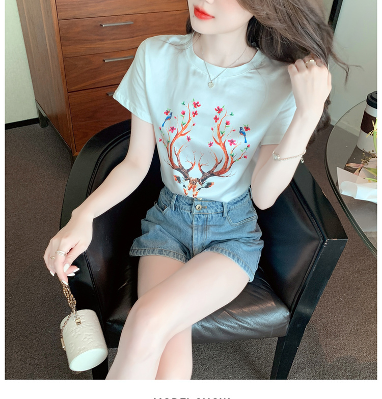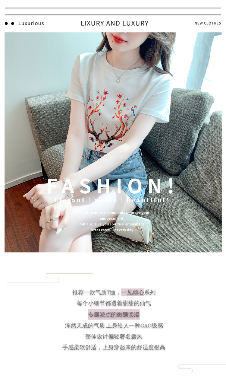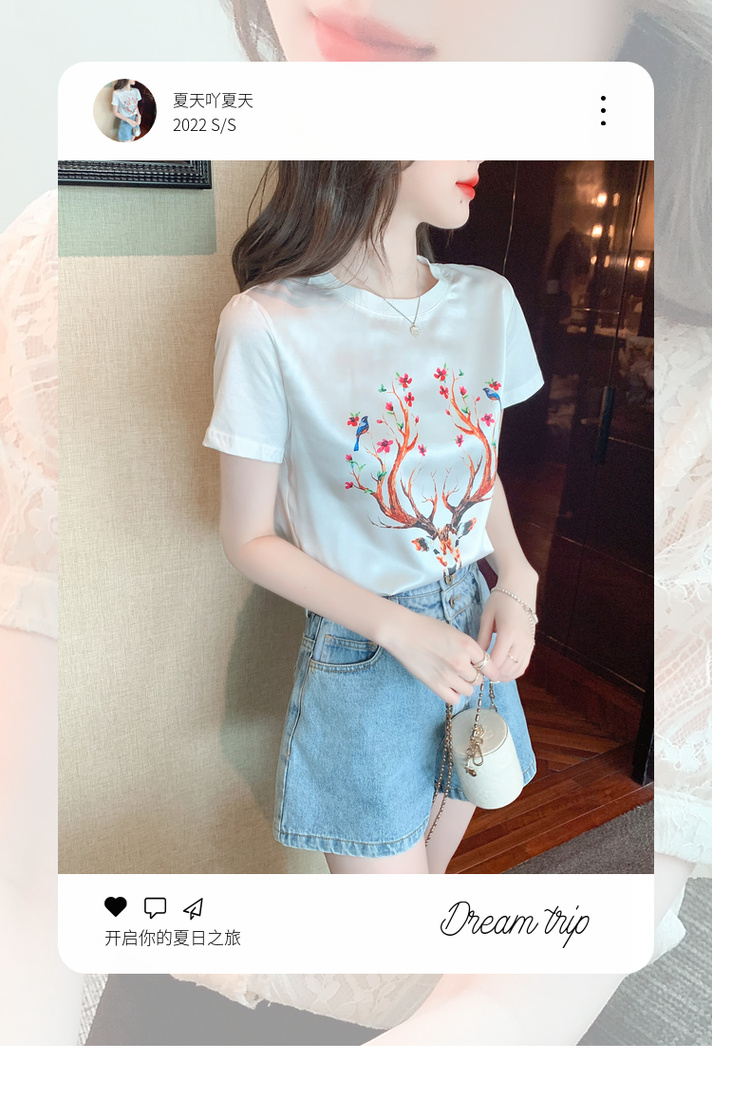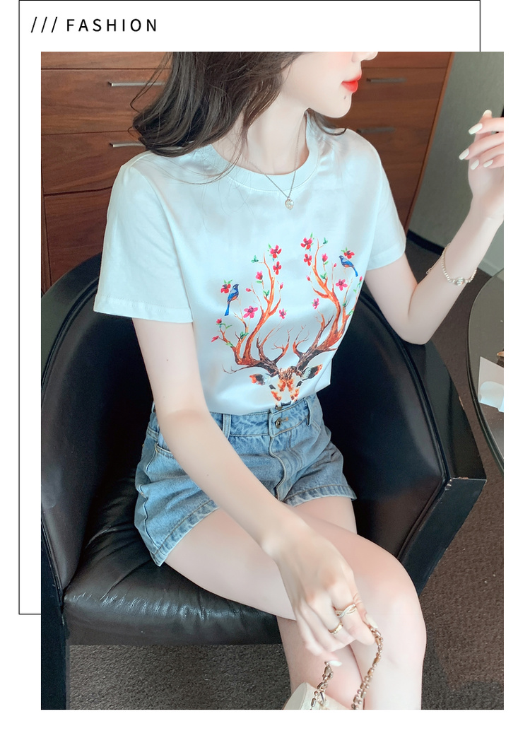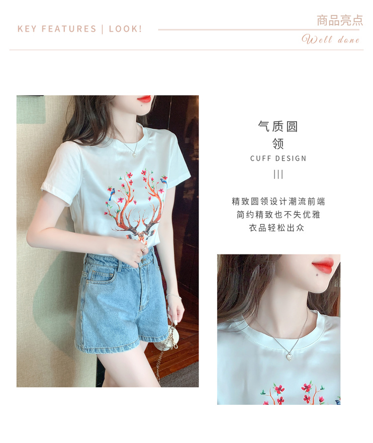 PF3729#新款夏季真丝缎面短袖t恤女印花桑蚕丝韩版宽松百搭显瘦上衣