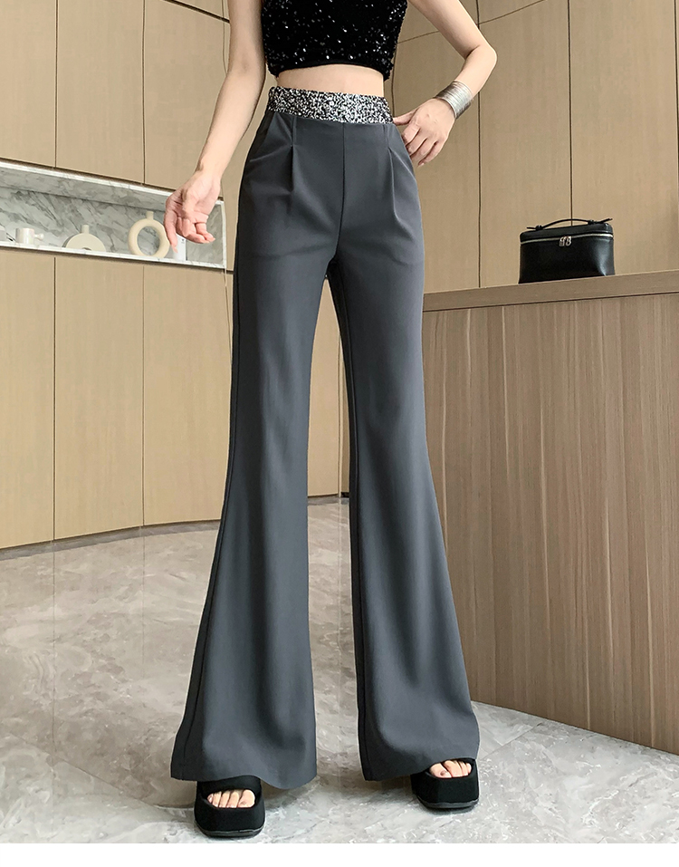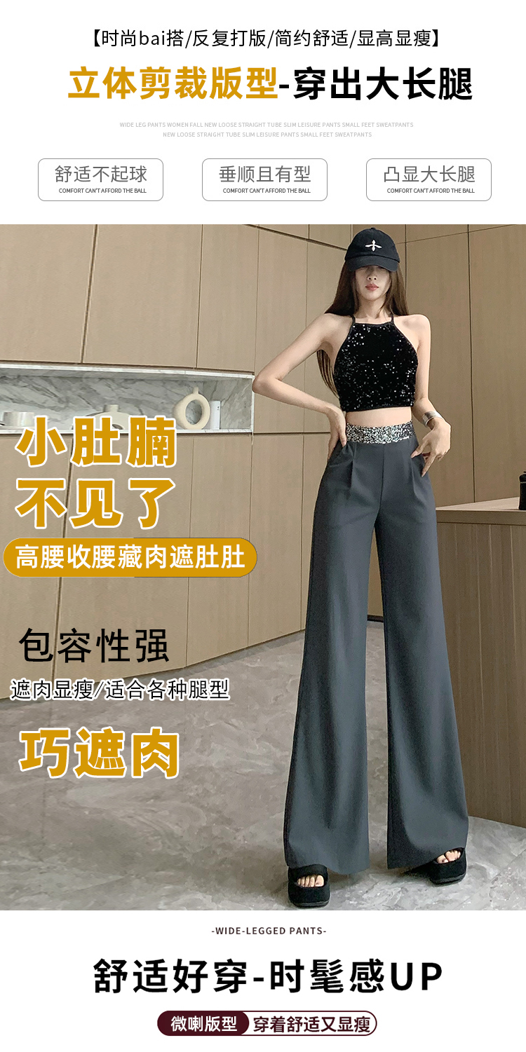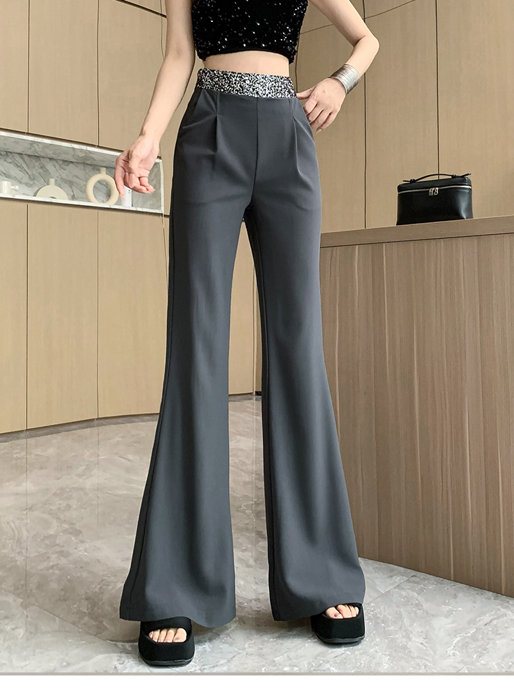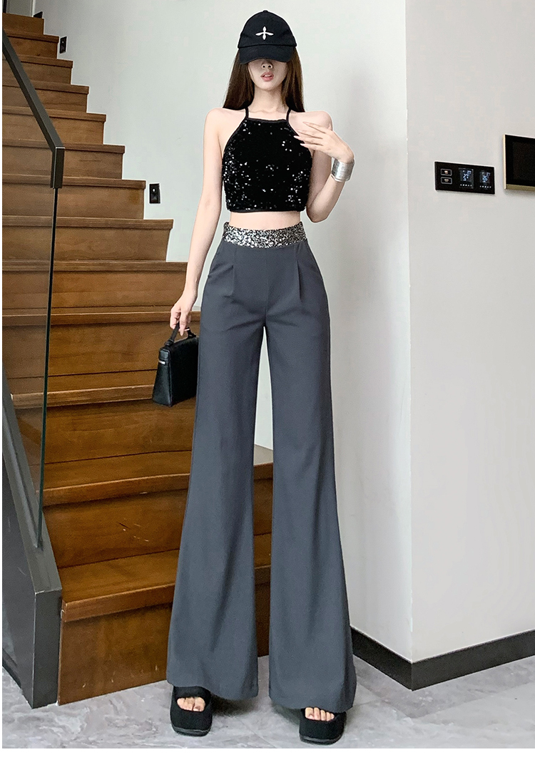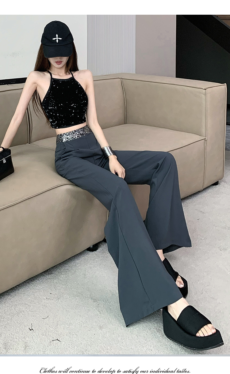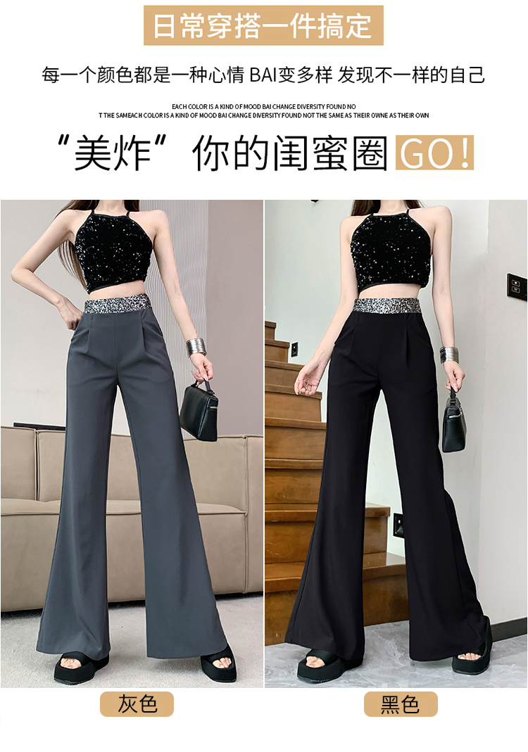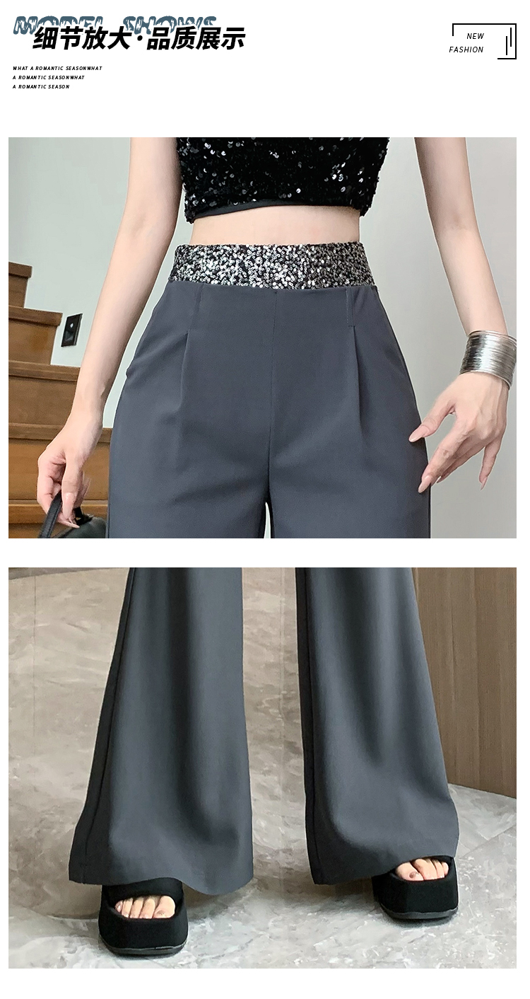 PF3741#设计感小众亮片拼接休闲西装裤女2024春季新款高腰显瘦阔腿裤