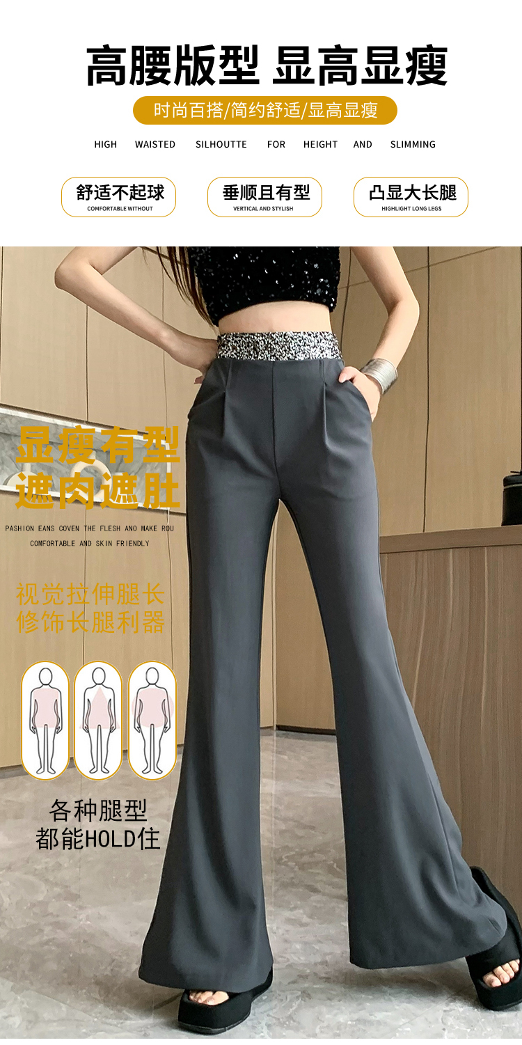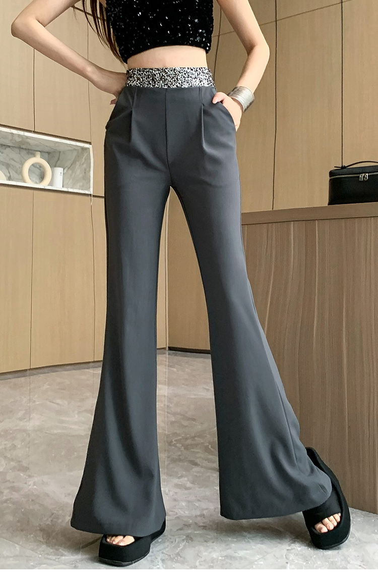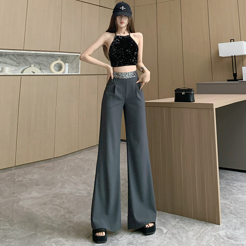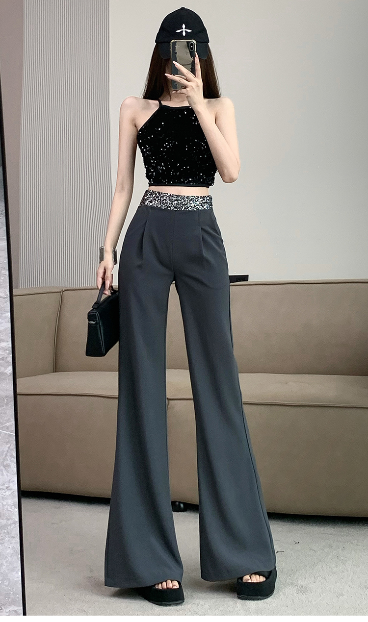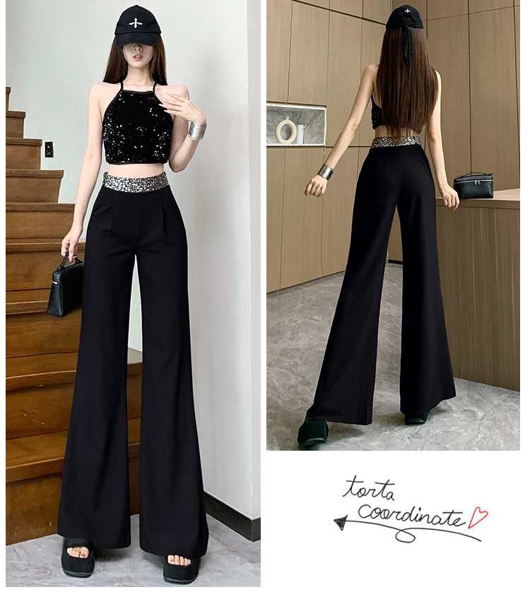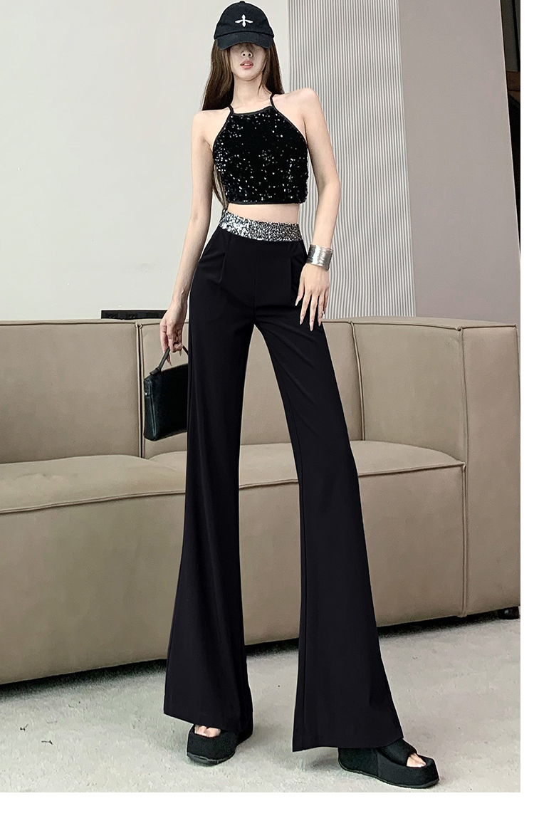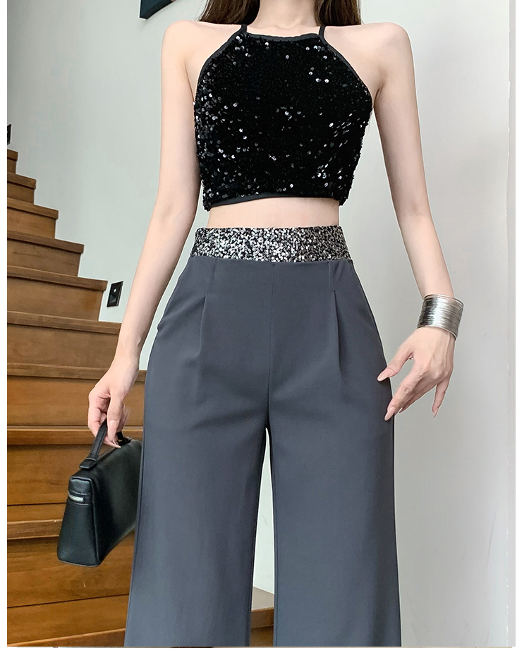 PF3741#设计感小众亮片拼接休闲西装裤女2024春季新款高腰显瘦阔腿裤