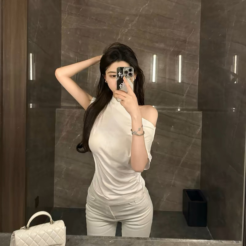 PF3747#白色t恤女上衣短袖内搭2024新款宽松短款体恤纯欲设计感小众