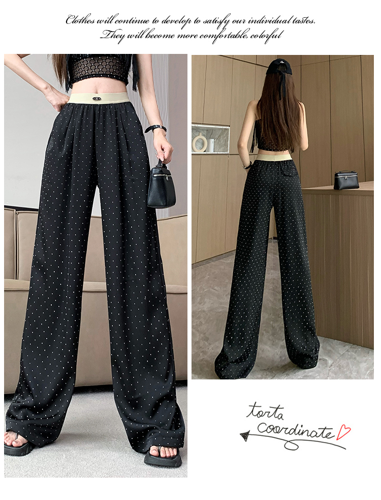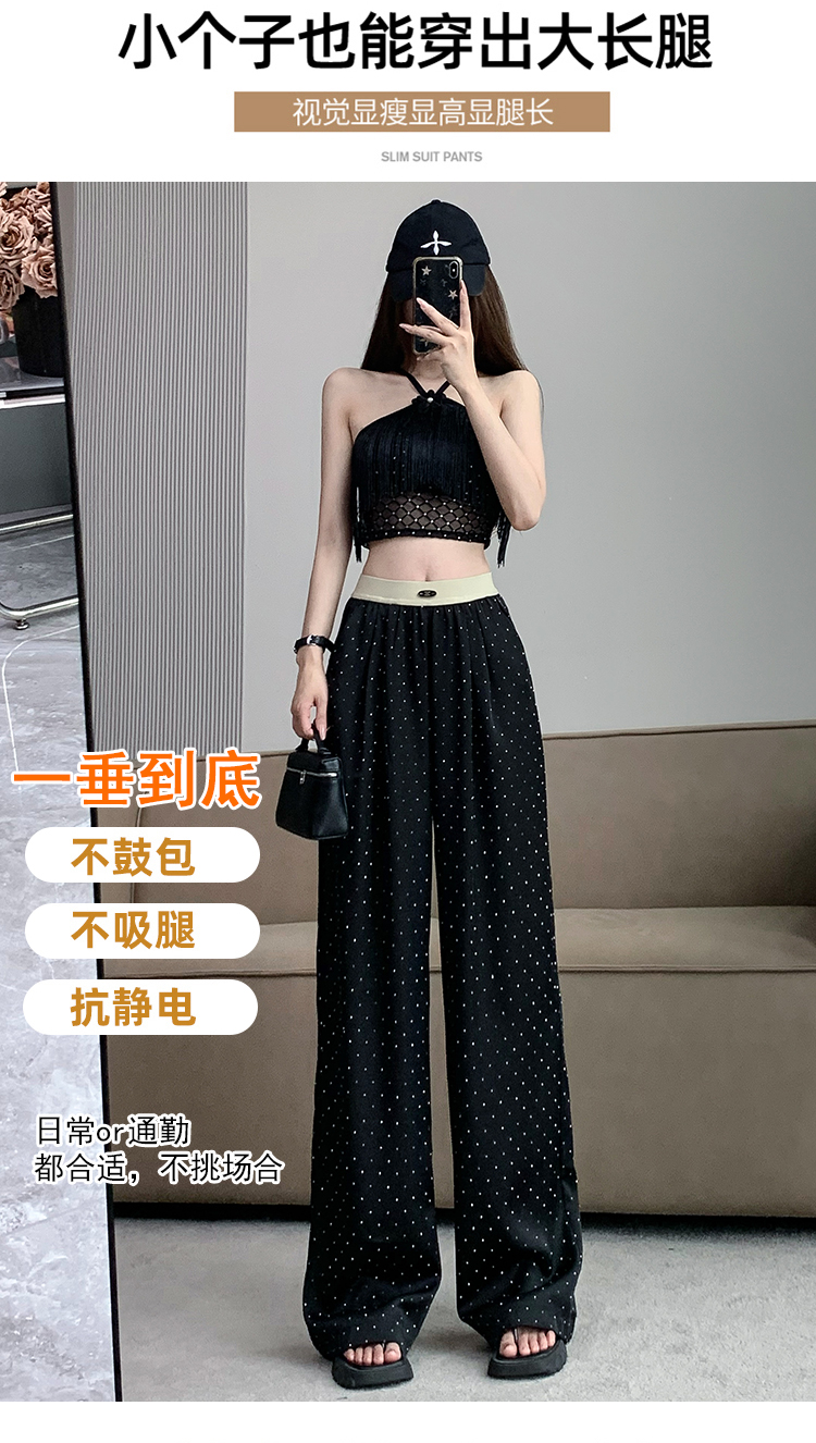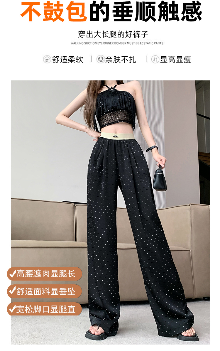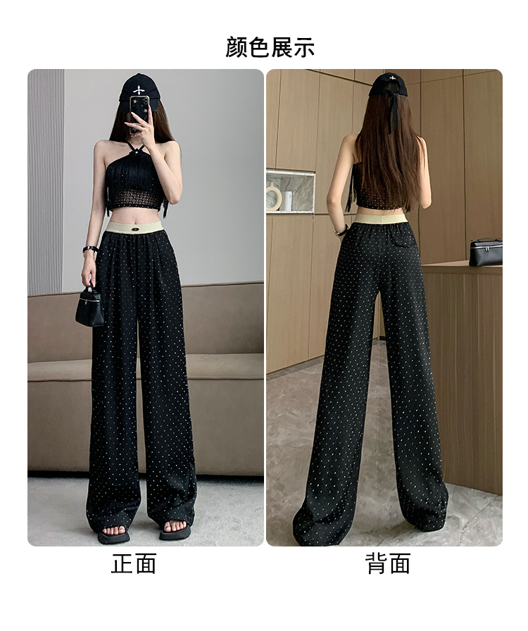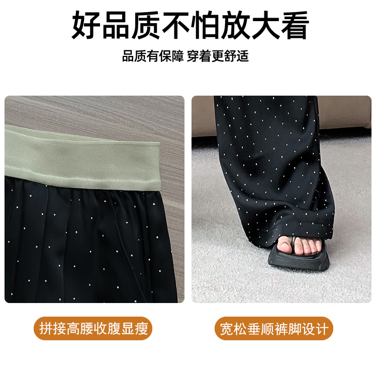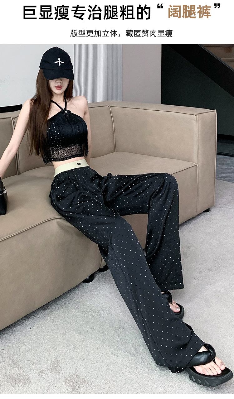PF3808#松紧腰满天星烫钻阔腿休闲裤女夏高腰显瘦宽松垂感直筒拖地裤