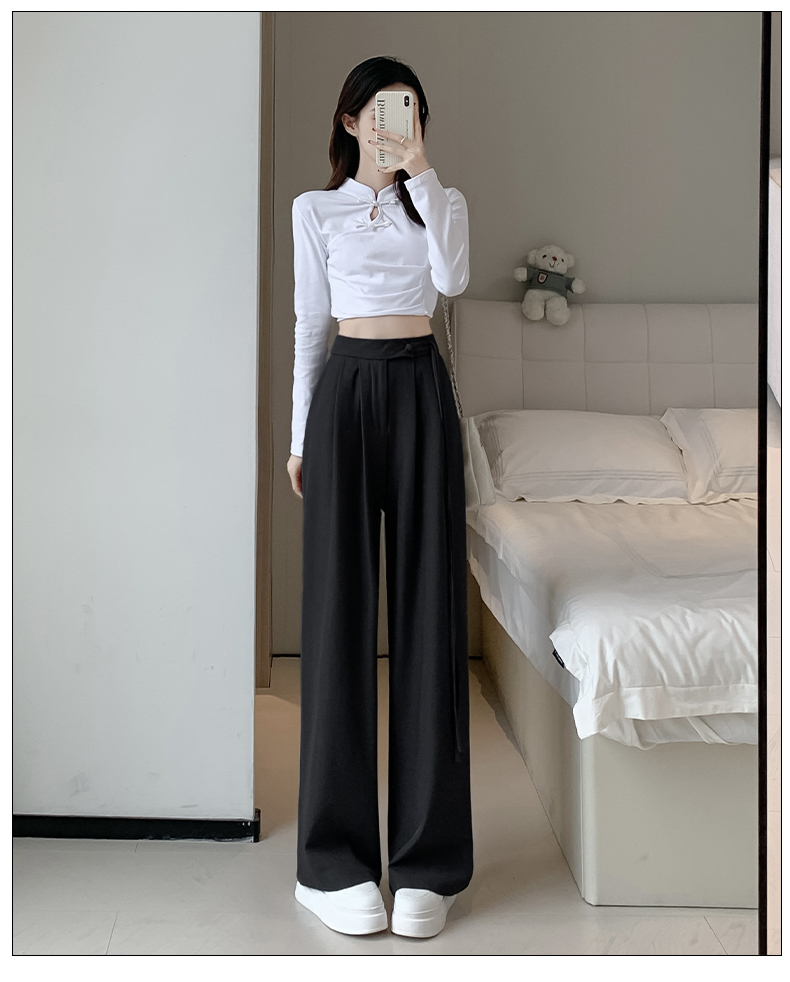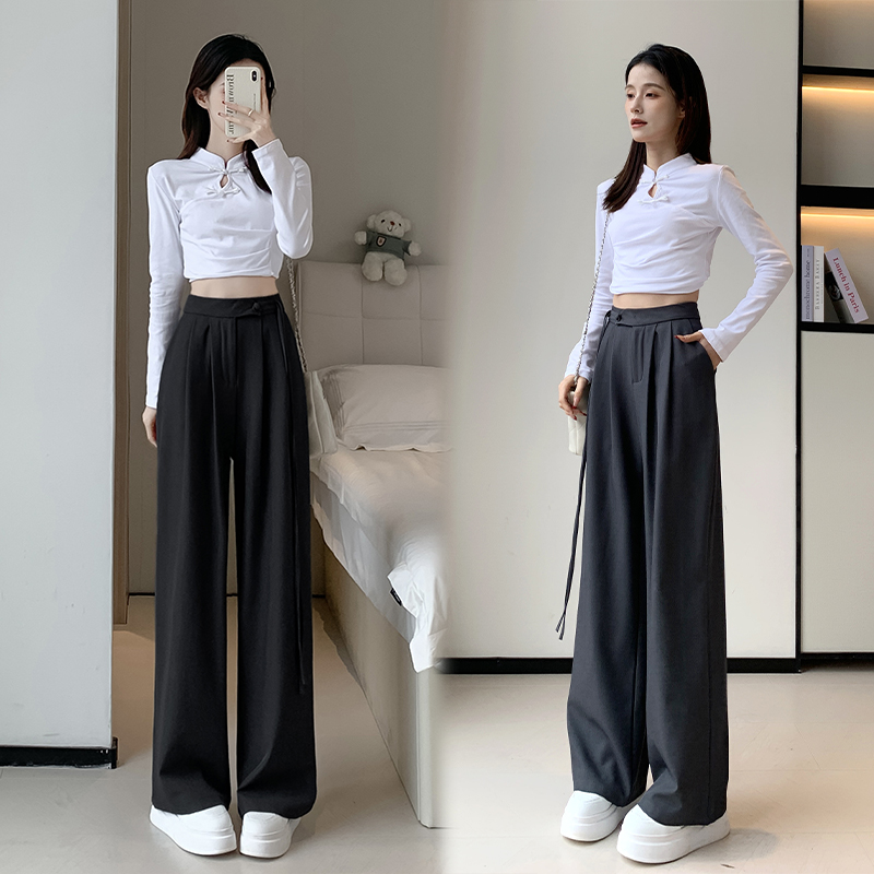 PF3898#新款西装裤高腰窄版阔腿裤直筒休闲裤拖地裤女