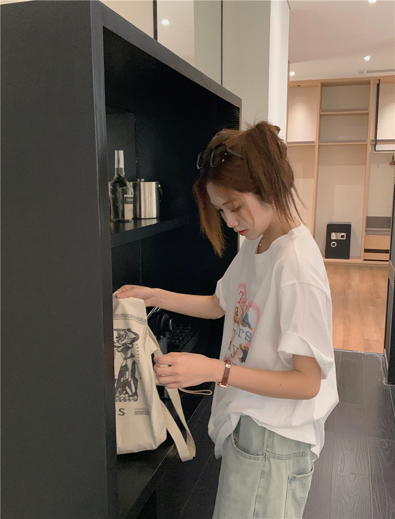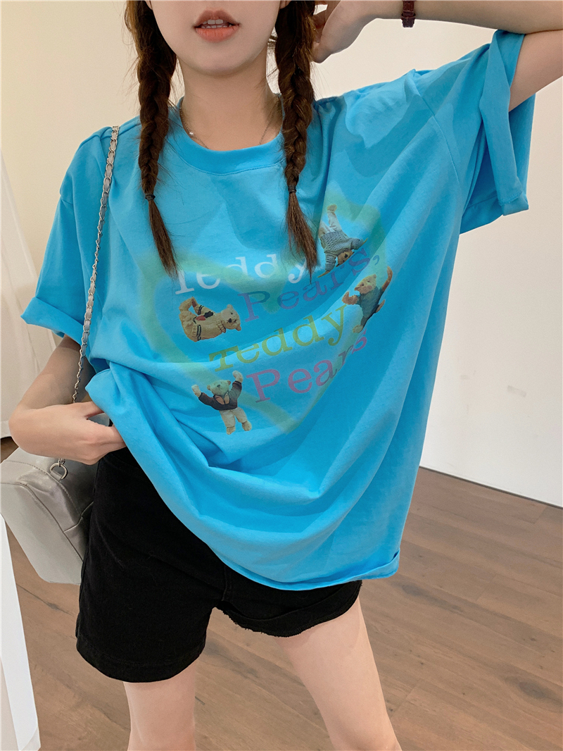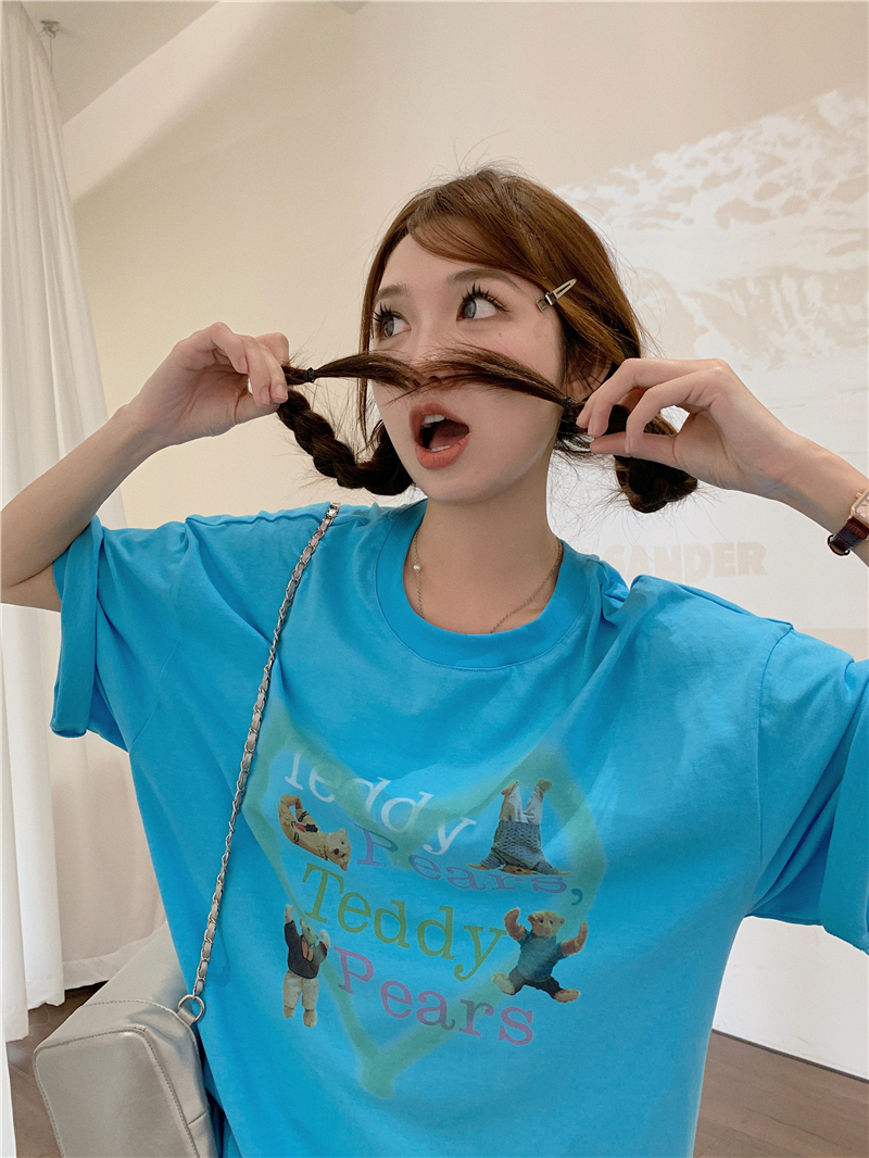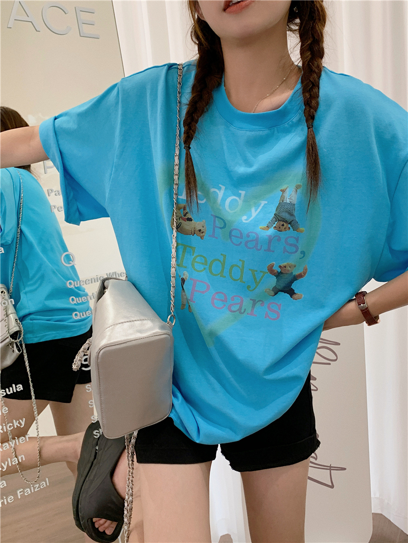 PF3942#夏季休闲爱心小熊印花宽松百搭短袖T恤