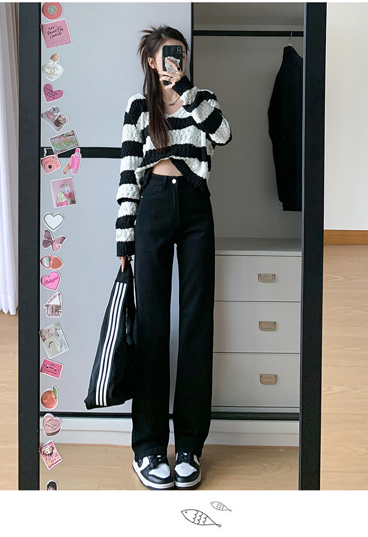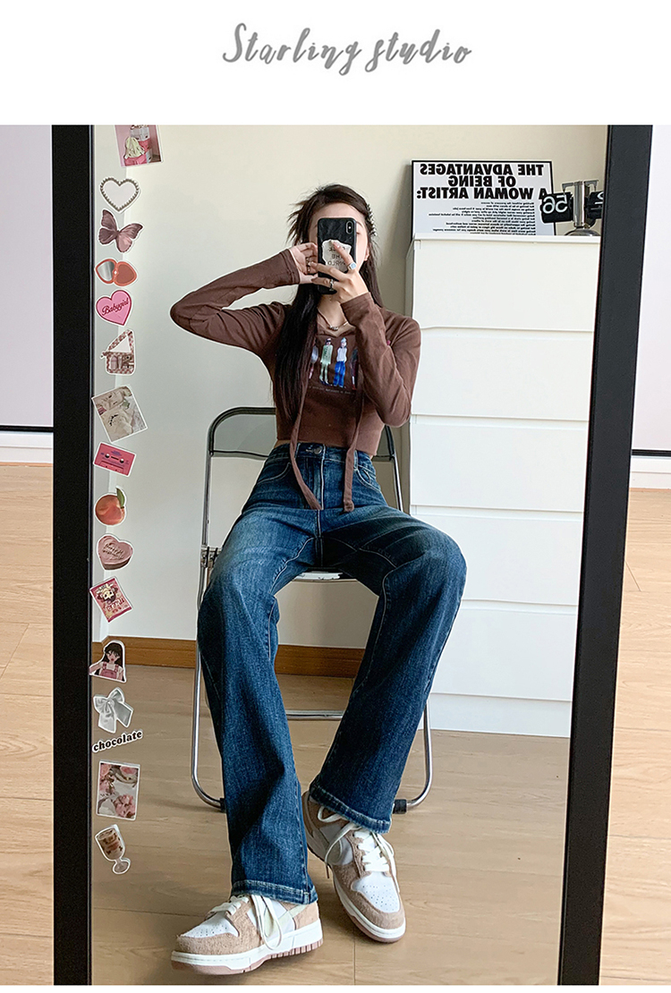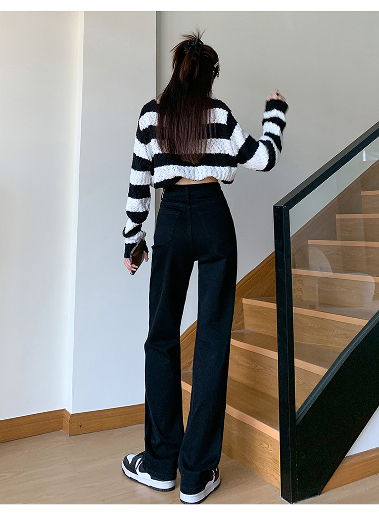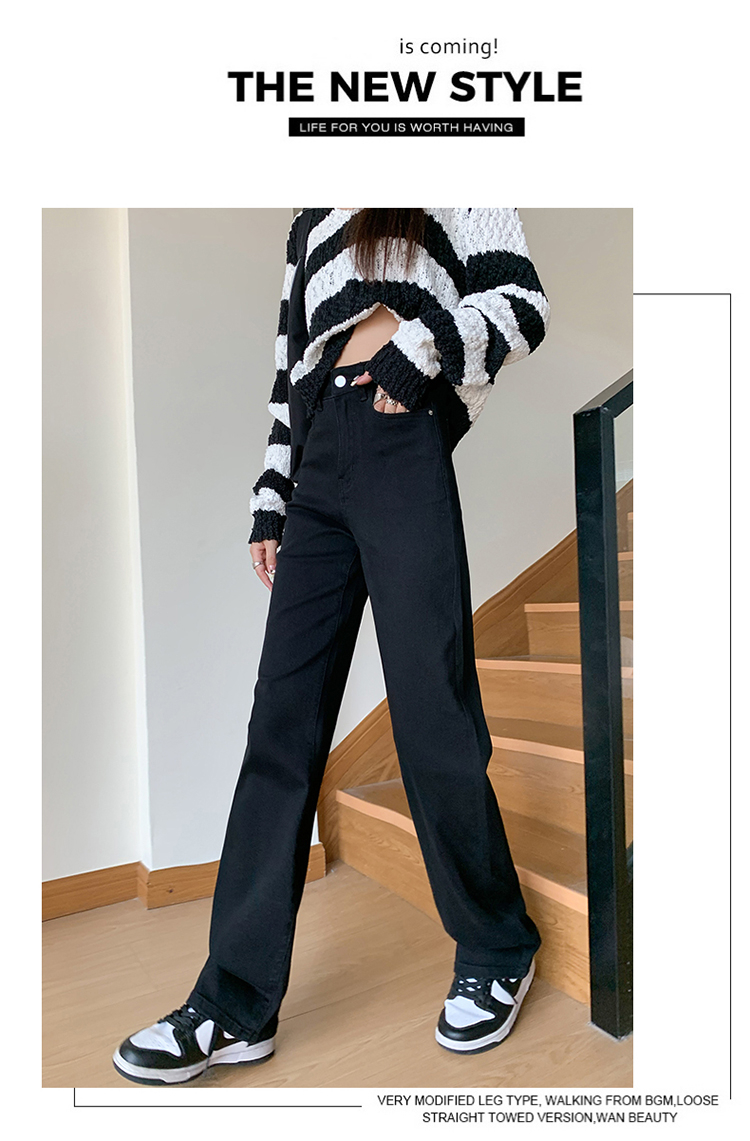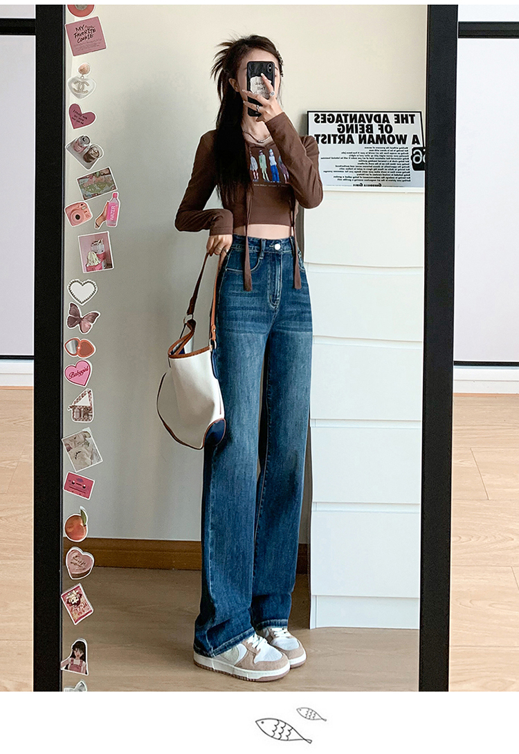PF3973#高腰显瘦水洗复古蓝直筒牛仔裤女修身百搭弹力烟管裤子