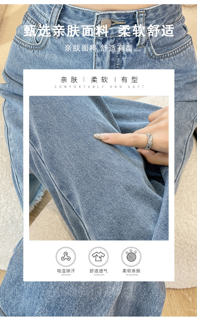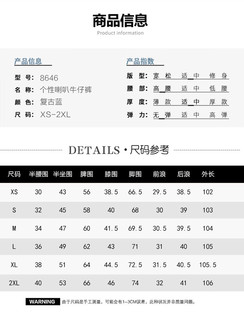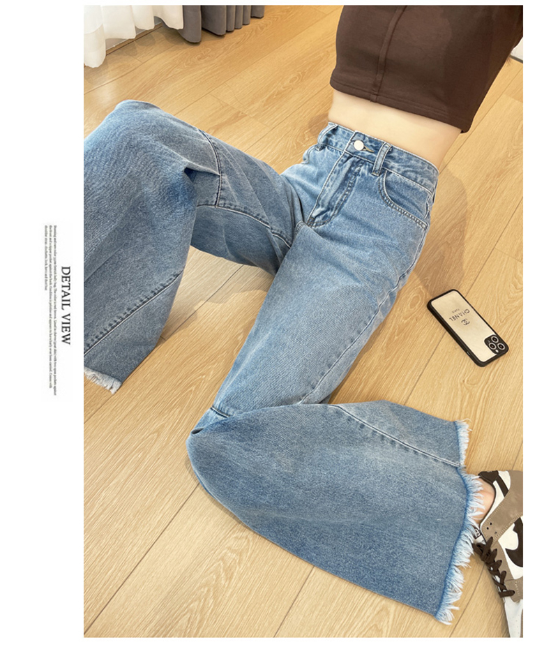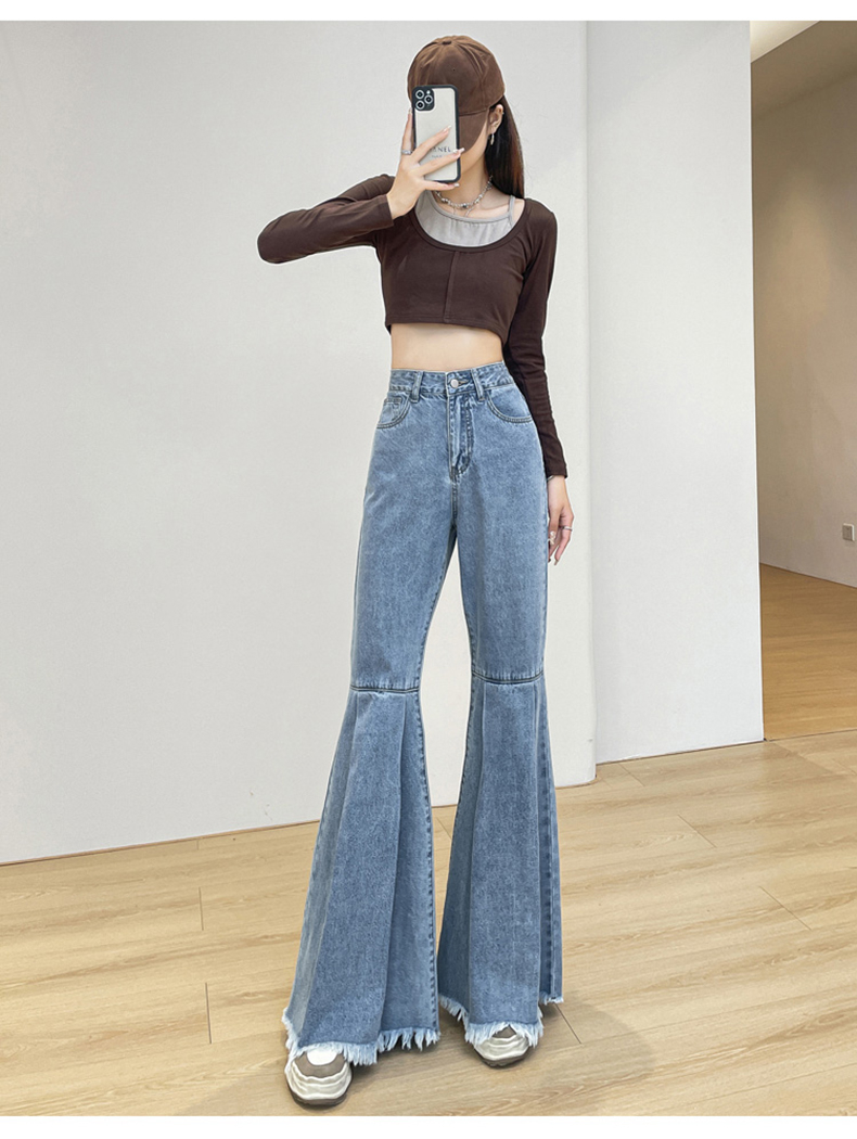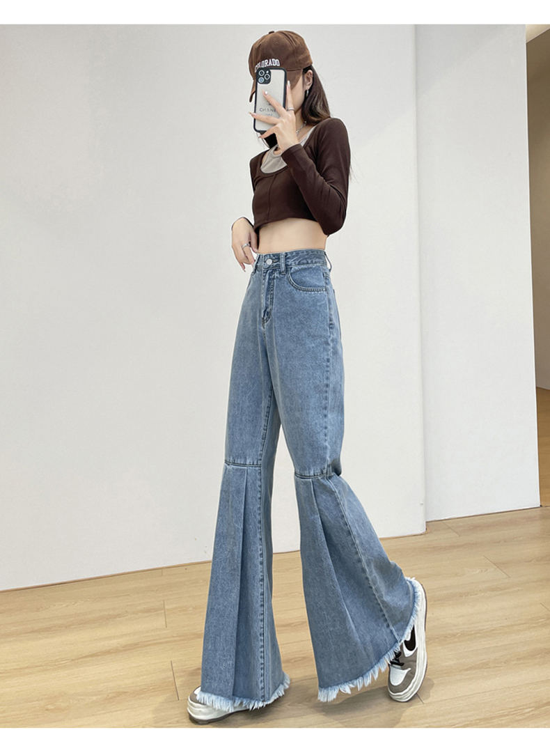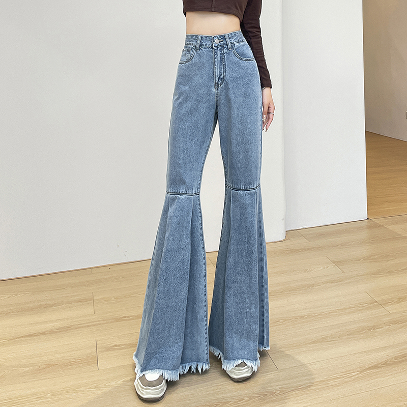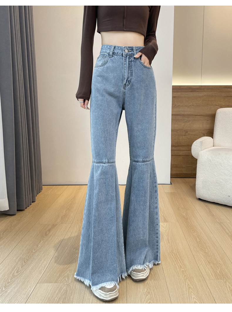 PF3975#四季款折叠式设计微喇叭牛仔裤女高腰显瘦辣妹毛边马蹄裤子
