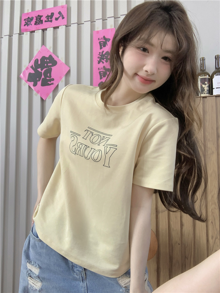 PF4094#百搭字母印花上衣字母圆领T恤女减龄复古体恤女