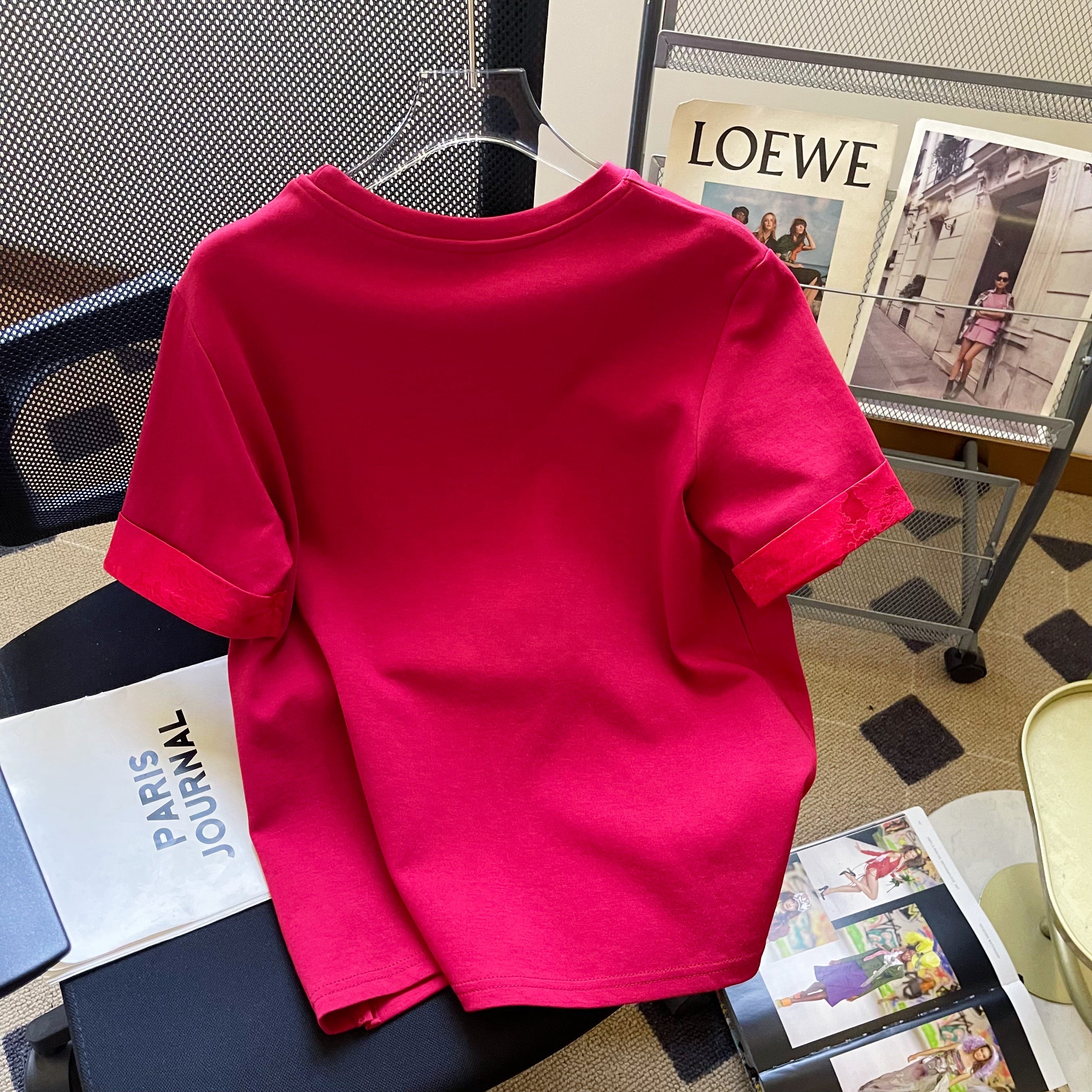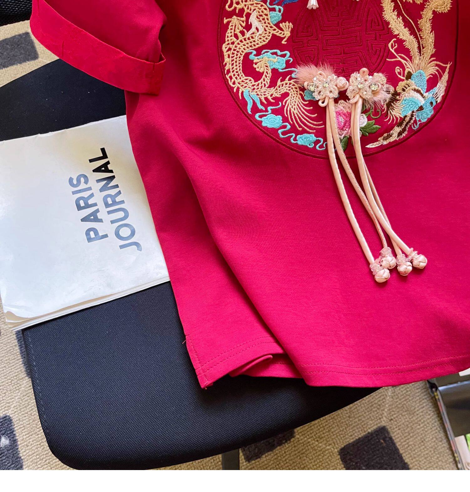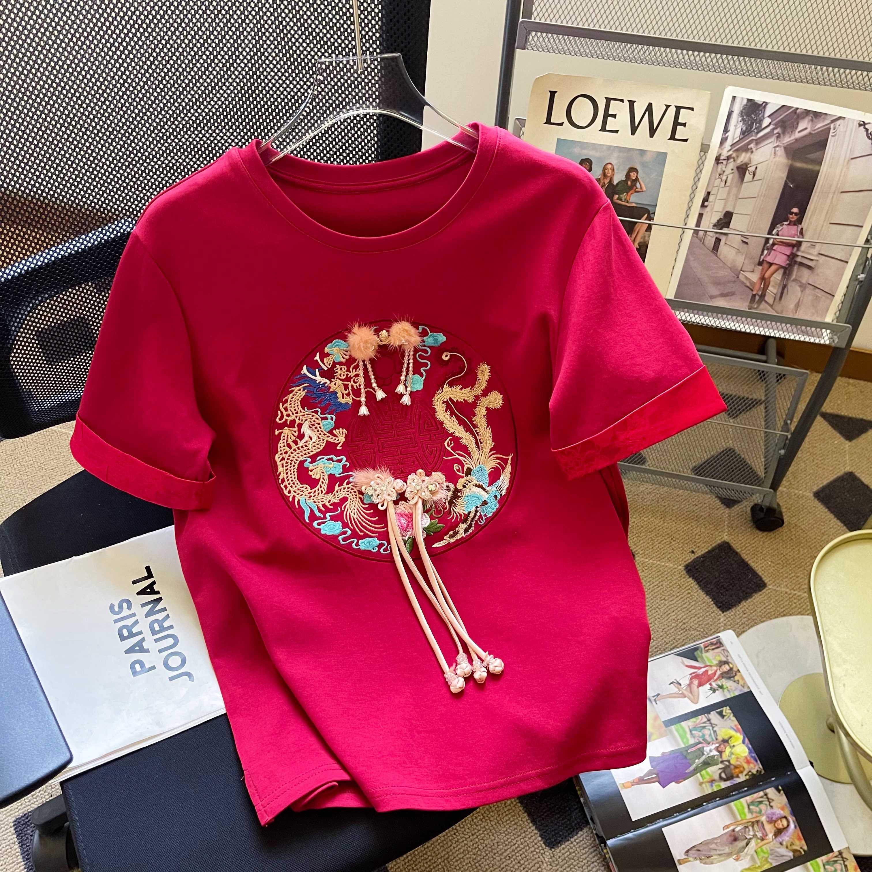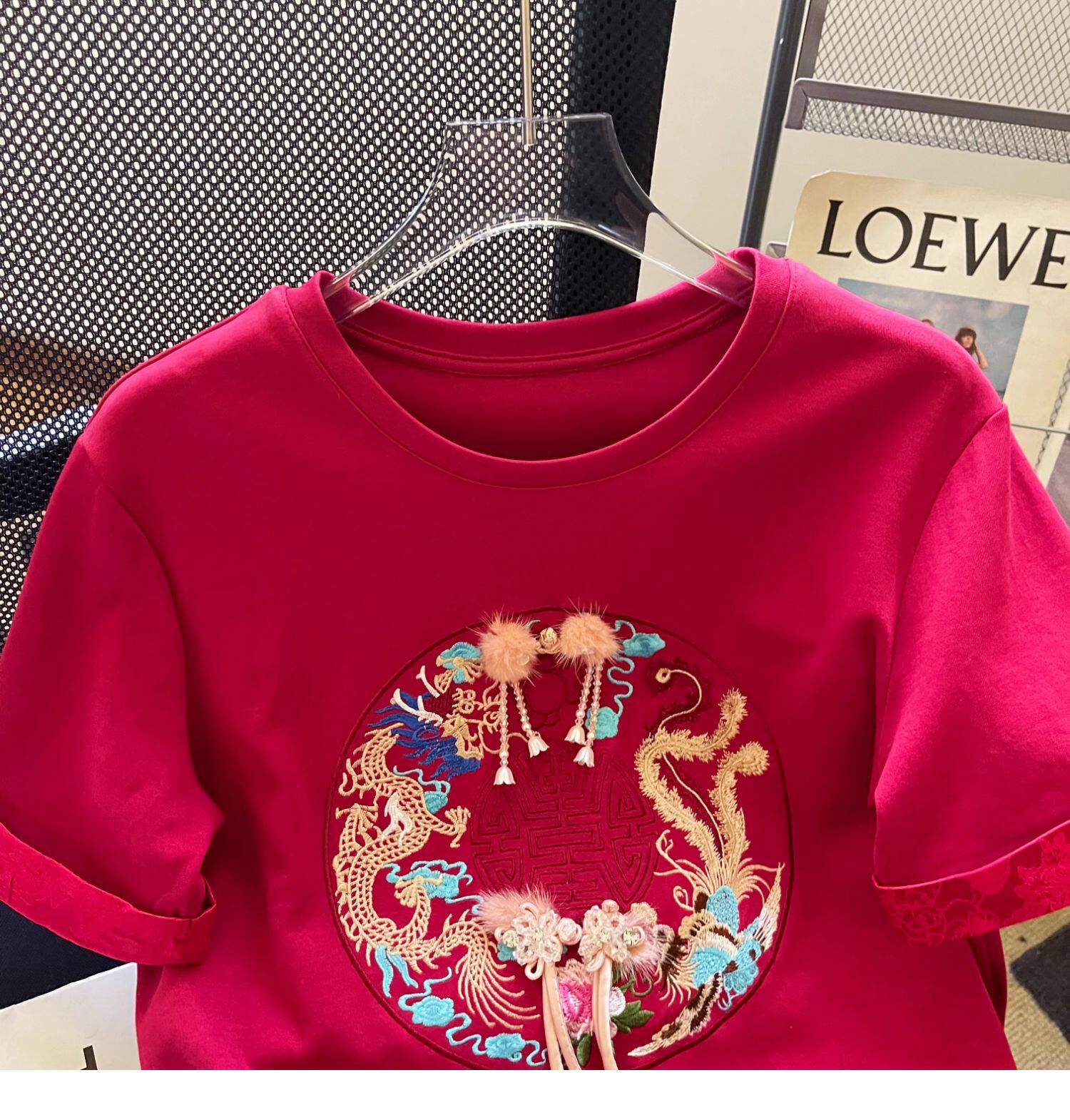 PF4427#新款新年红立体装饰国风刺绣短袖t恤女春季重工宽松百搭上衣女裝批發 服裝批發 服裝貨源