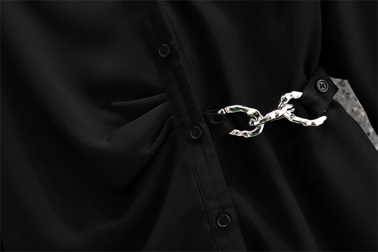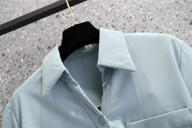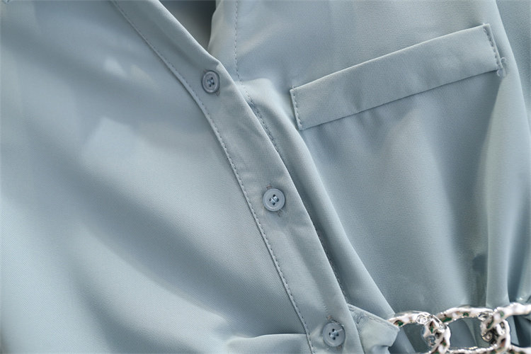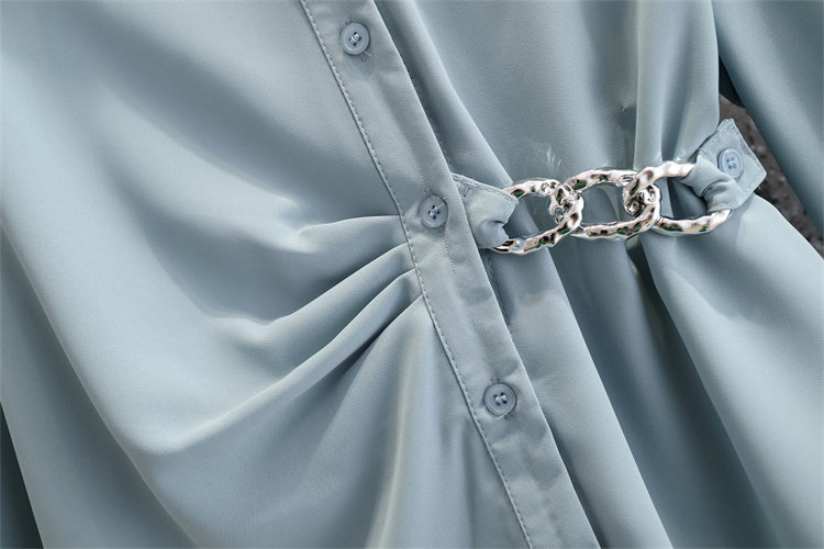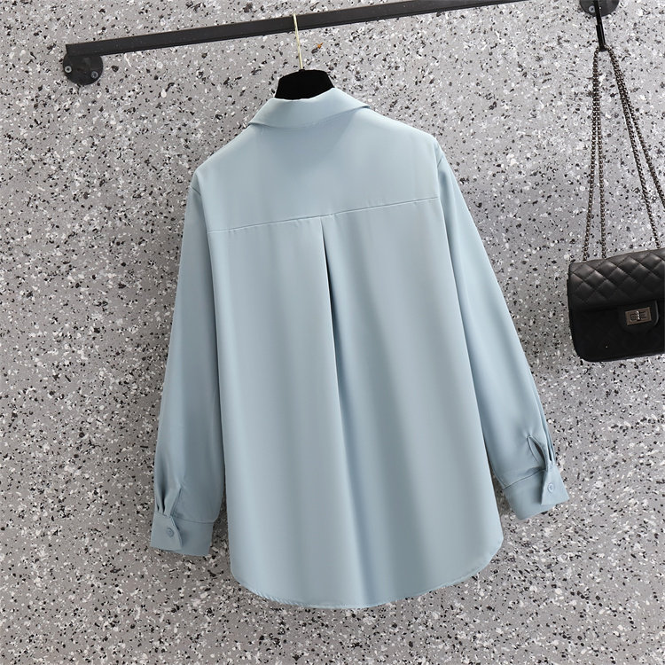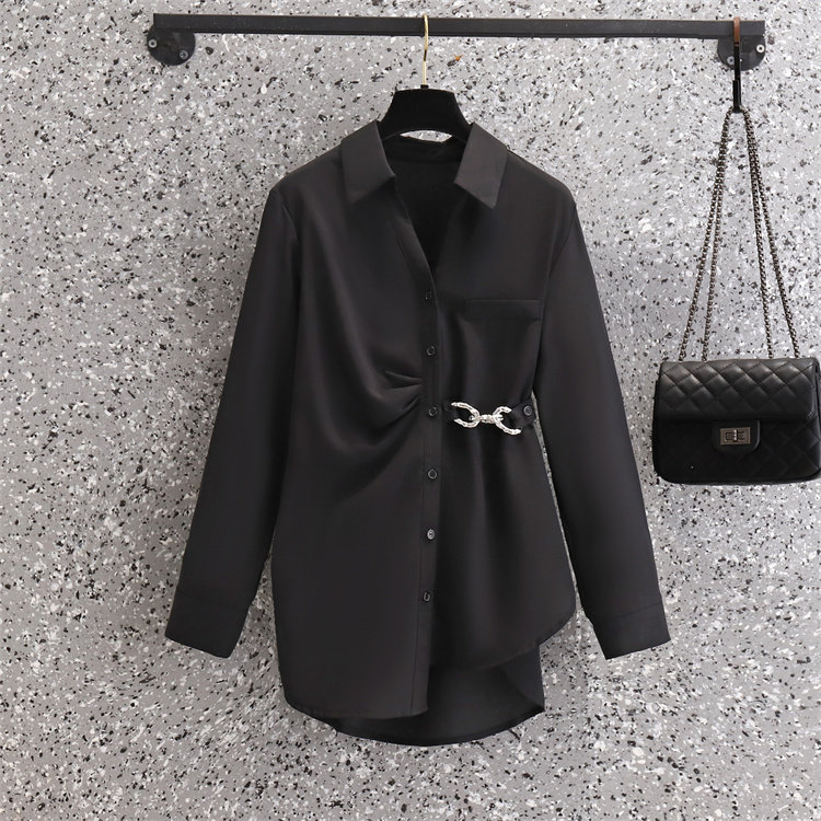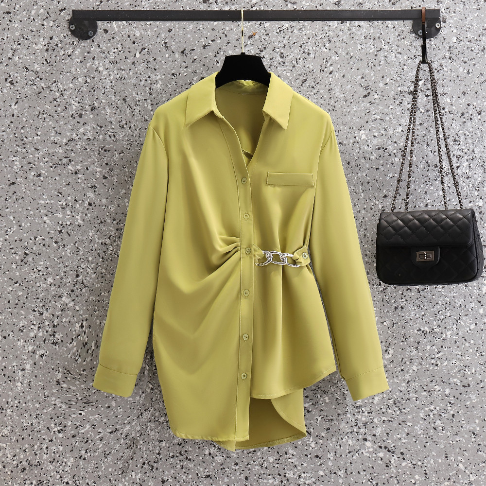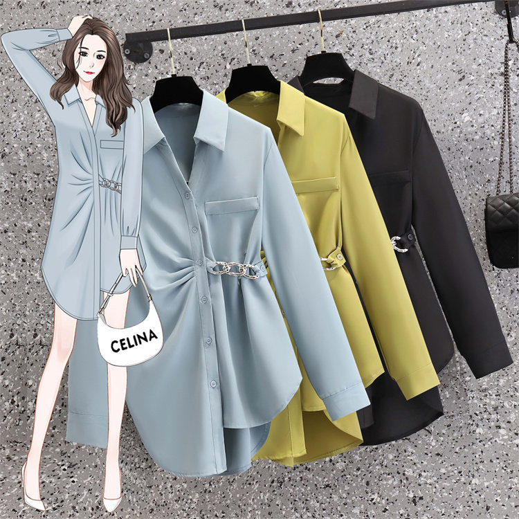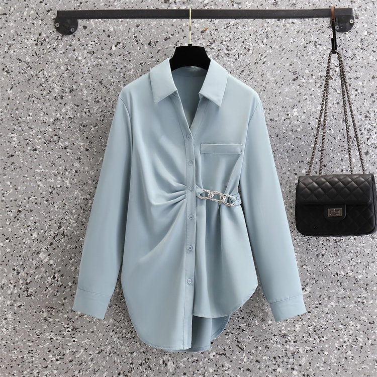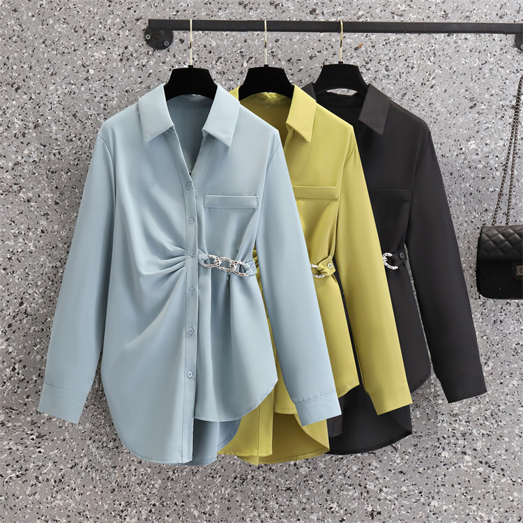 PF5122#大码女装春季新款胖mm时尚洋气减龄长袖收腰链条长袖衬衫女裝貨源服裝批發