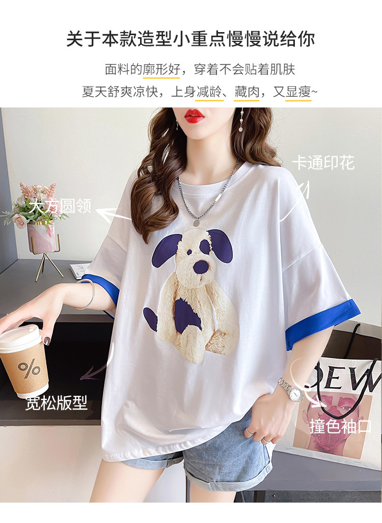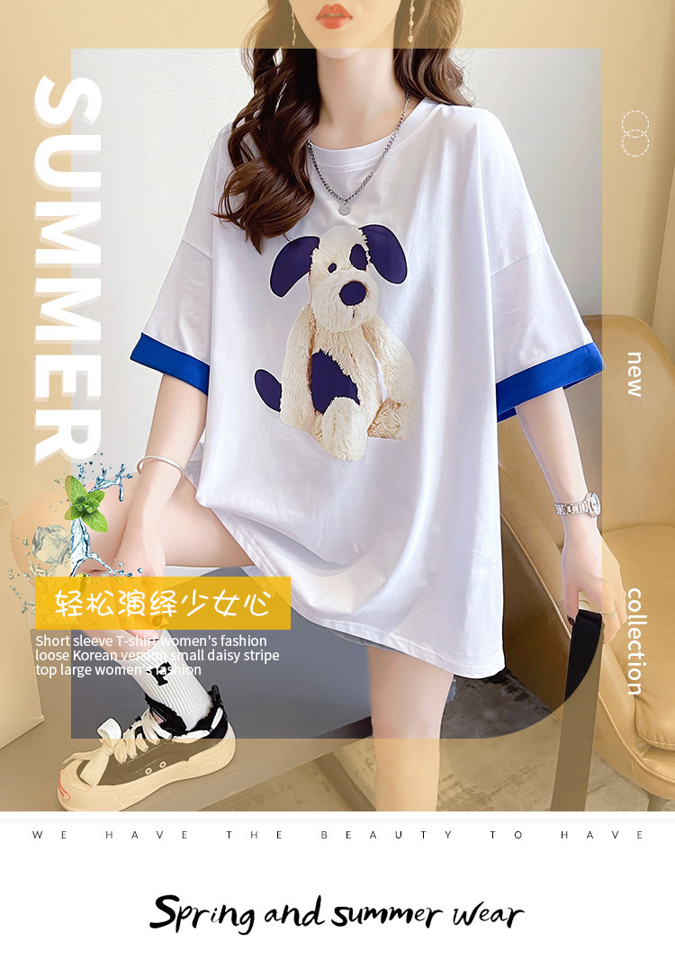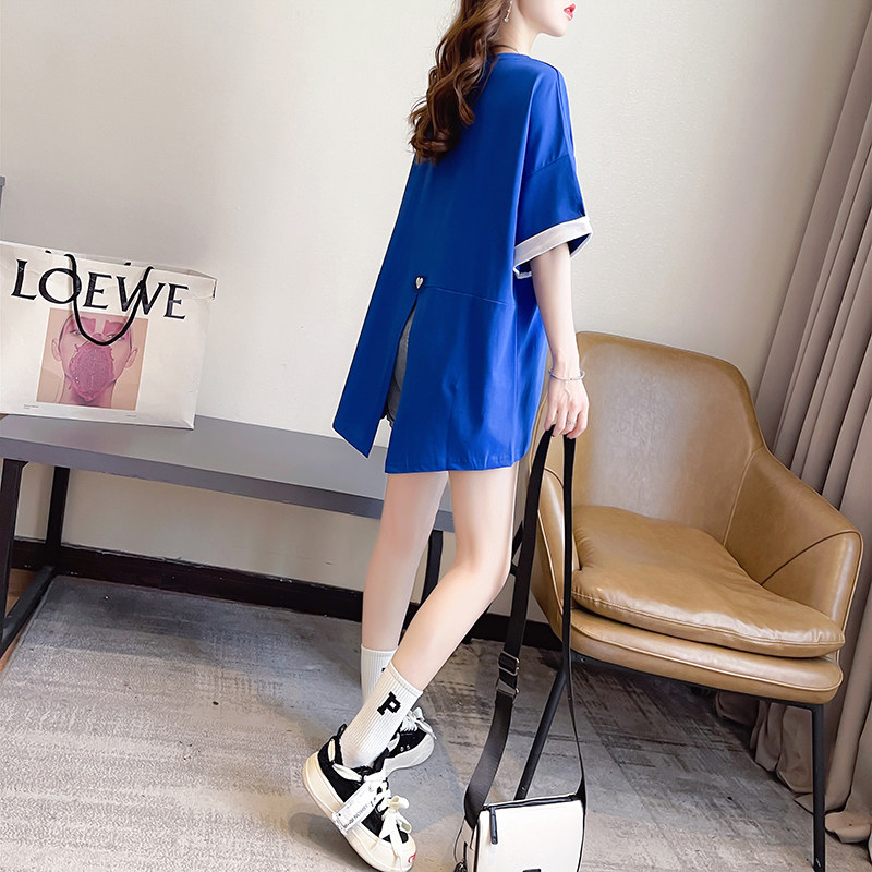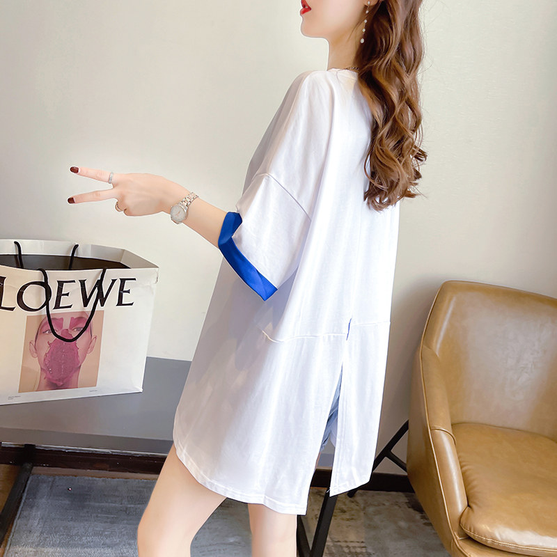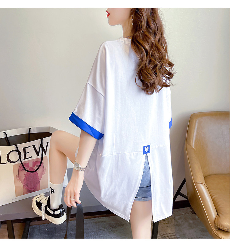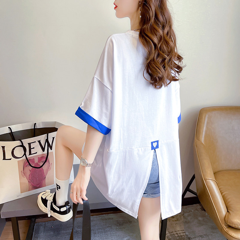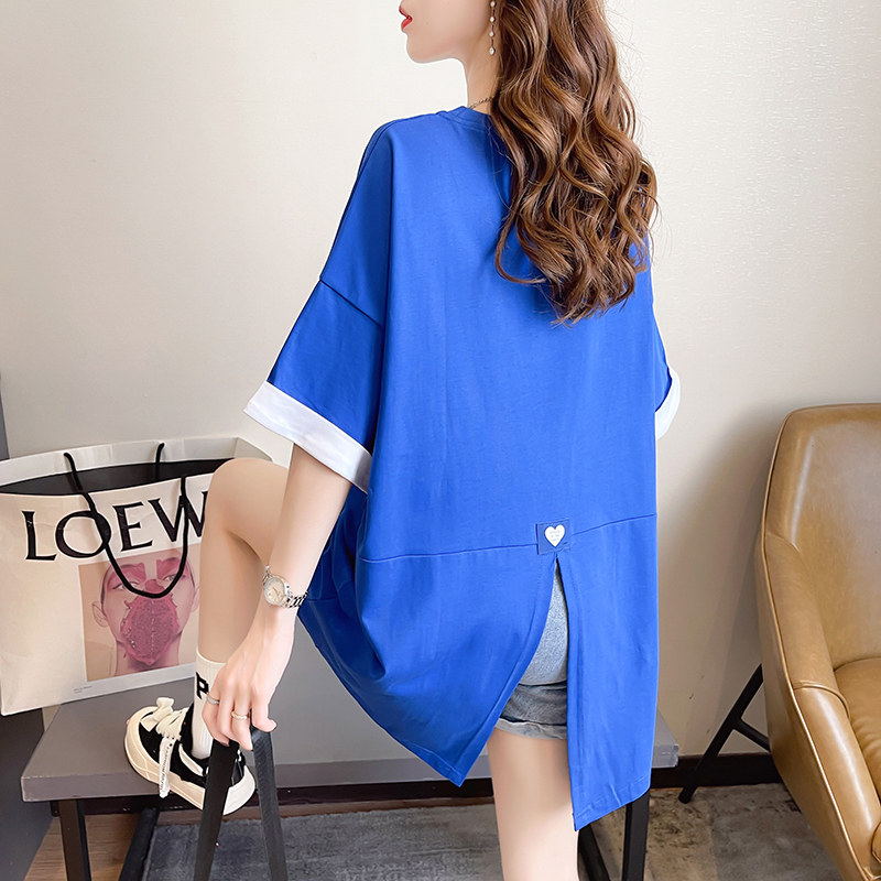 PF7378#纯棉冰爽短袖t恤女夏2024开叉圆领新款上衣大码女装