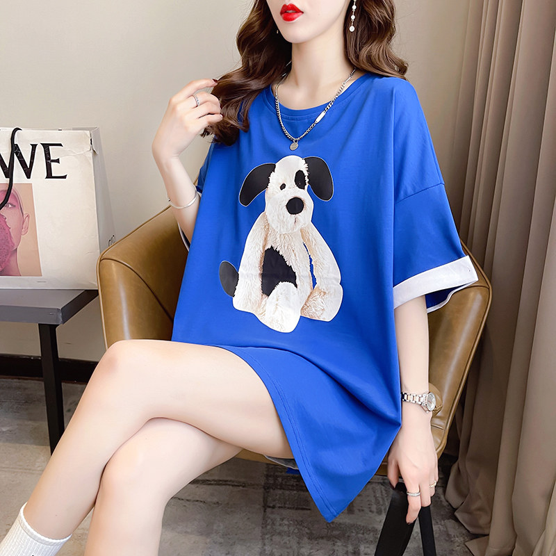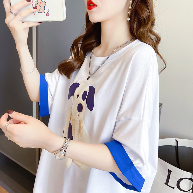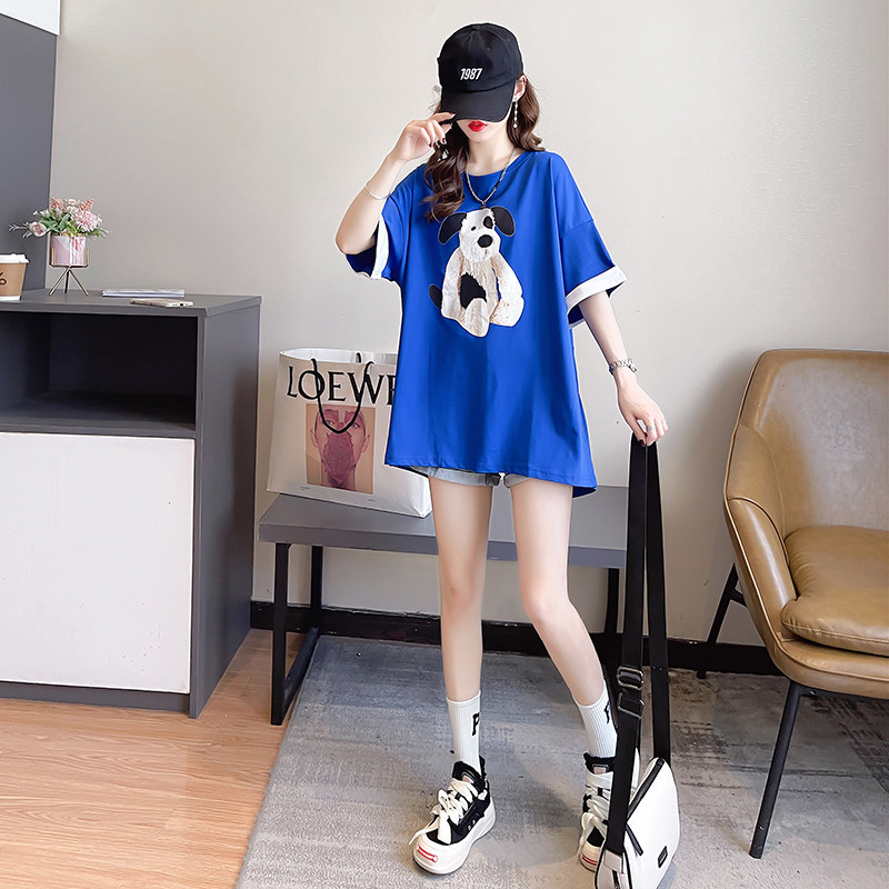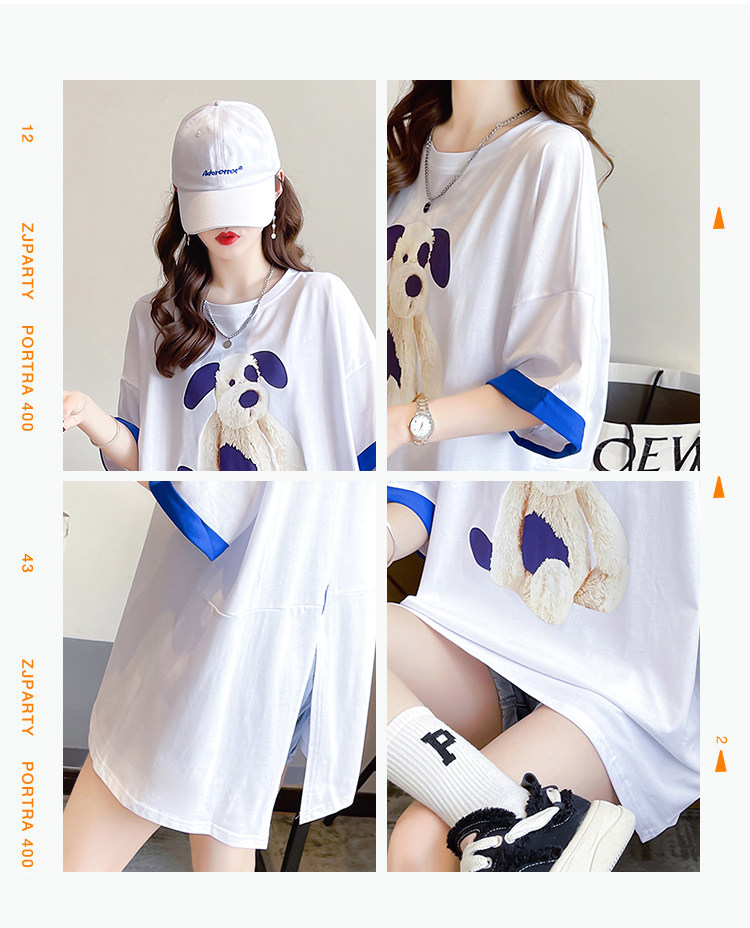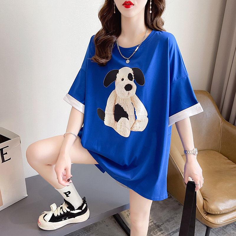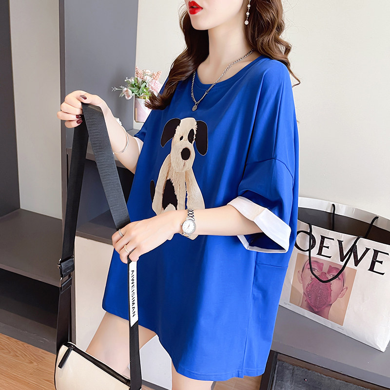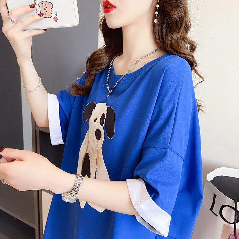 PF7378#纯棉冰爽短袖t恤女夏2024开叉圆领新款上衣大码女装