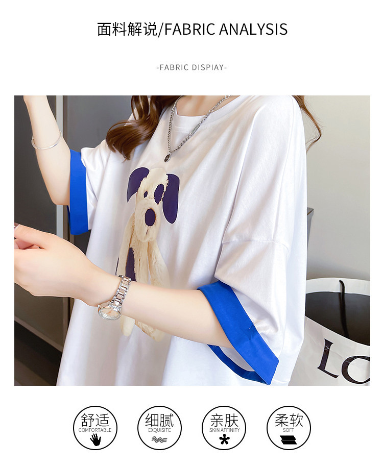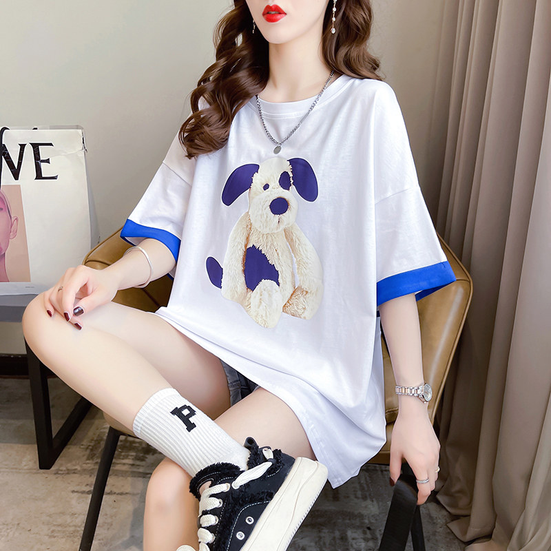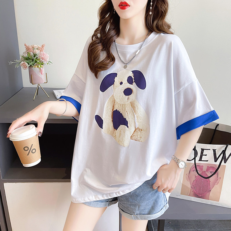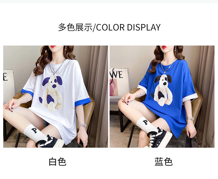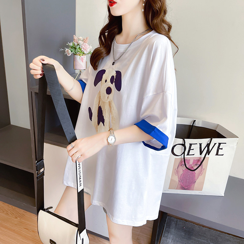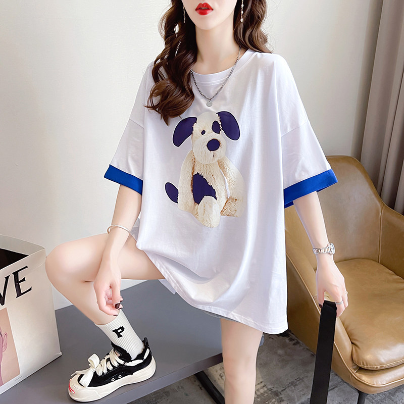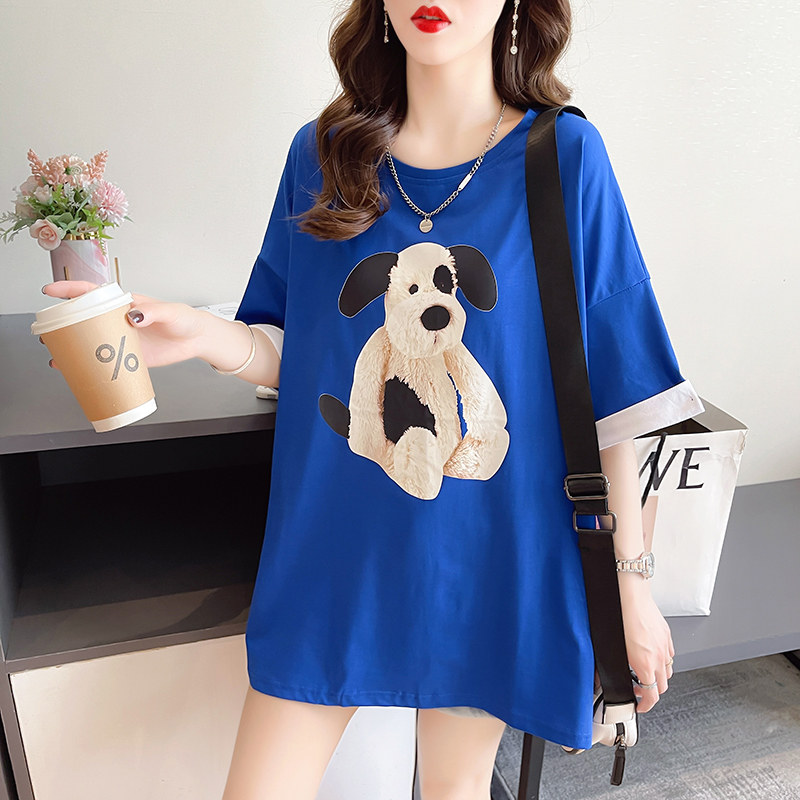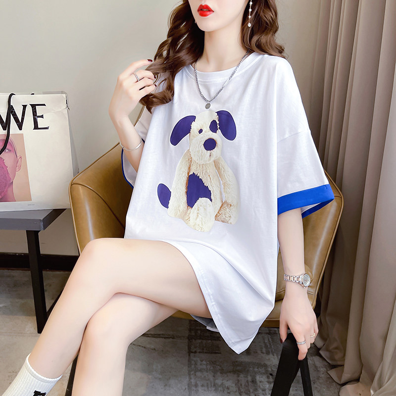 PF7378#纯棉冰爽短袖t恤女夏2024开叉圆领新款上衣大码女装
