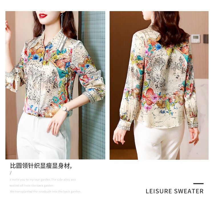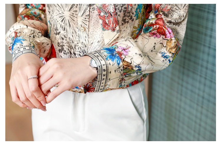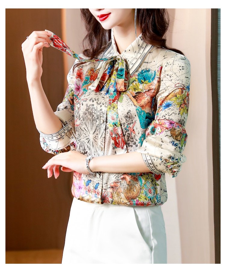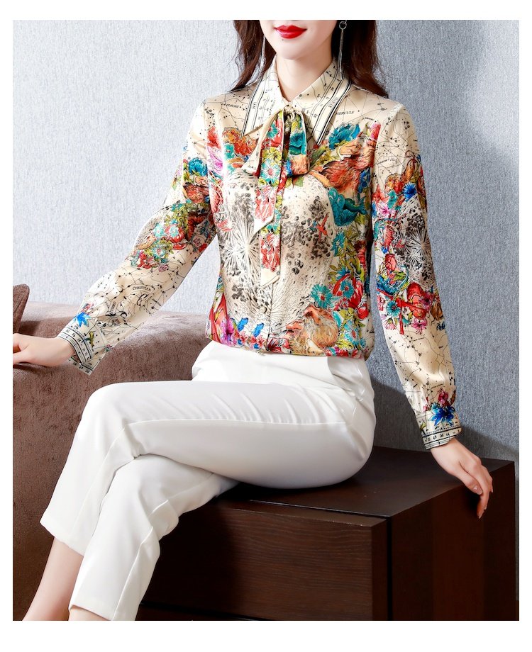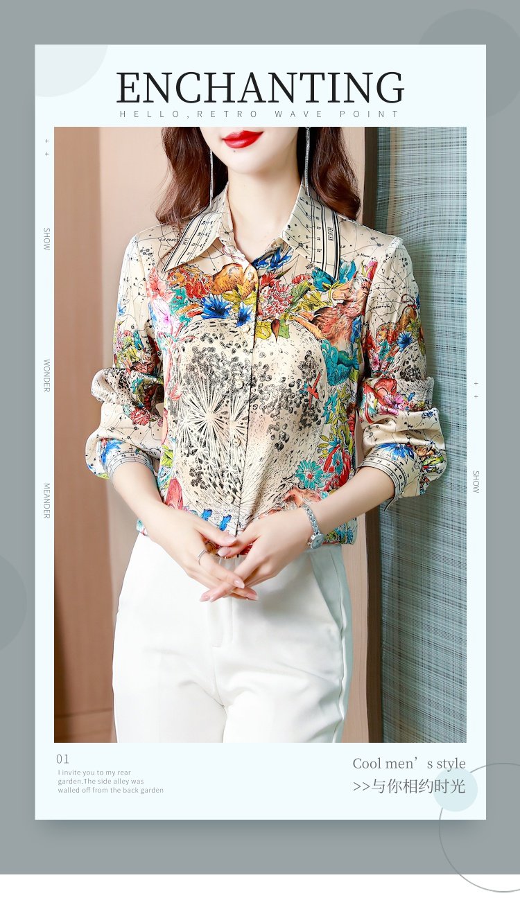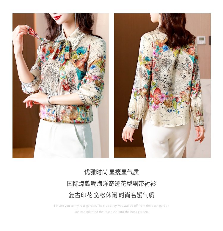 PF7643#新款欧货印花垂感桑蚕丝上衣杭杭州大牌缎面真丝衬衫女长女裝貨源服裝批發