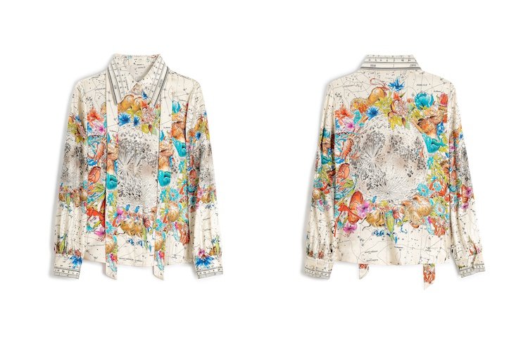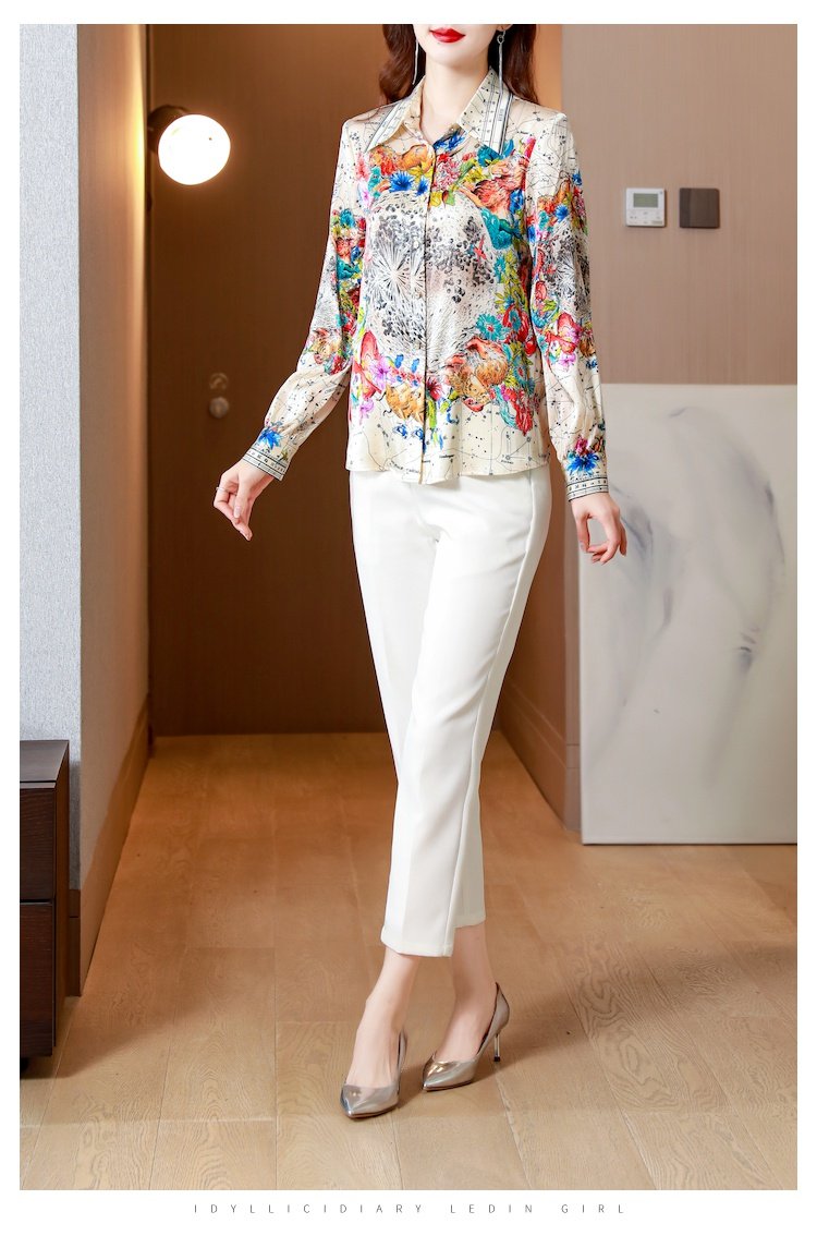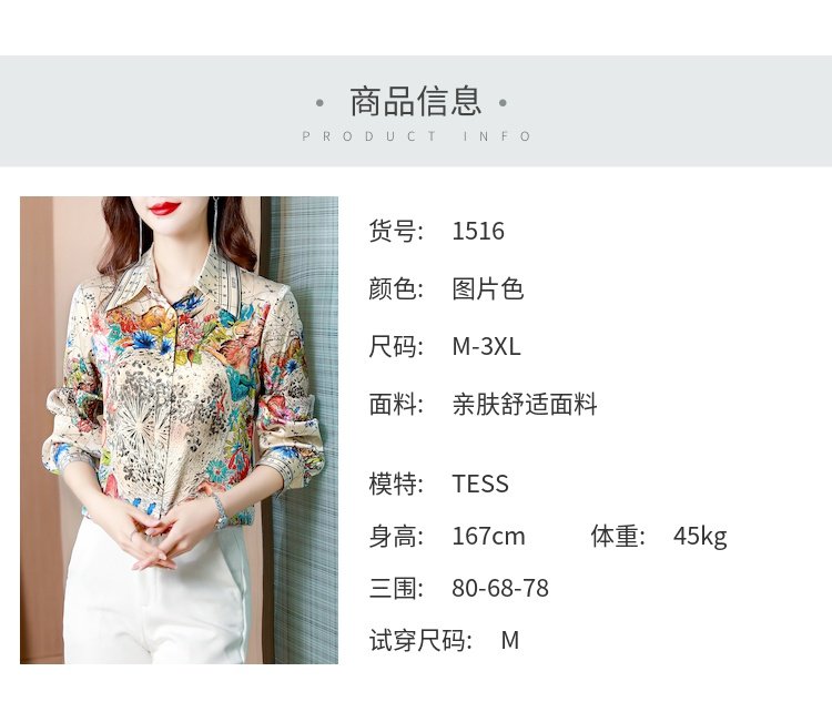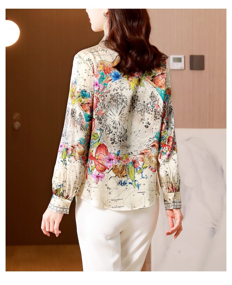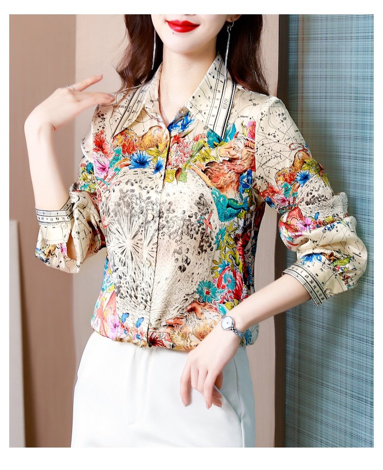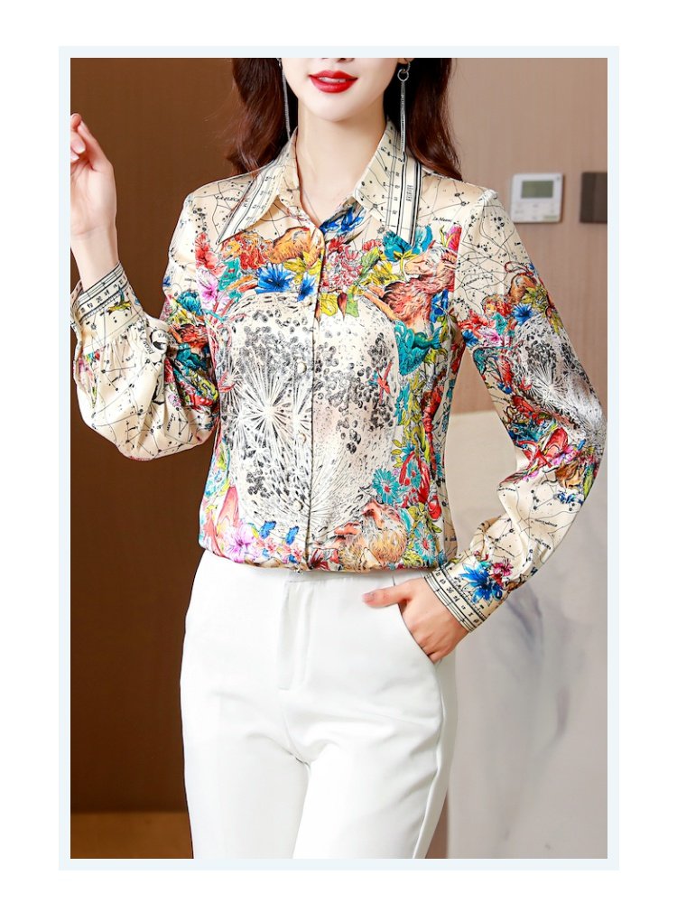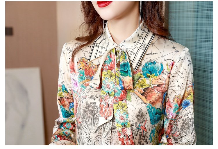 PF7643#新款欧货印花垂感桑蚕丝上衣杭杭州大牌缎面真丝衬衫女长女裝貨源服裝批發