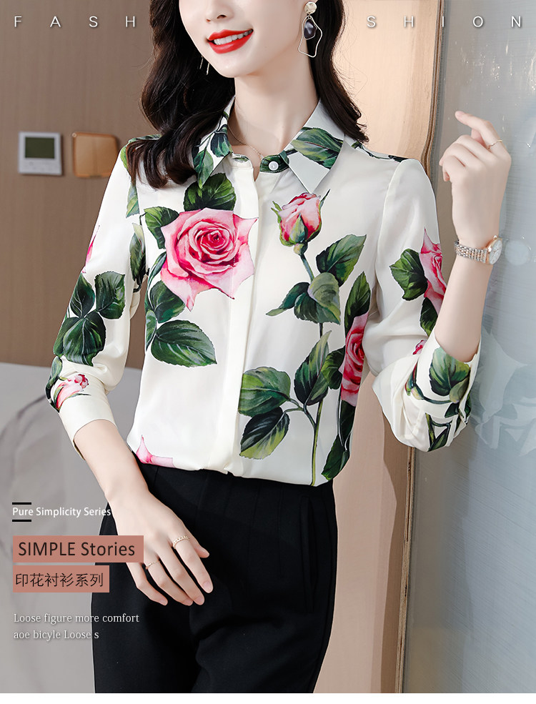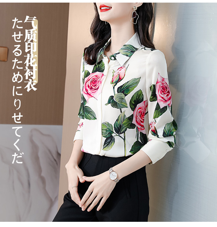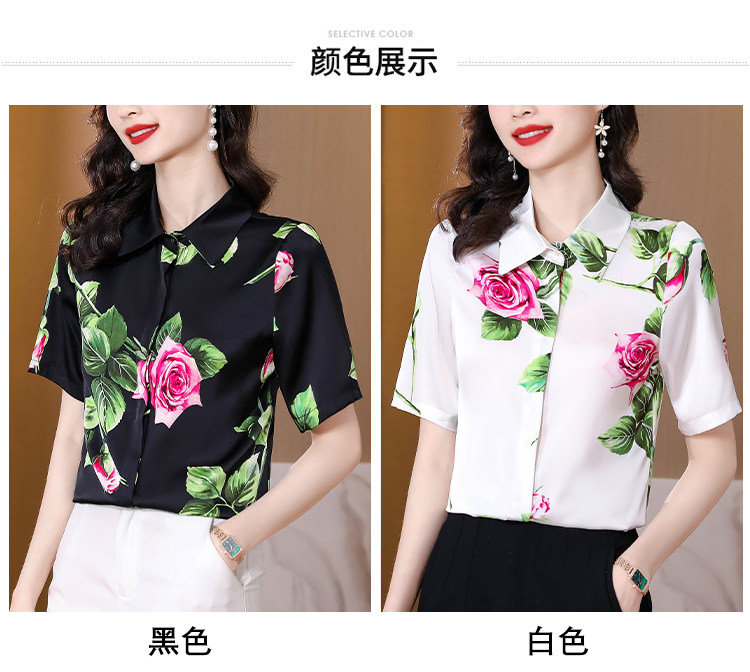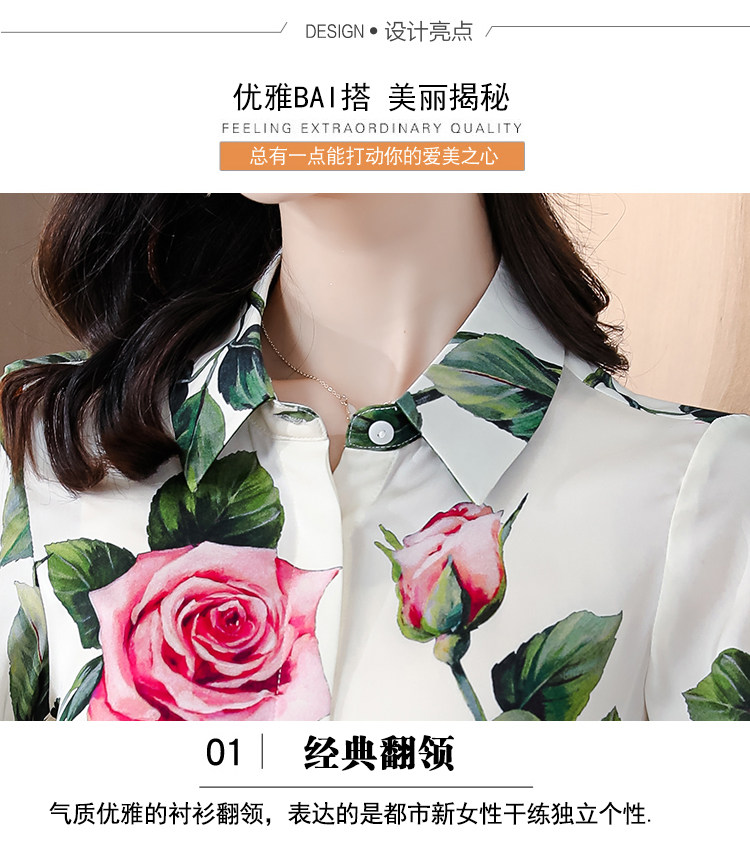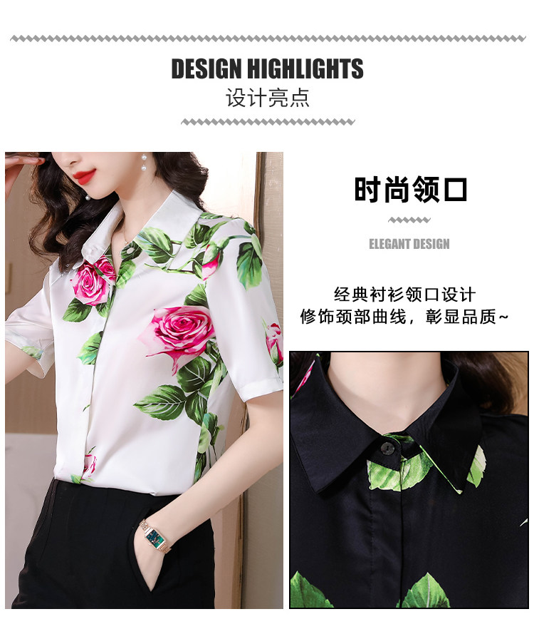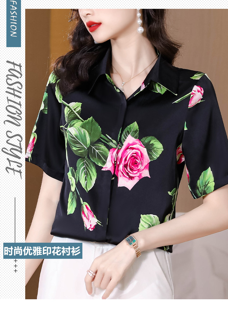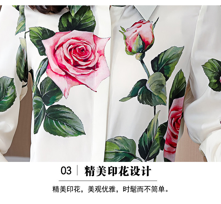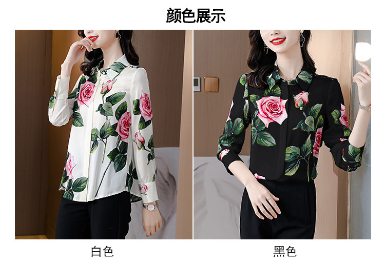 PF7646#重磅仿真丝衬衫 夏季新款高端大牌衬衣玫瑰印花上衣女裝貨源服裝批發