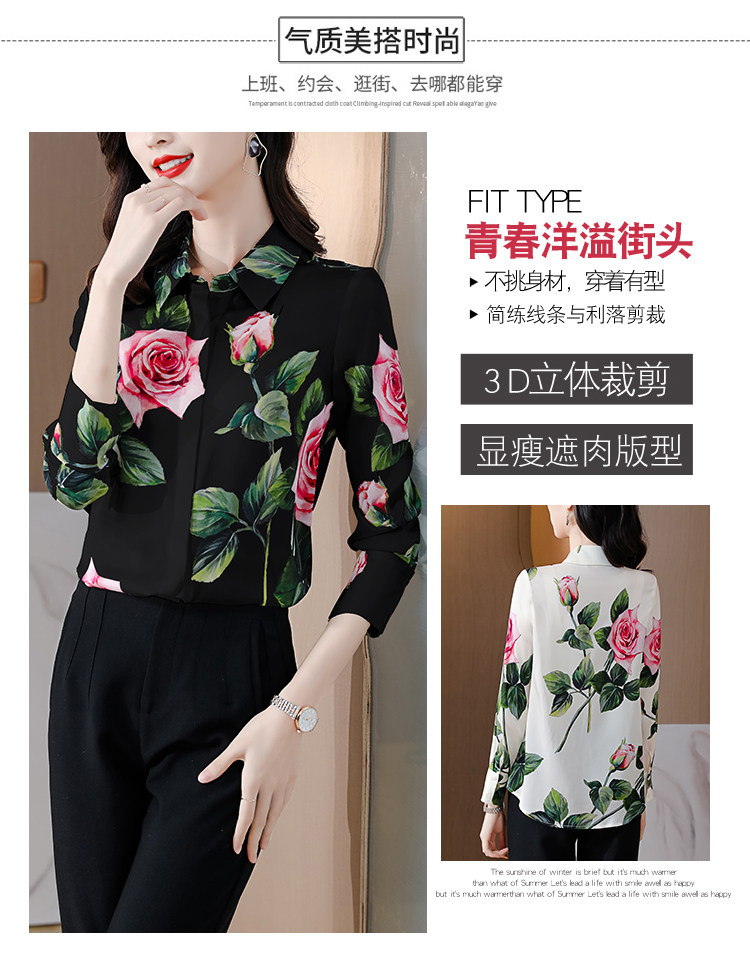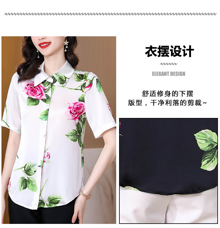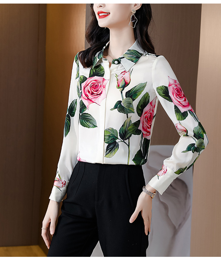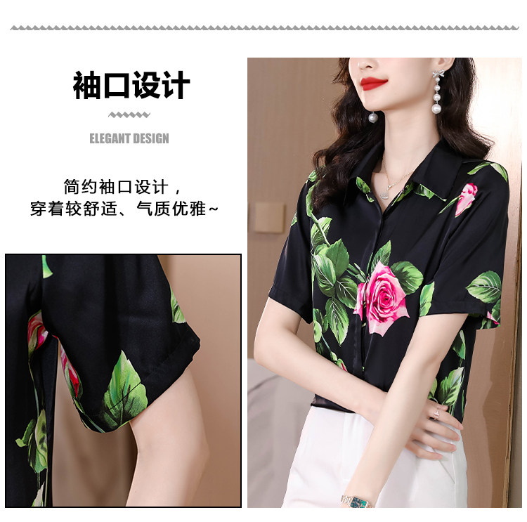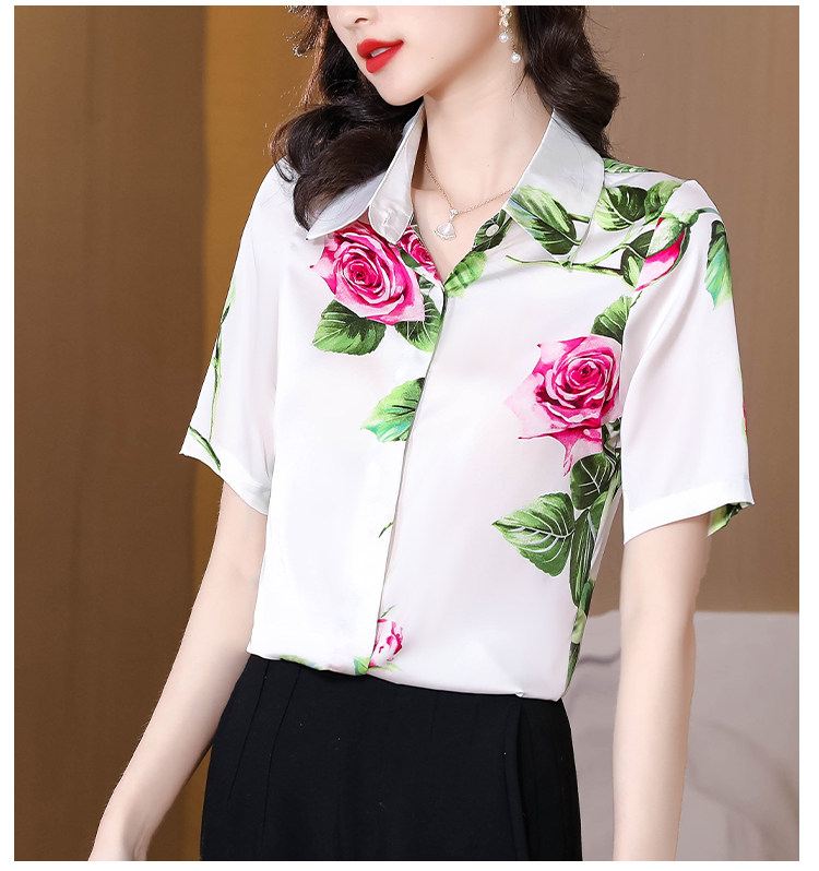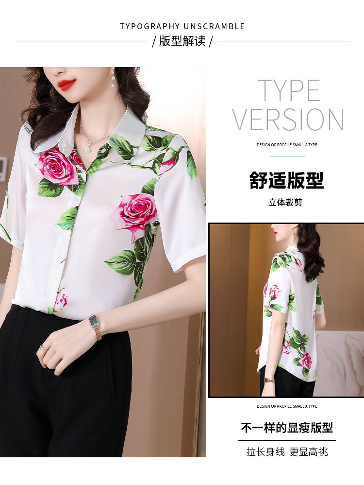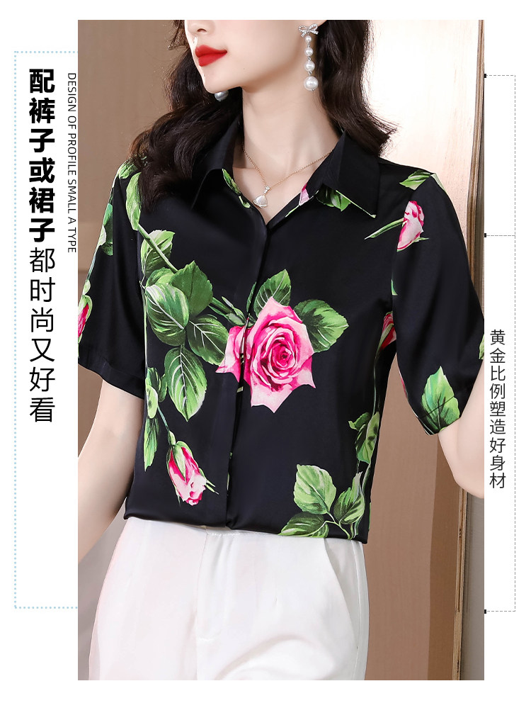PF7646#重磅仿真丝衬衫 夏季新款高端大牌衬衣玫瑰印花上衣女裝貨源服裝批發