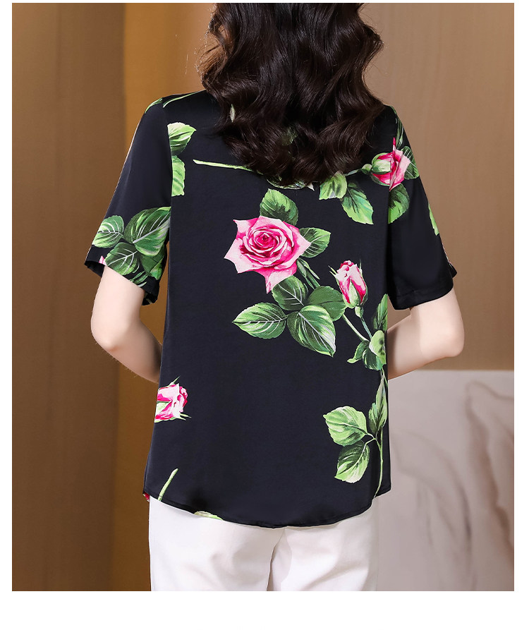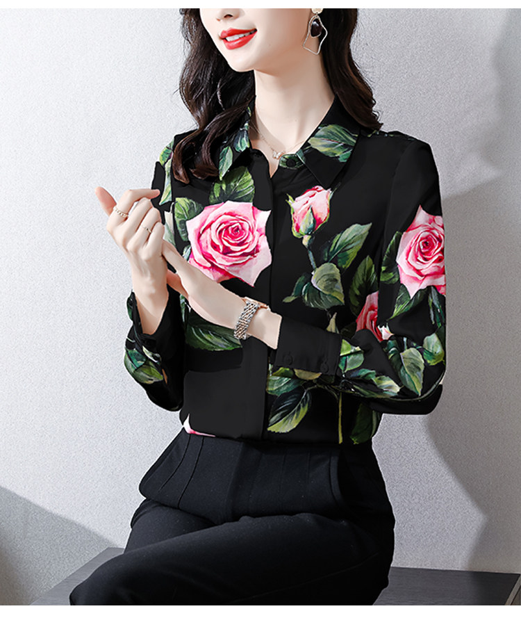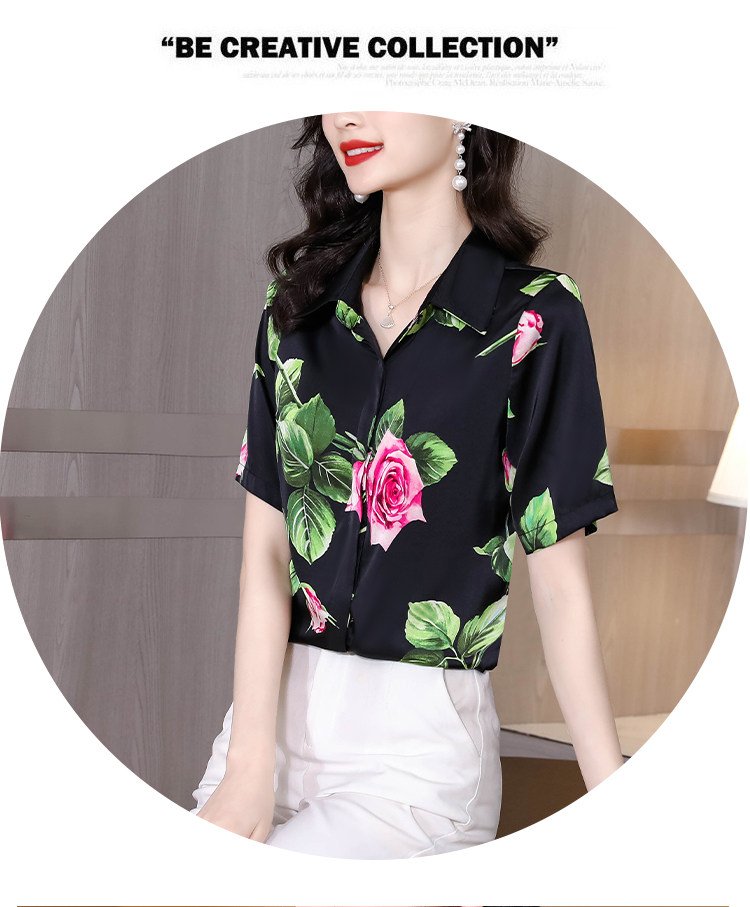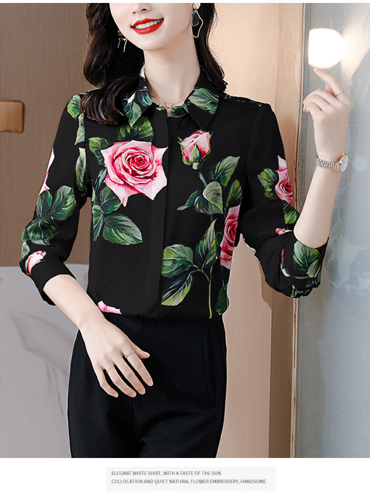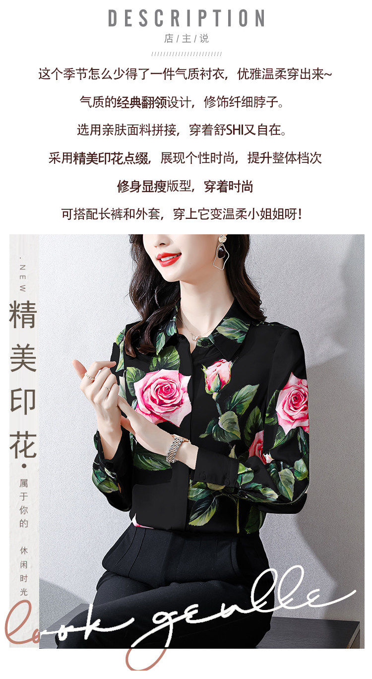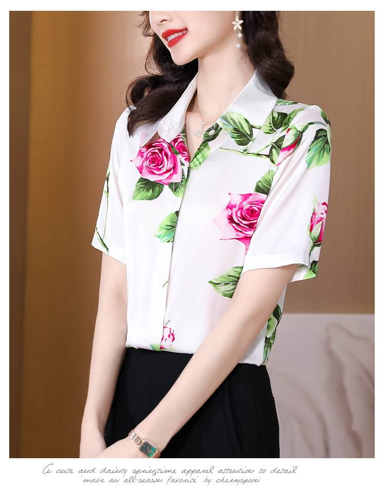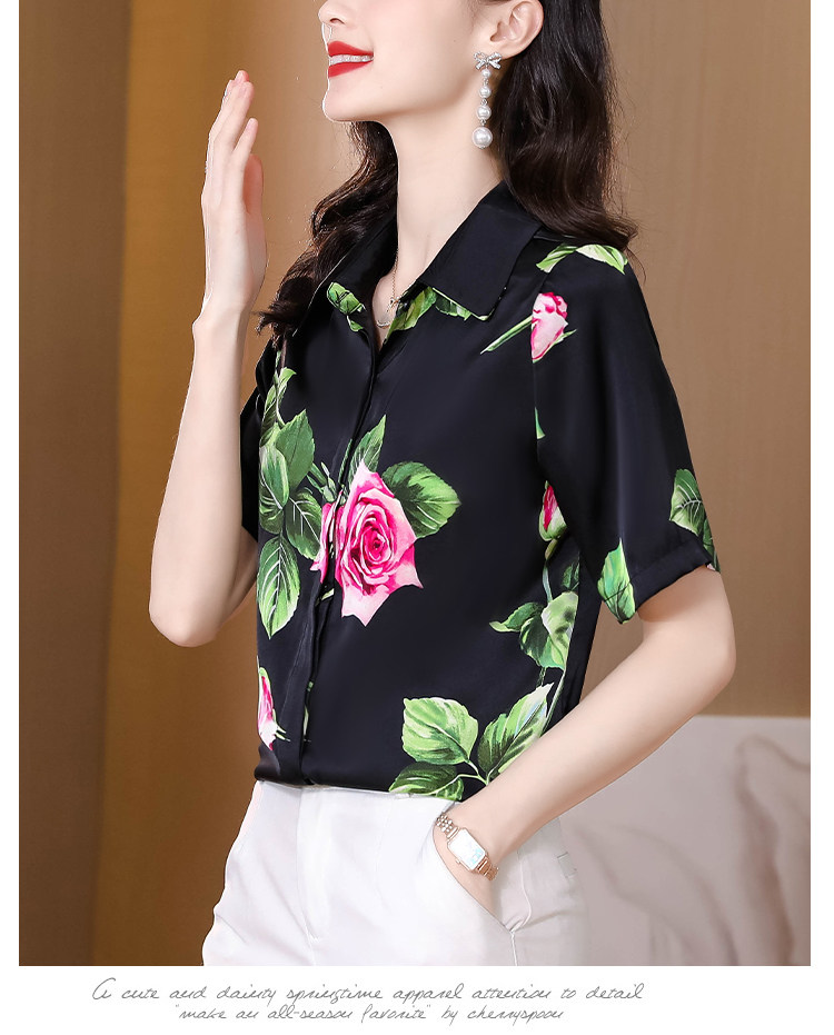 PF7646#重磅仿真丝衬衫 夏季新款高端大牌衬衣玫瑰印花上衣女裝貨源服裝批發