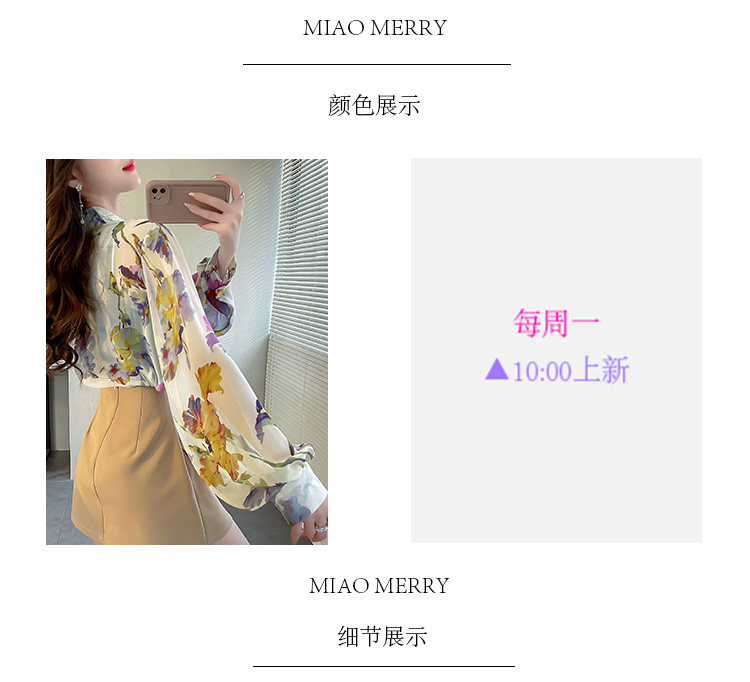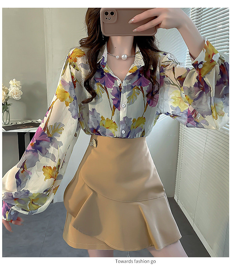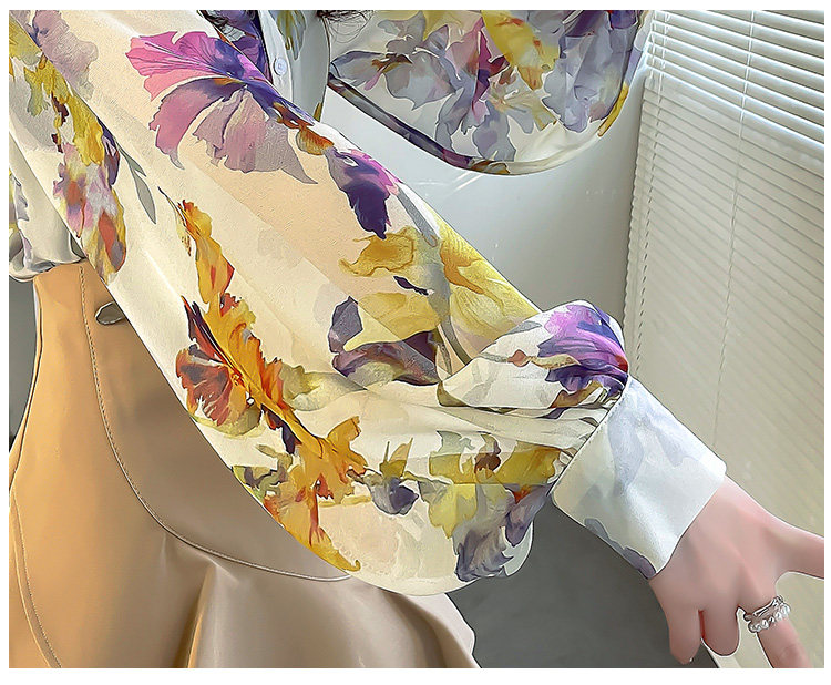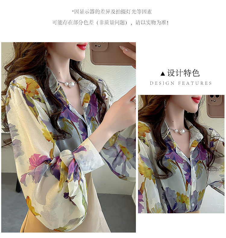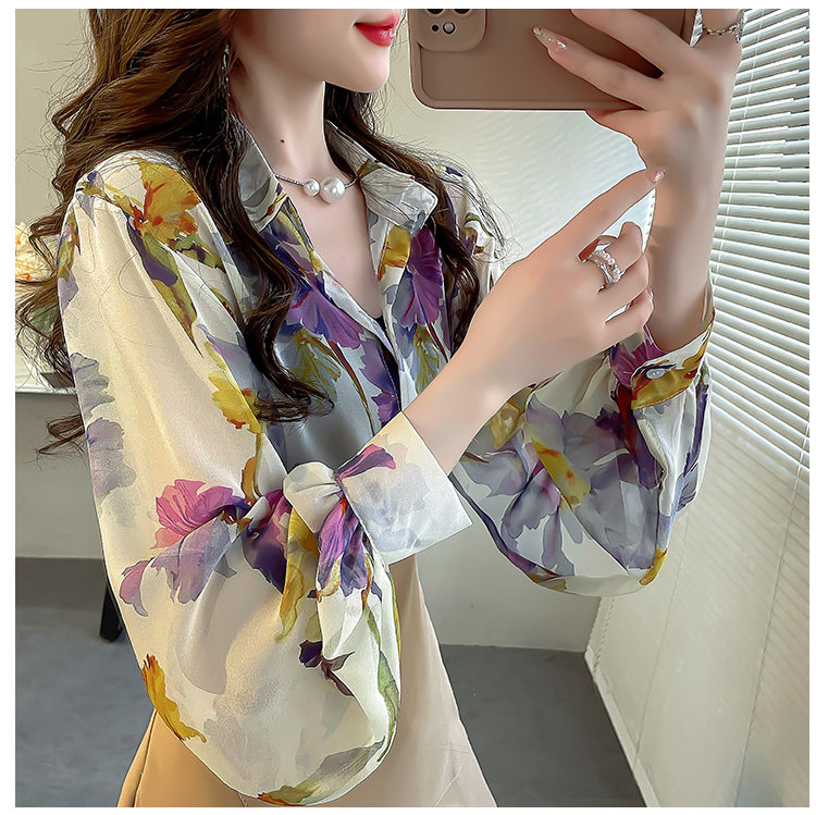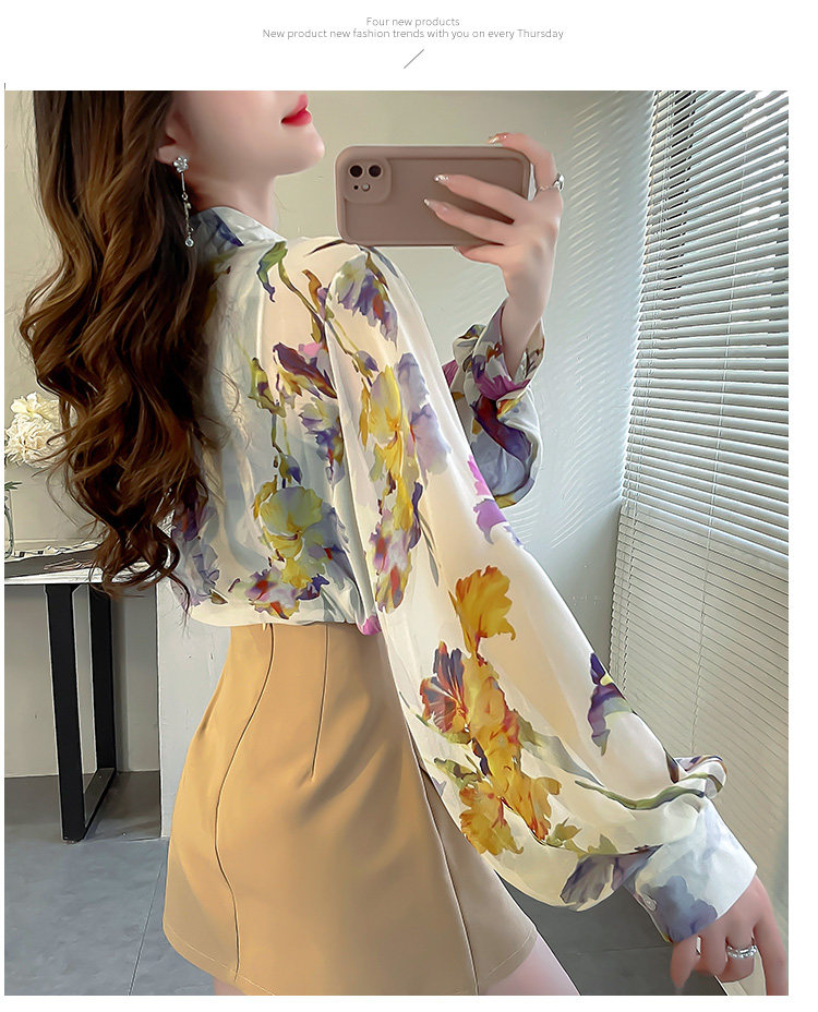 PF7857#别致印花衬衣今年流行漂亮小衫时尚气质雪纺宽松灯笼袖衬衫女上衣女裝貨源服裝批發