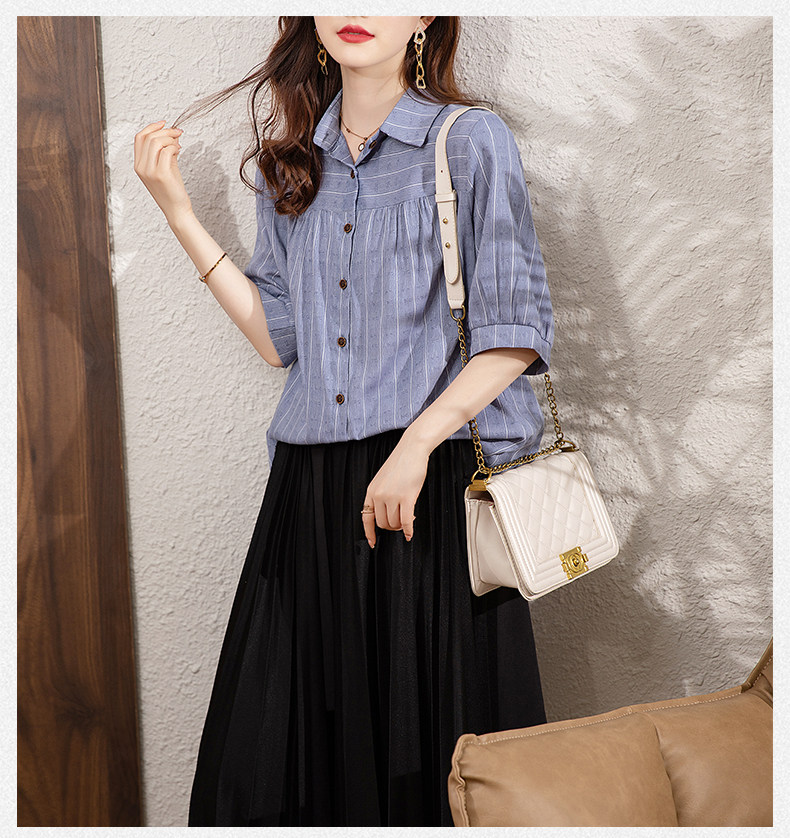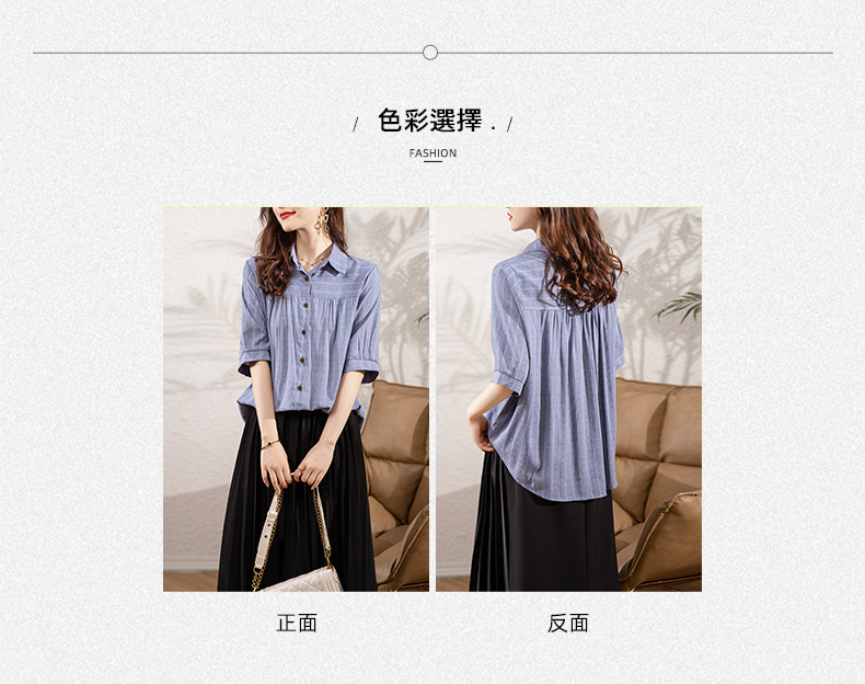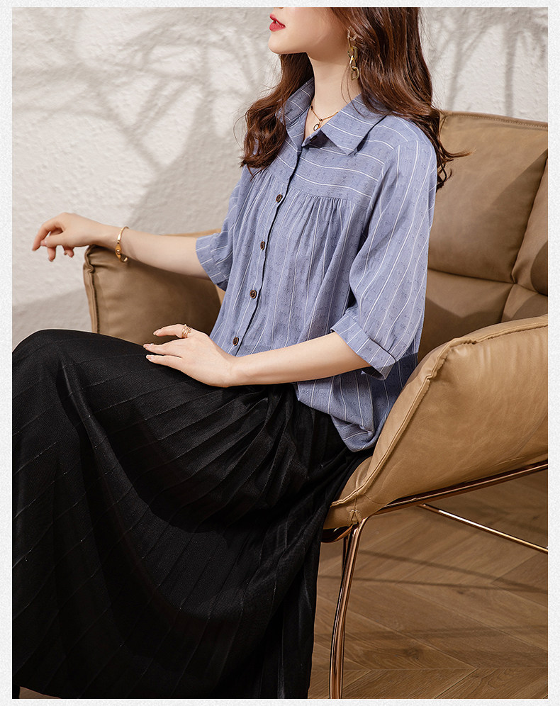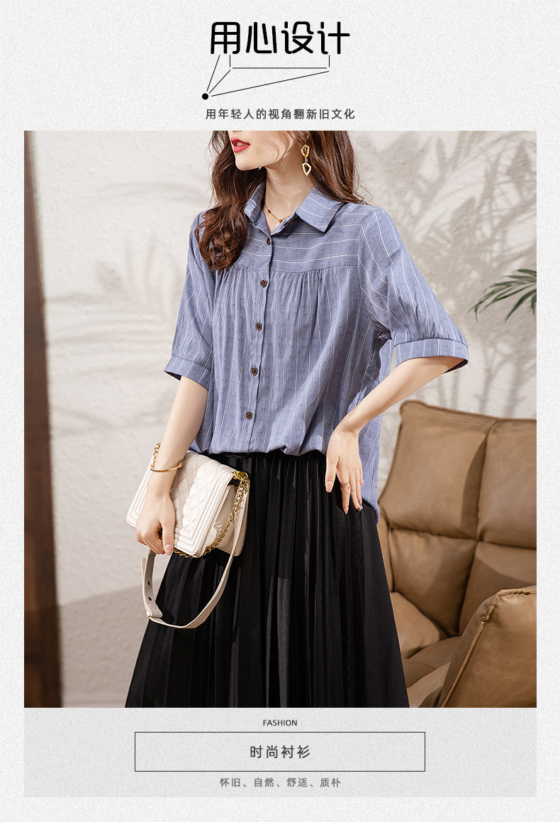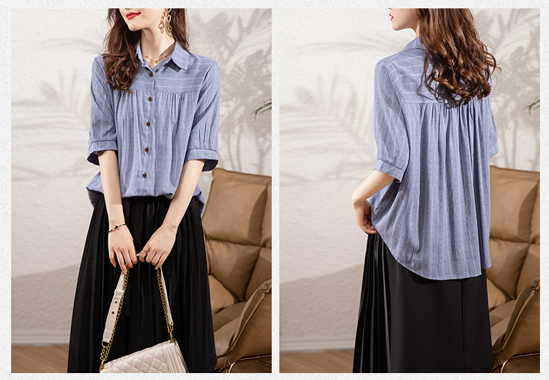 BY145#夏季新款条纹休闲宽松显瘦大码中袖衬衣女