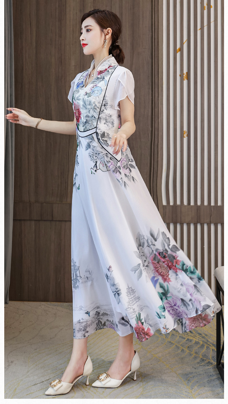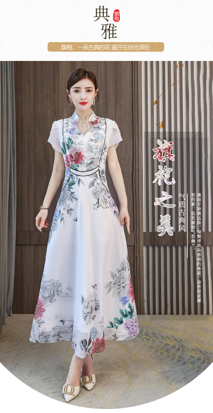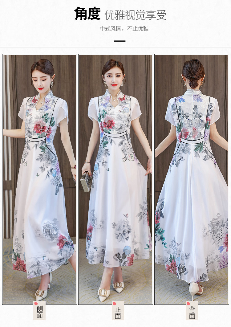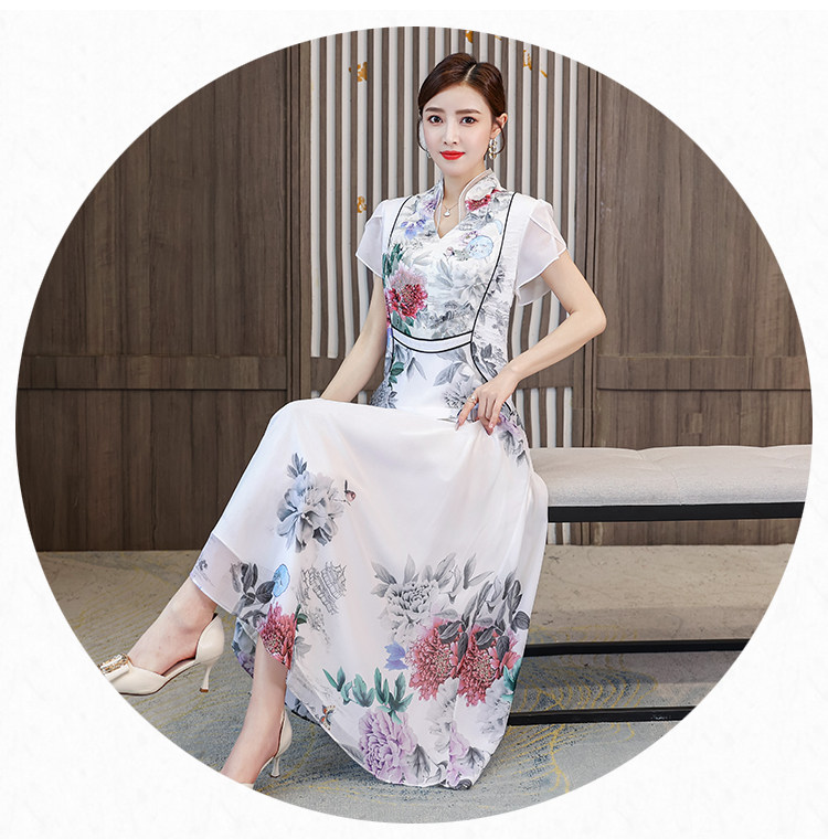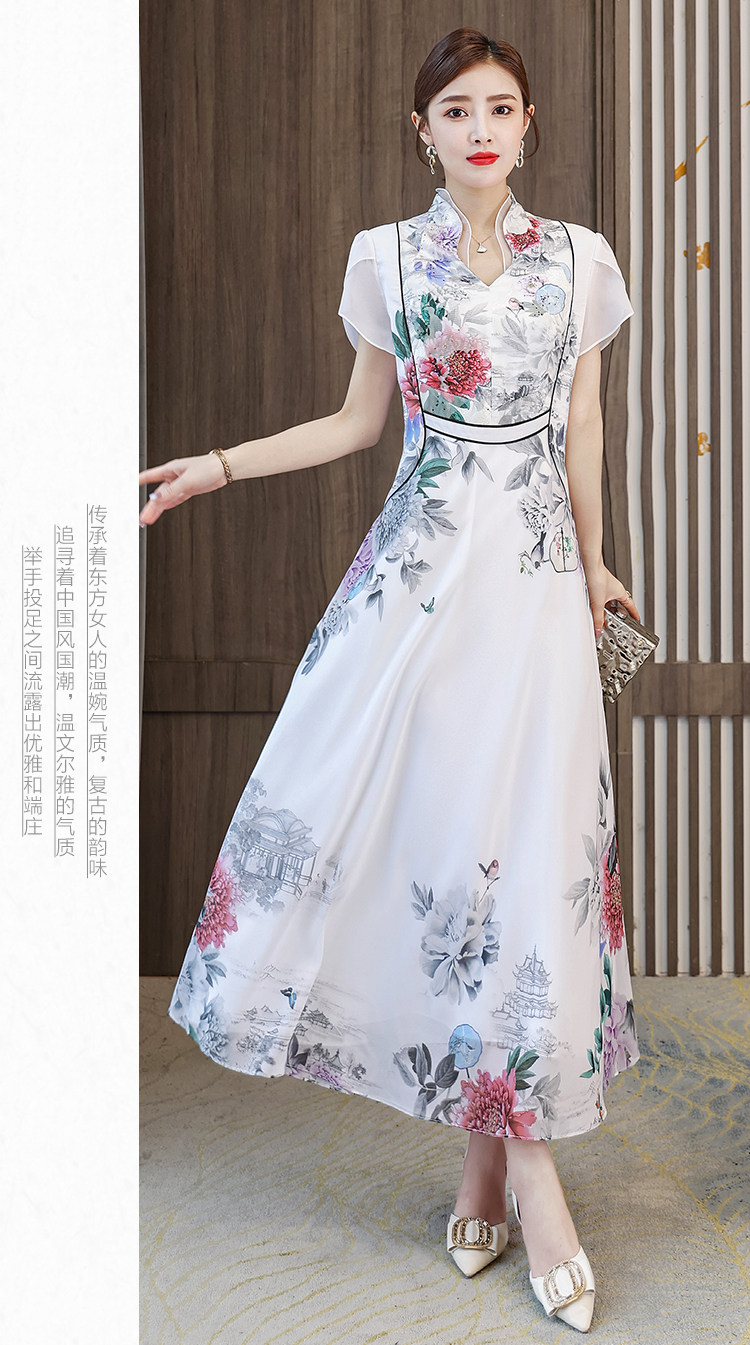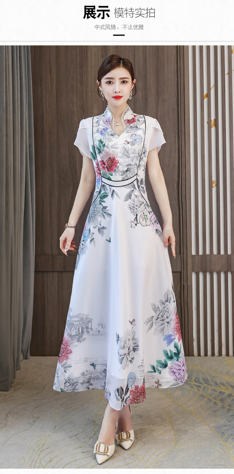 PF11592#夏季新品民族风改良旗袍连衣裙立领短袖印花长连衣裙仙女裙女裝貨源服裝批發