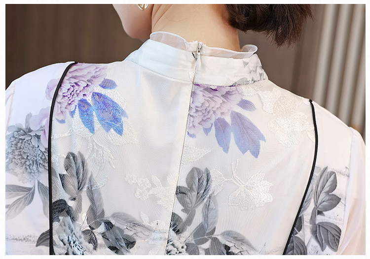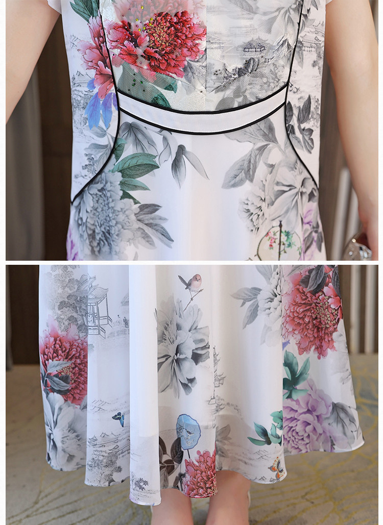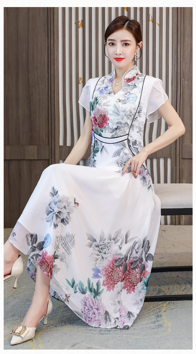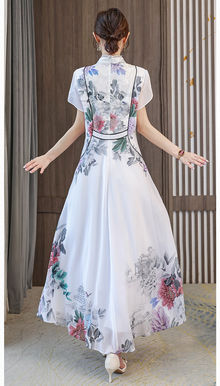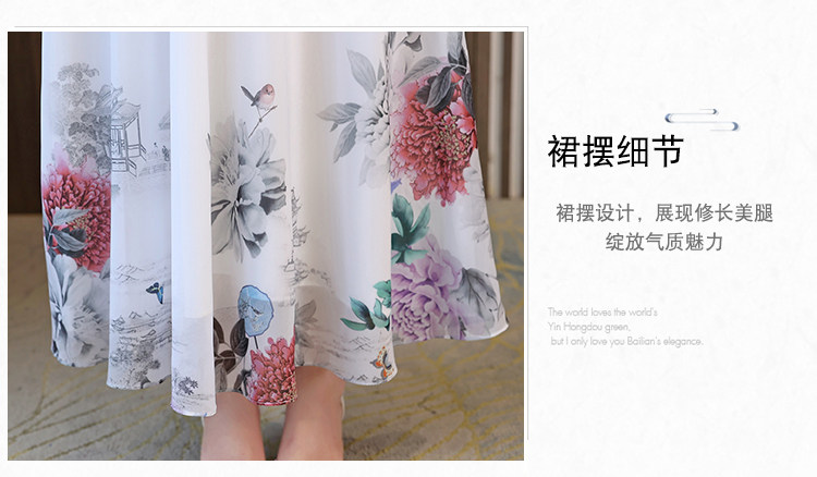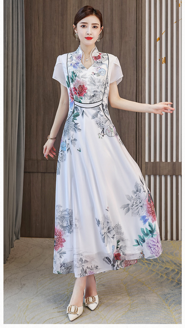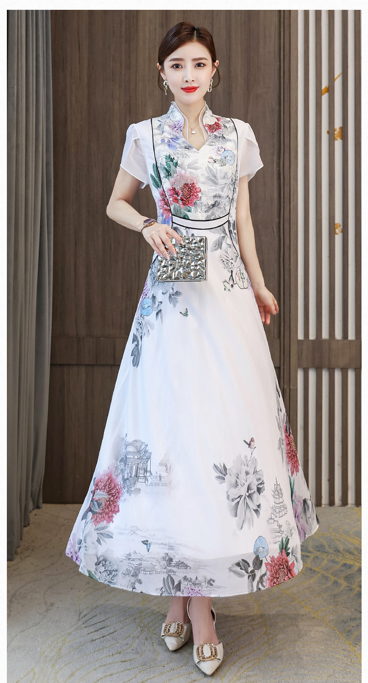 PF11592#夏季新品民族风改良旗袍连衣裙立领短袖印花长连衣裙仙女裙女裝貨源服裝批發