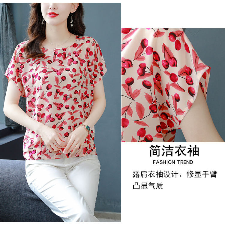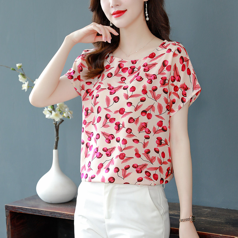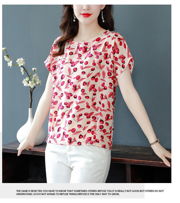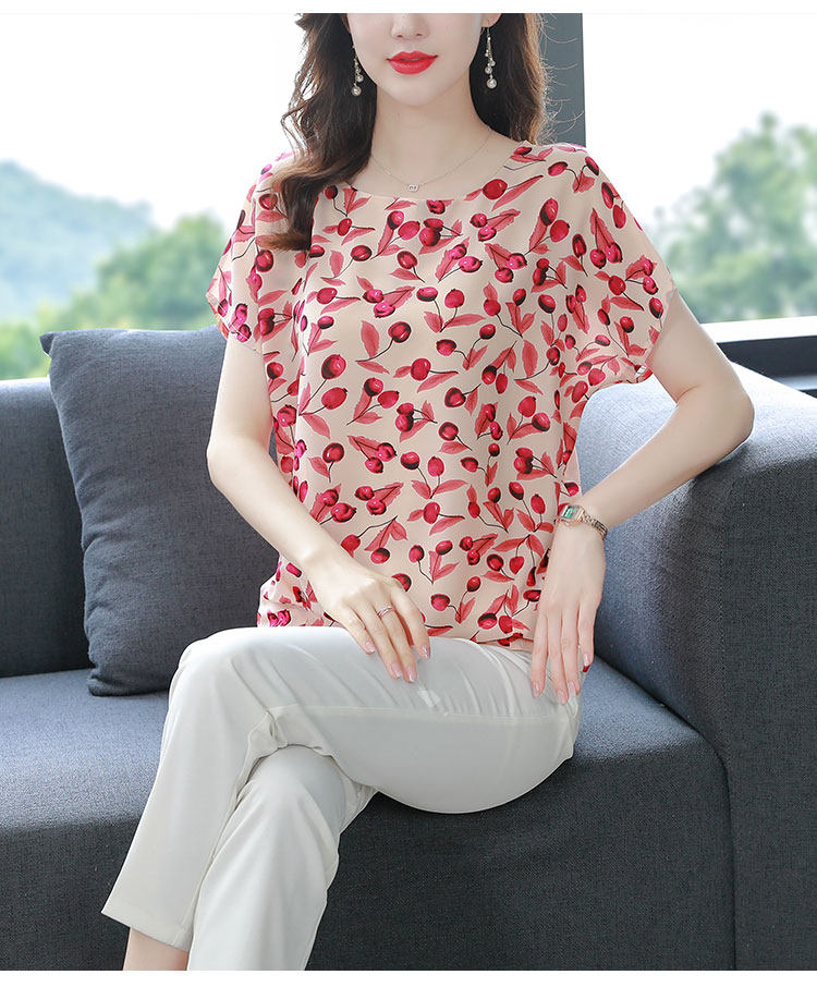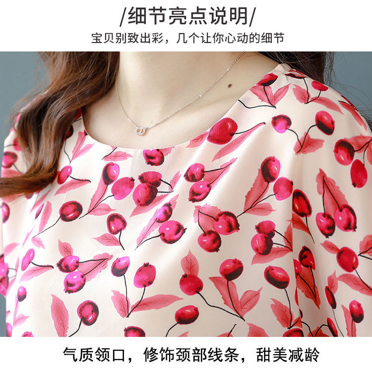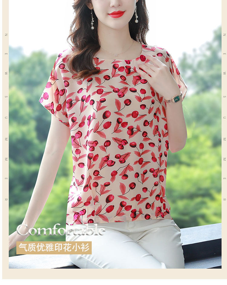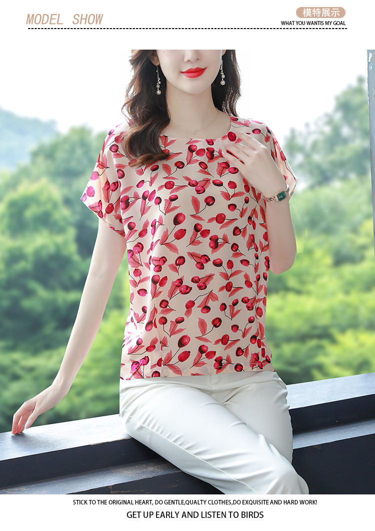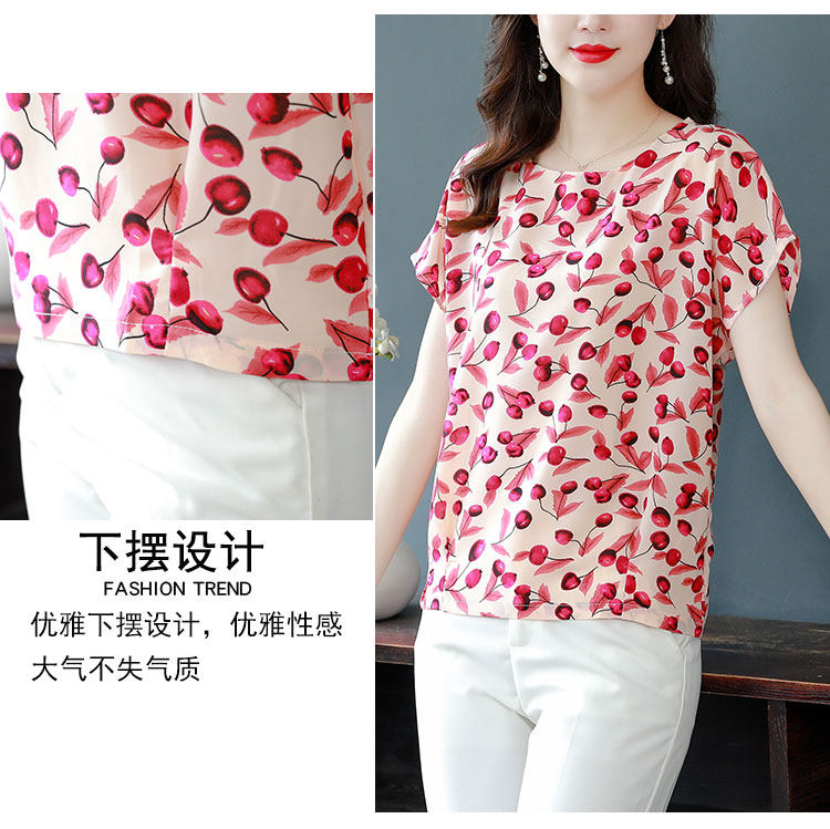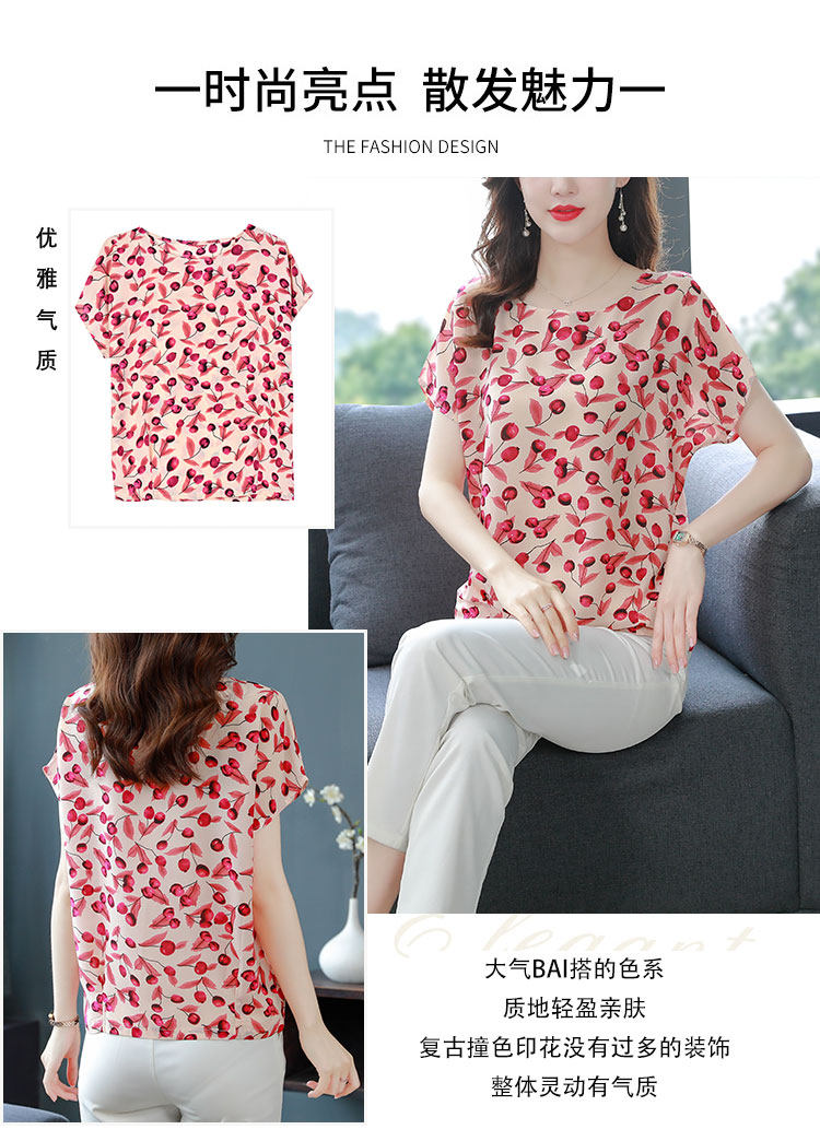 PF12100# 2024夏季洋气印花雪纺T恤大码短袖薄款上衣女时尚衬衣雪纺衫女女裝貨源服裝批發