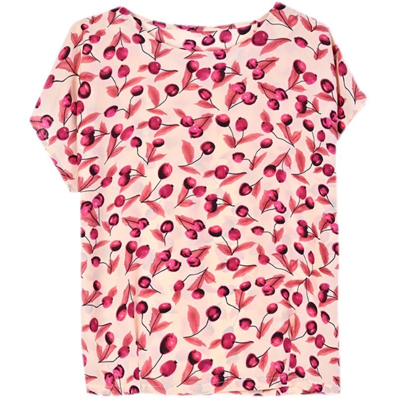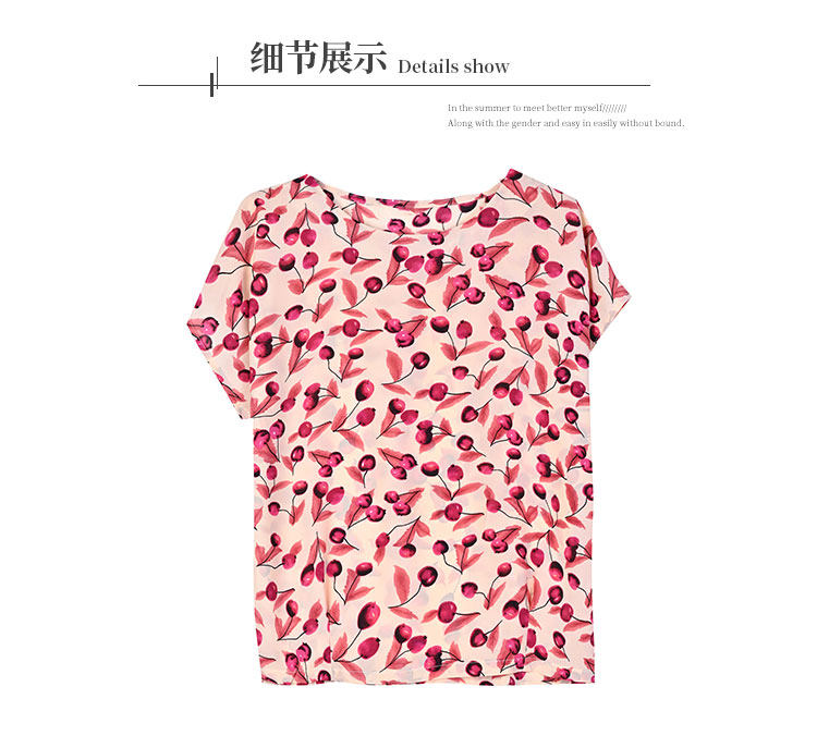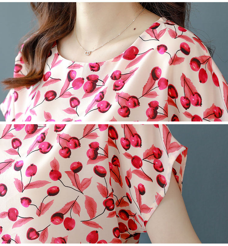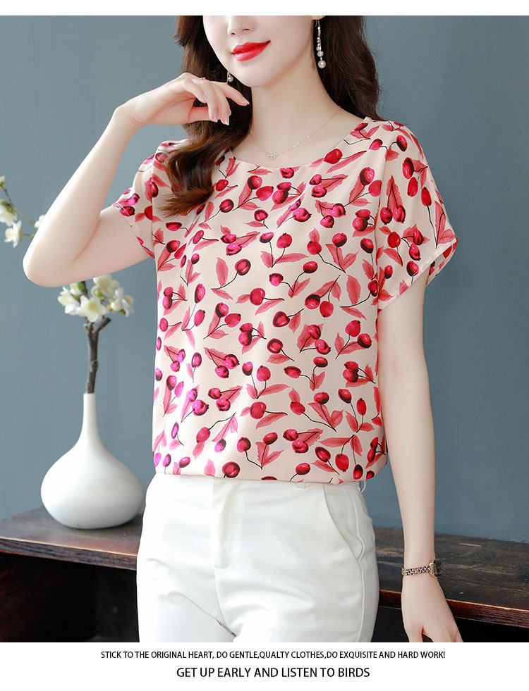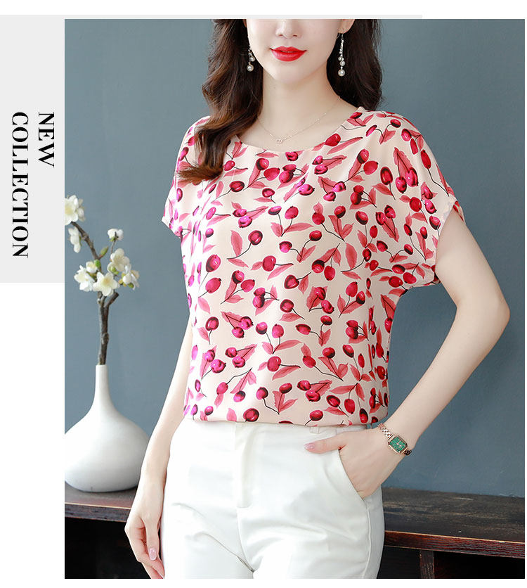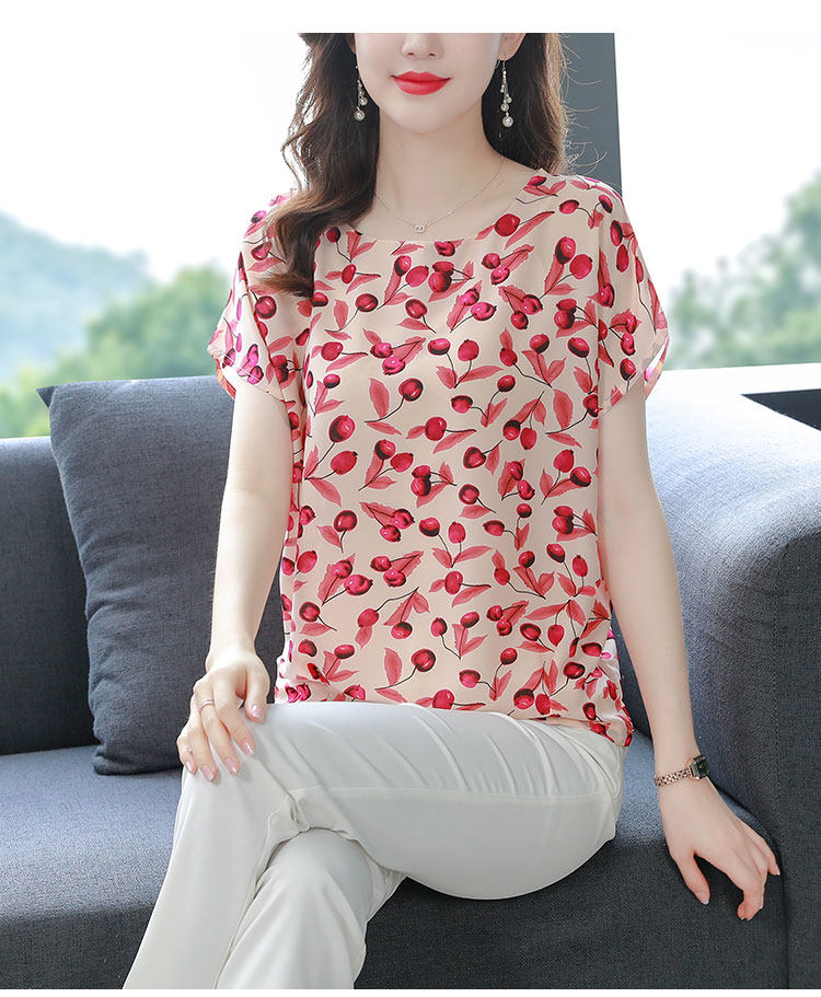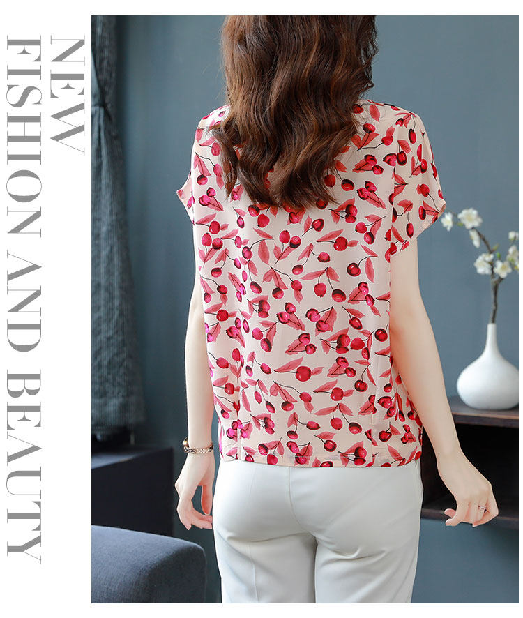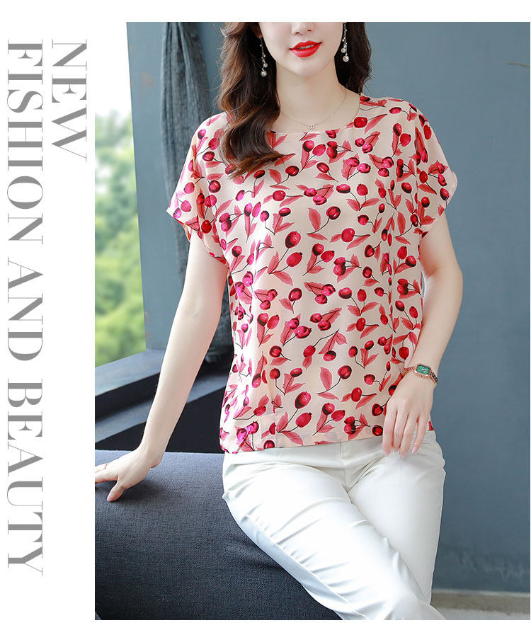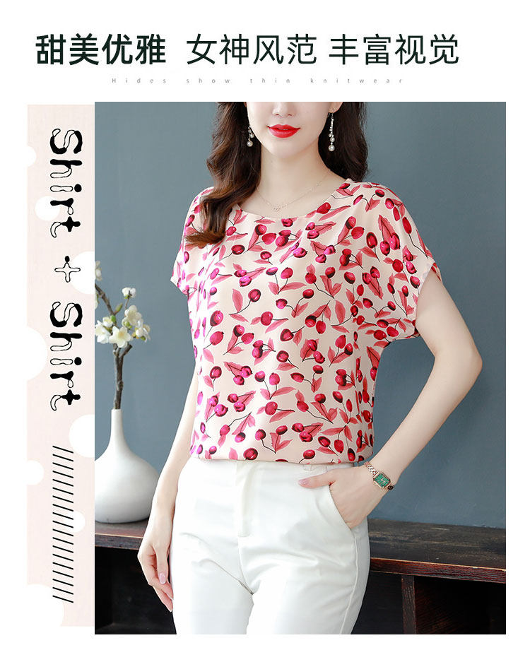 PF12100# 2024夏季洋气印花雪纺T恤大码短袖薄款上衣女时尚衬衣雪纺衫女女裝貨源服裝批發