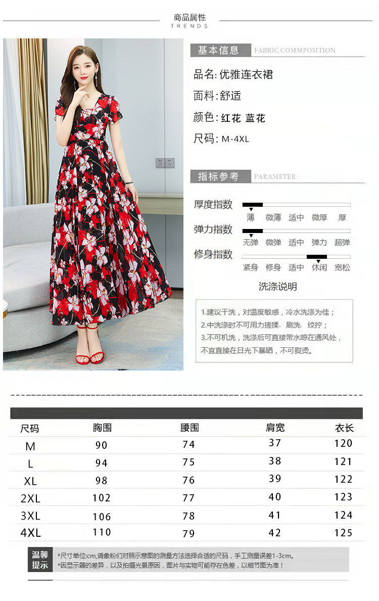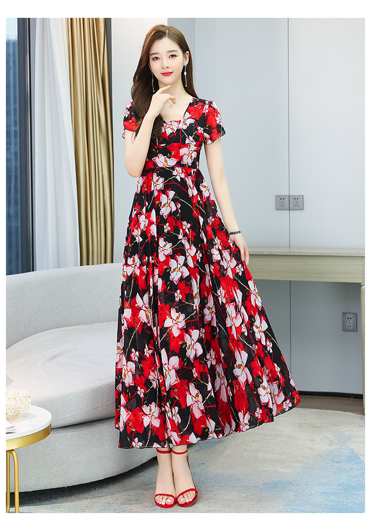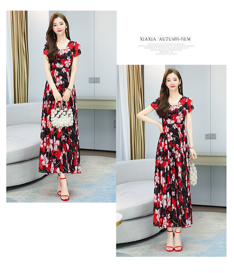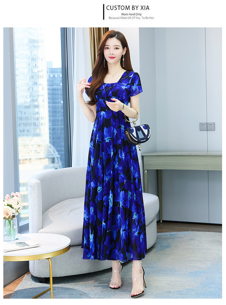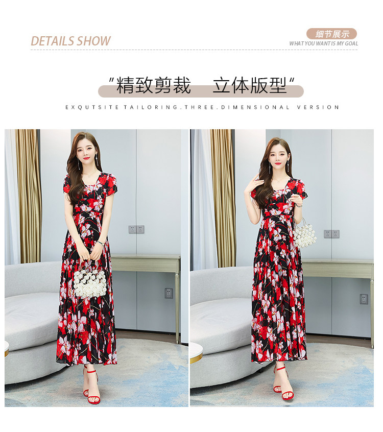 PF12864#雪纺连衣裙长裙夏法式收腰显瘦长款裙子过膝大摆裙复古薄