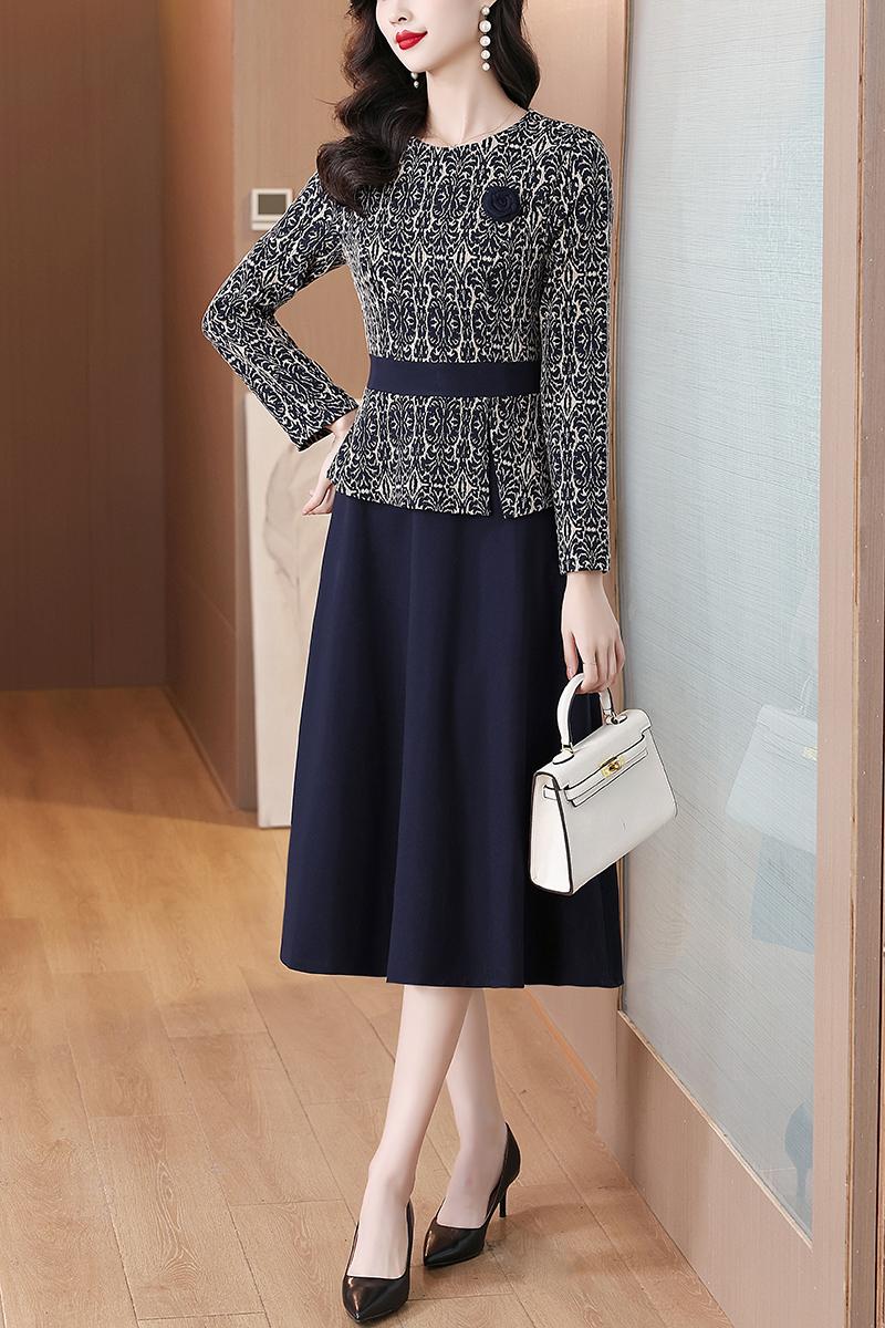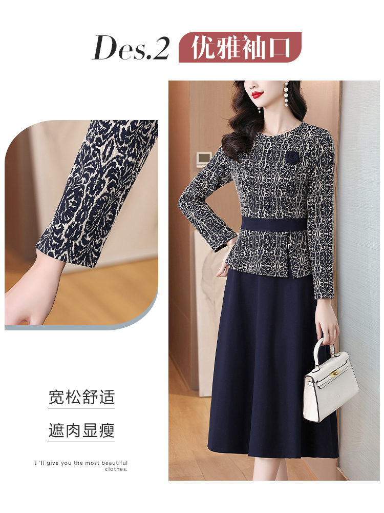 PF22644#阔太太小香风假两件连衣裙2024秋冬新款收腰洋气高贵打底裙女裝貨源服裝批發