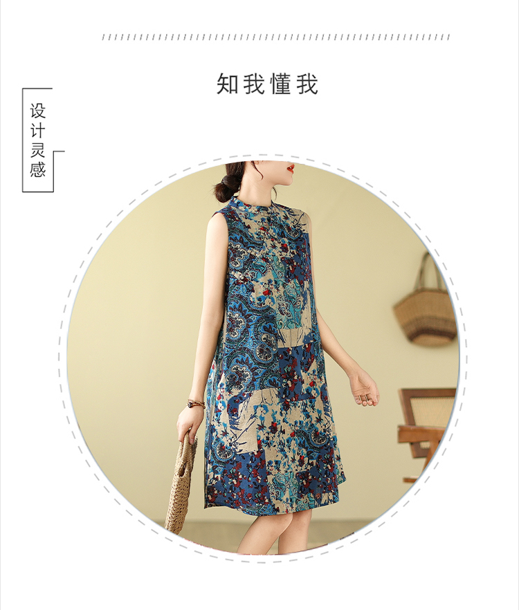 BY807#夏中式改良旗袍文艺复古宽松中长款连衣裙女