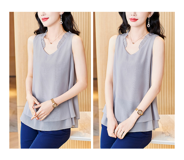 MY1066# 闪光雪纺荷叶边V领背心上衣女女裝貨源服裝批發